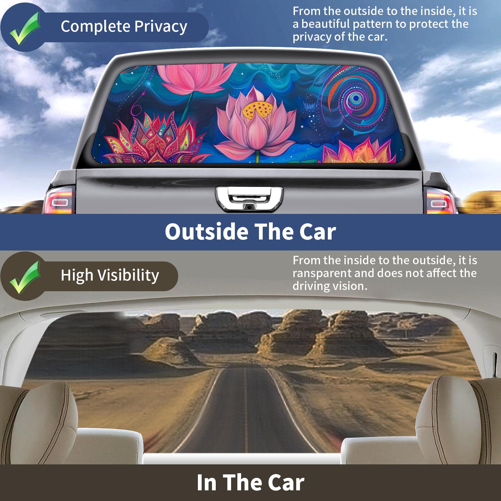 Truck Rear Window Graphics Decals Pickup Trucks Back Window Sticker Full Window Film Decal One Way Visual Waterproof Car Rear Tint Lotus