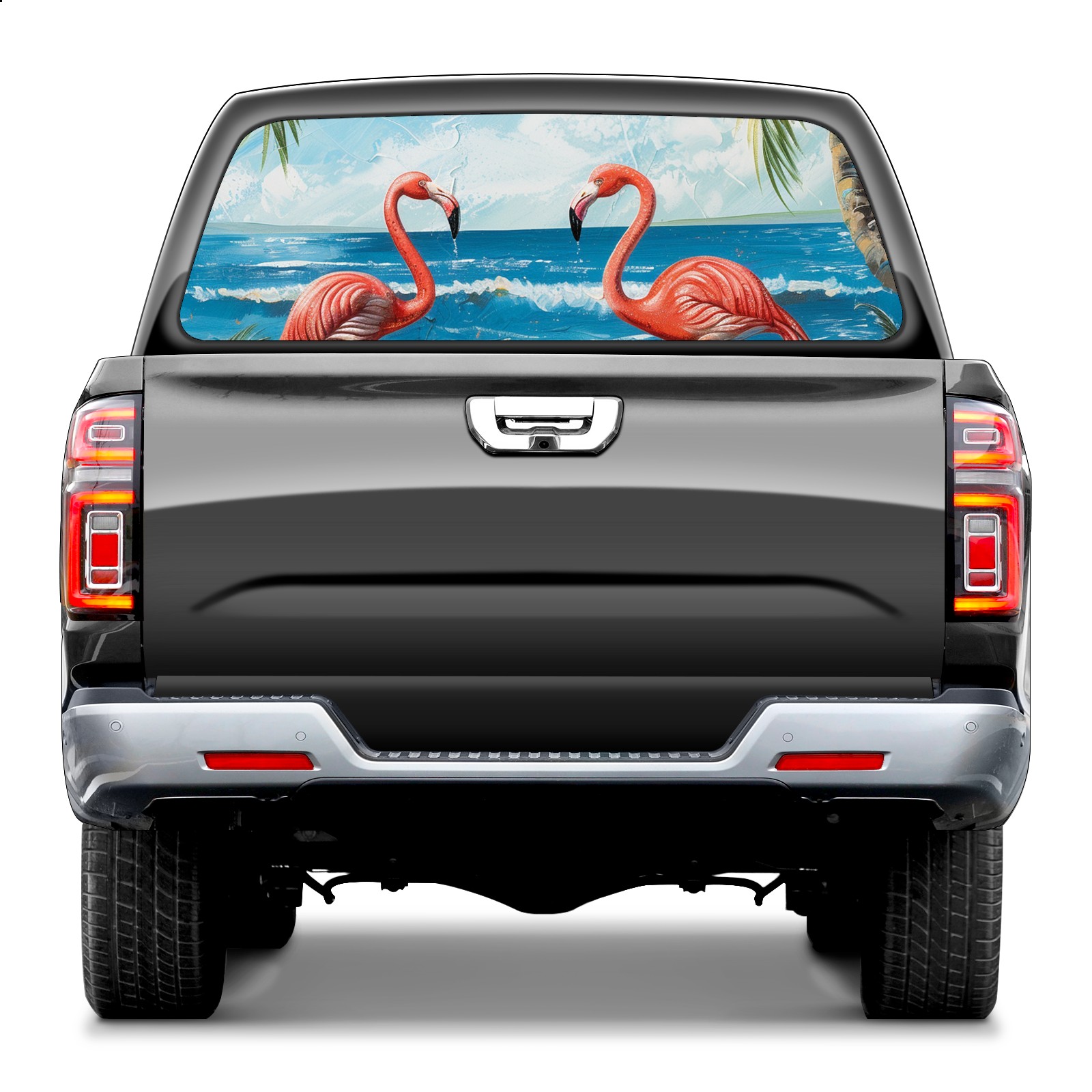 Truck Rear Window Graphics Decals Pickup Trucks Back Window Sticker Full Window Film Decal One Way Visual Waterproof Car Rear Tint Red Crane