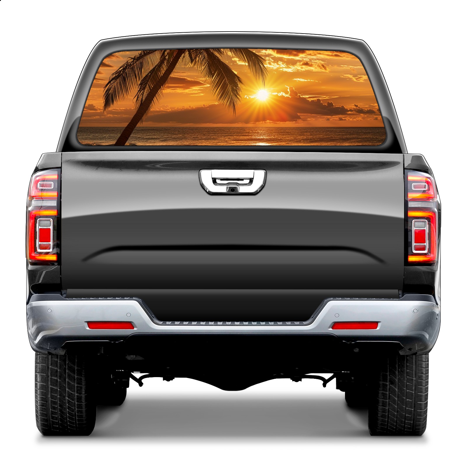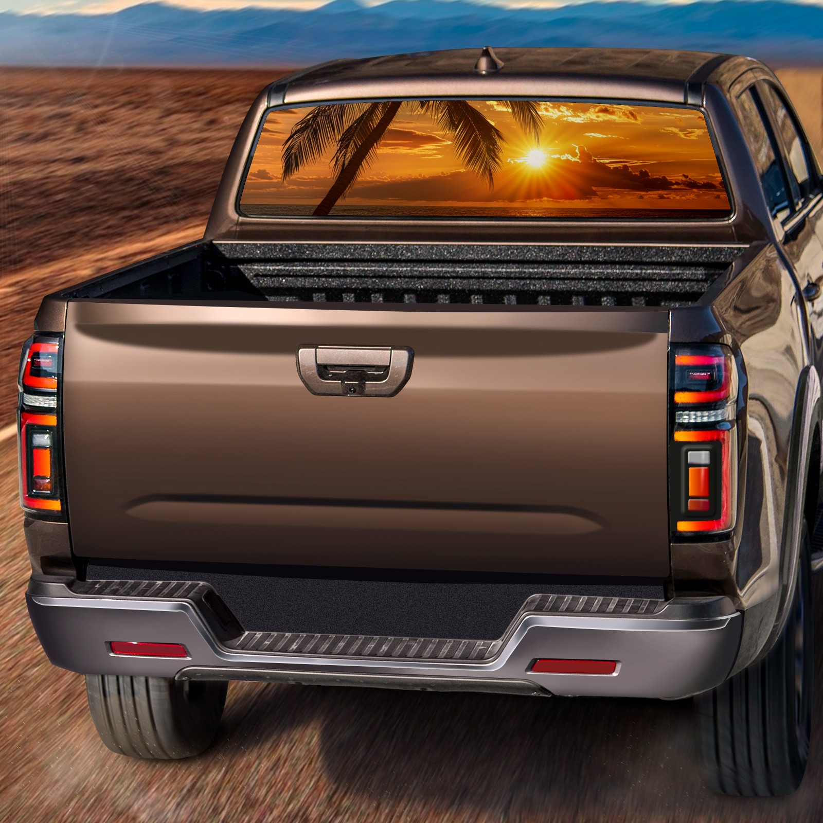 Truck Rear Window Graphics Decals Pickup Trucks Back Window Sticker Full Window Film Decal One Way Visual Waterproof Car Rear Tint Coconut Trees