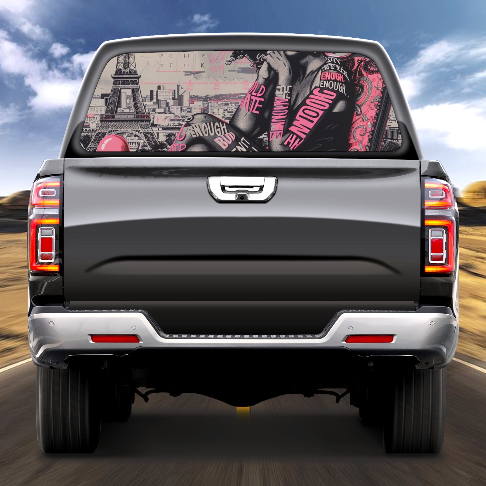 Truck Rear Window Graphics Decals Pickup Trucks Back Window Sticker Full Window Film Decal One Way Visual Waterproof Car Rear Tint Pink Lady