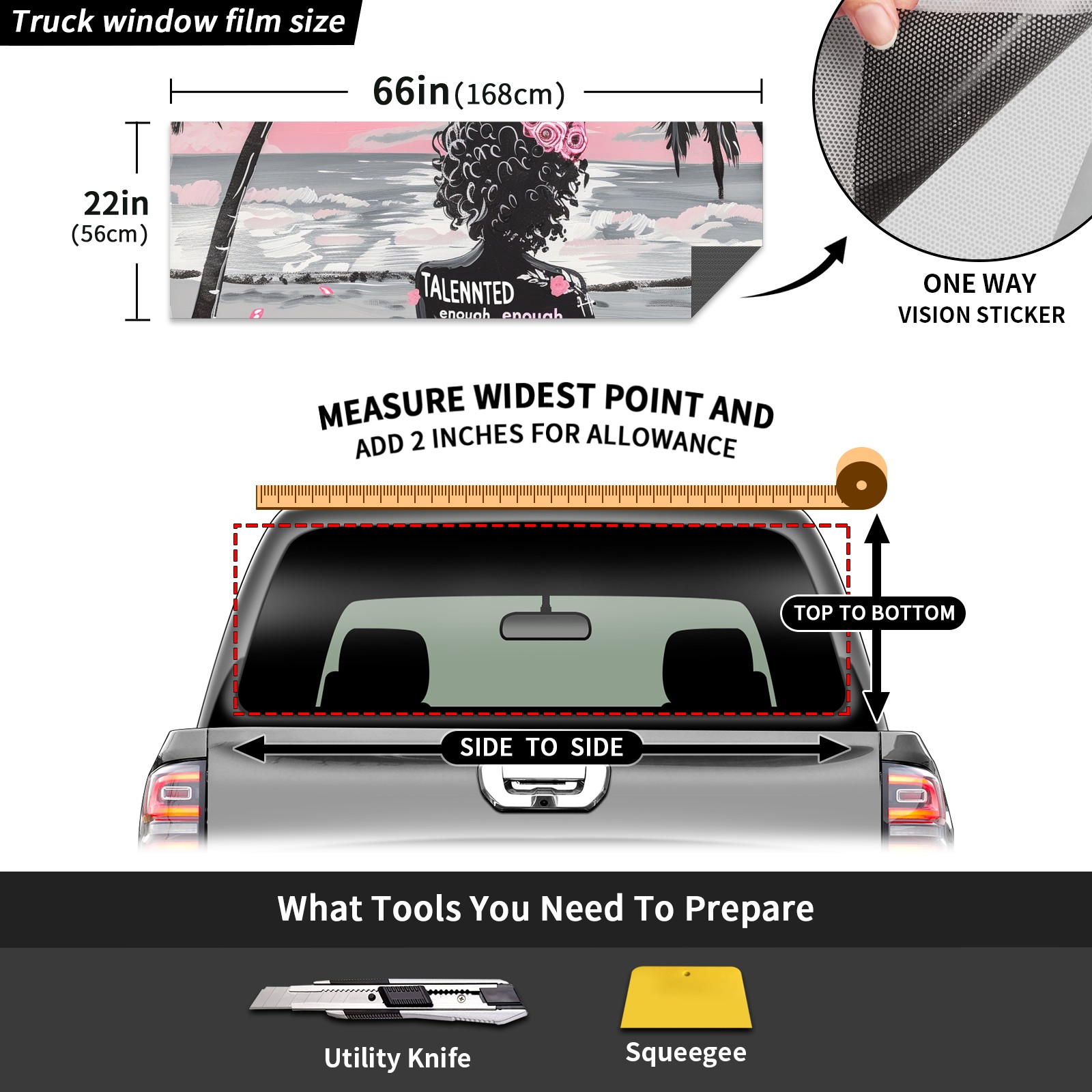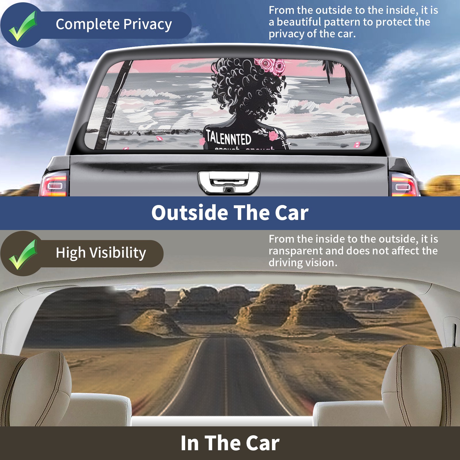 Truck Rear Window Graphics Decals Pickup Trucks Back Window Sticker Full Window Film Decal One Way Visual Waterproof Car Rear Tint Beach Vacation