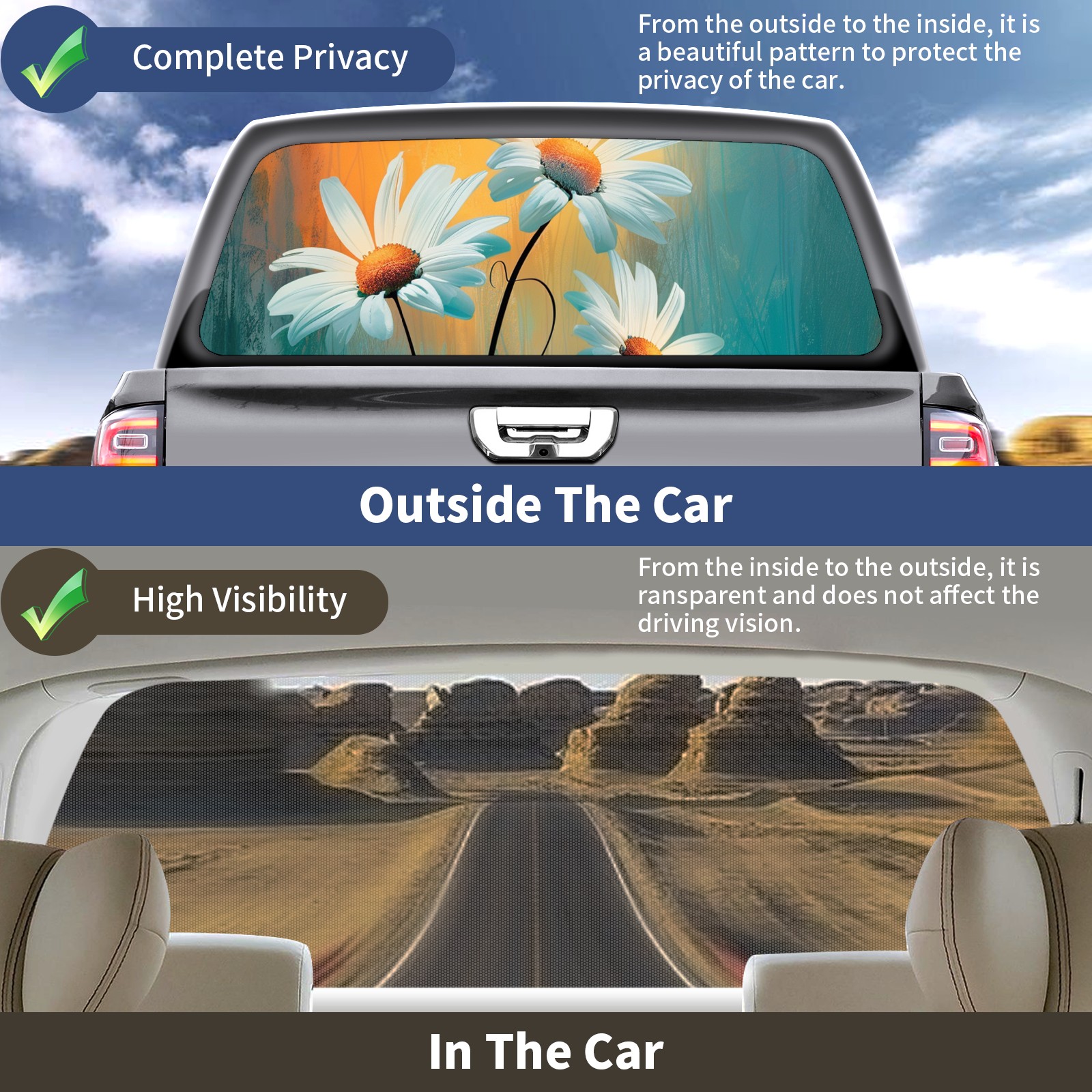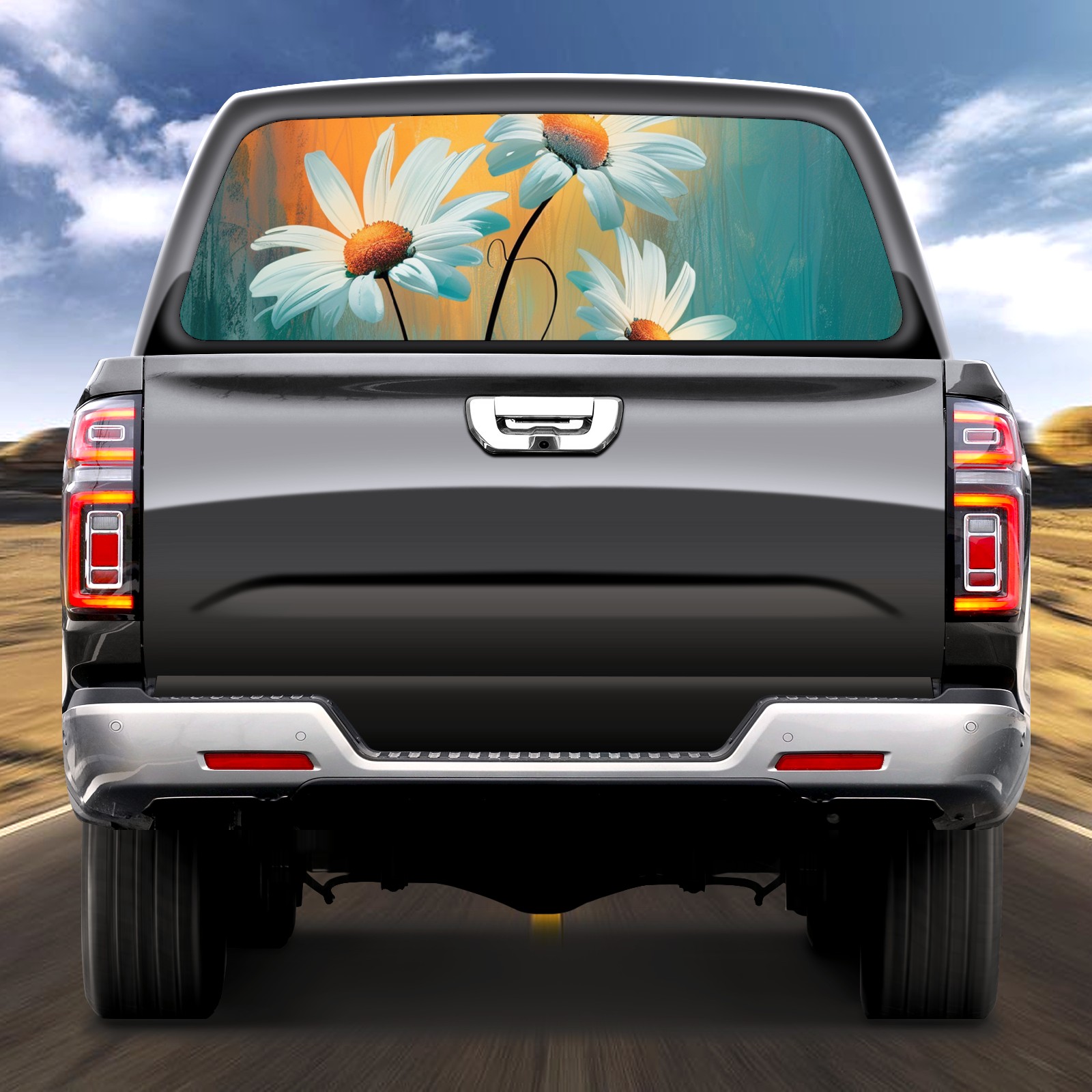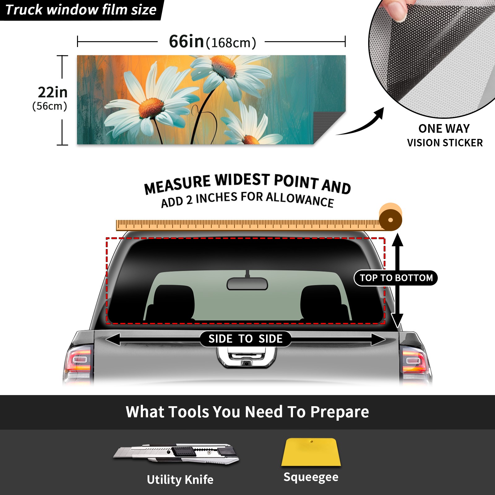 Truck Rear Window Graphics Decals Pickup Trucks Back Window Sticker Full Window Film Decal One Way Visual Waterproof Car Rear Tint Sunflower