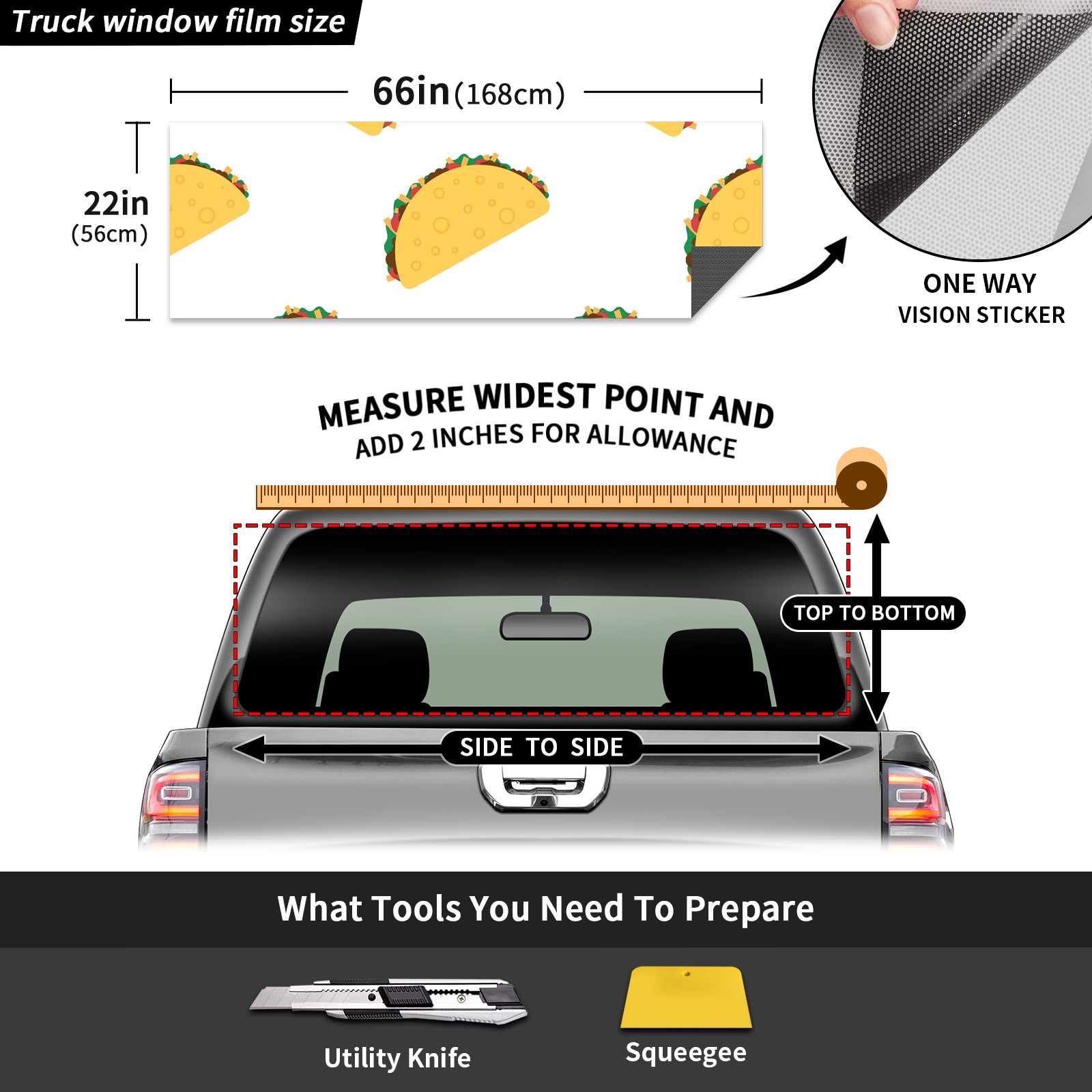 Truck Rear Window Graphics Decals Pickup Trucks Back Window Sticker Full Window Film Decal One Way Visual Waterproof Car Rear Tint Tacos