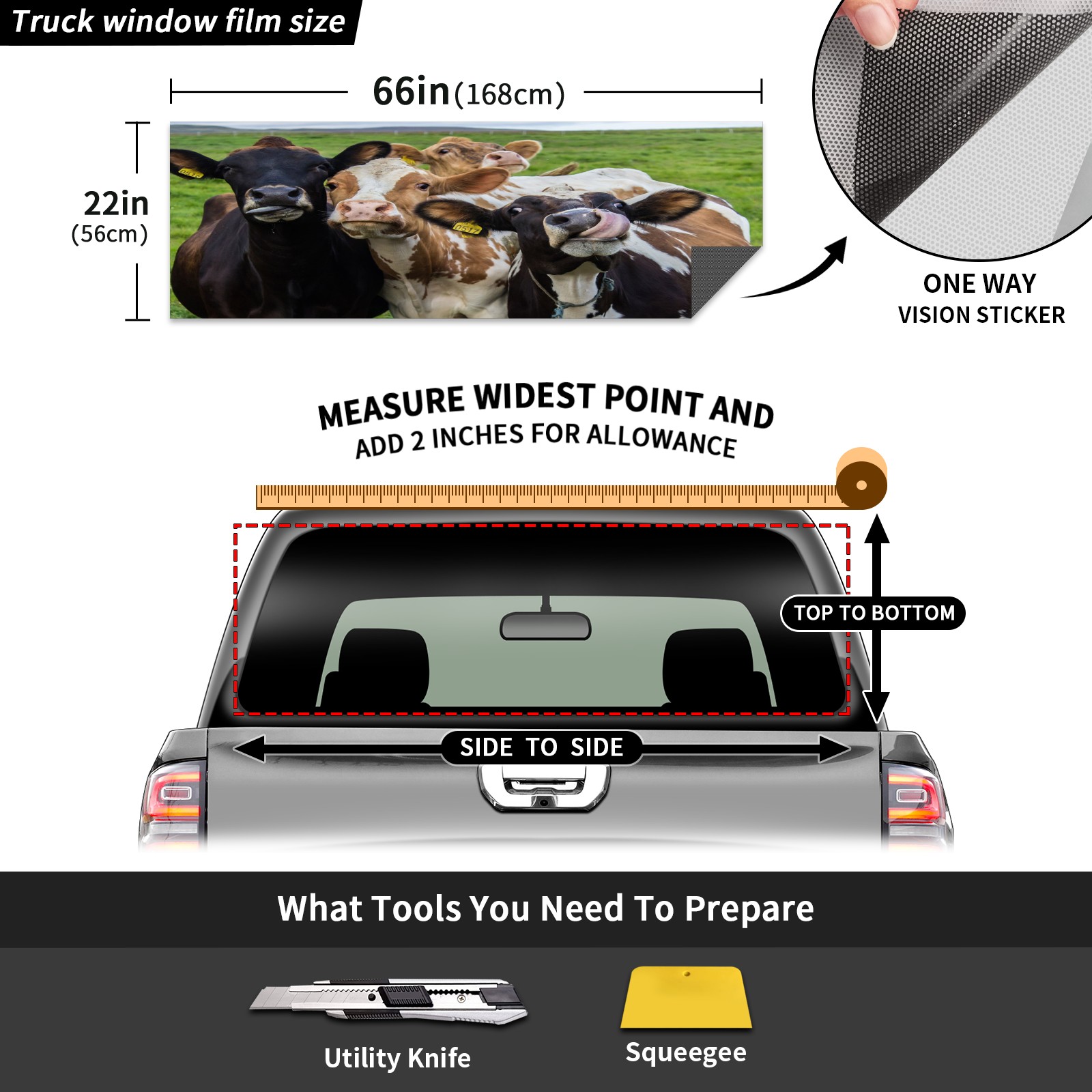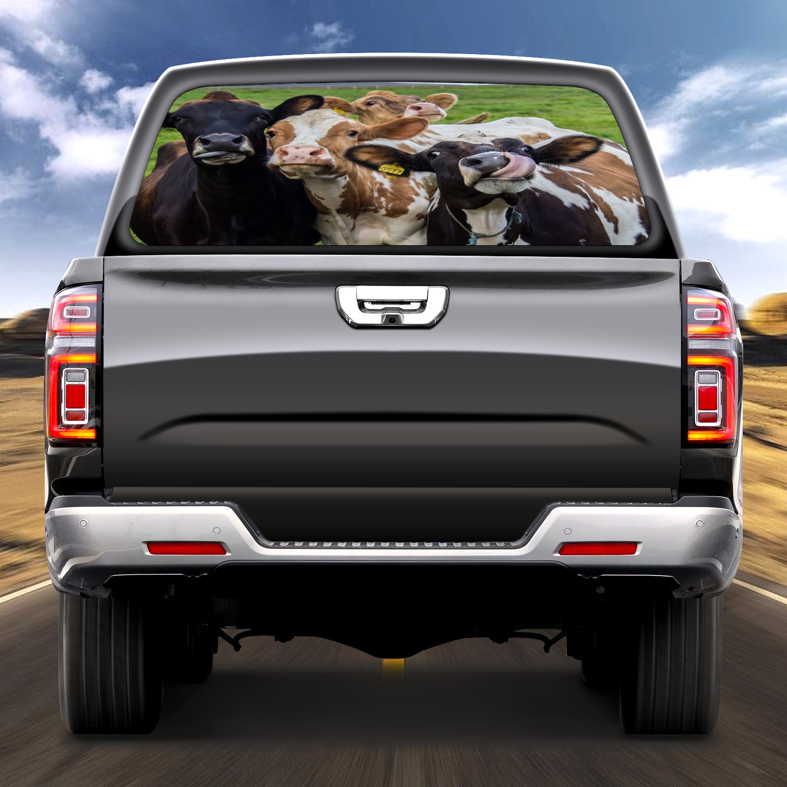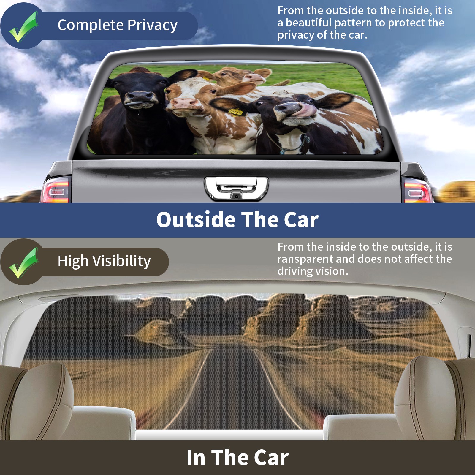 Truck Rear Window Graphics Decals Pickup Trucks Back Window Sticker Full Window Film Decal One Way Visual Waterproof Car Rear Tint Animal Cows On Green Grassland