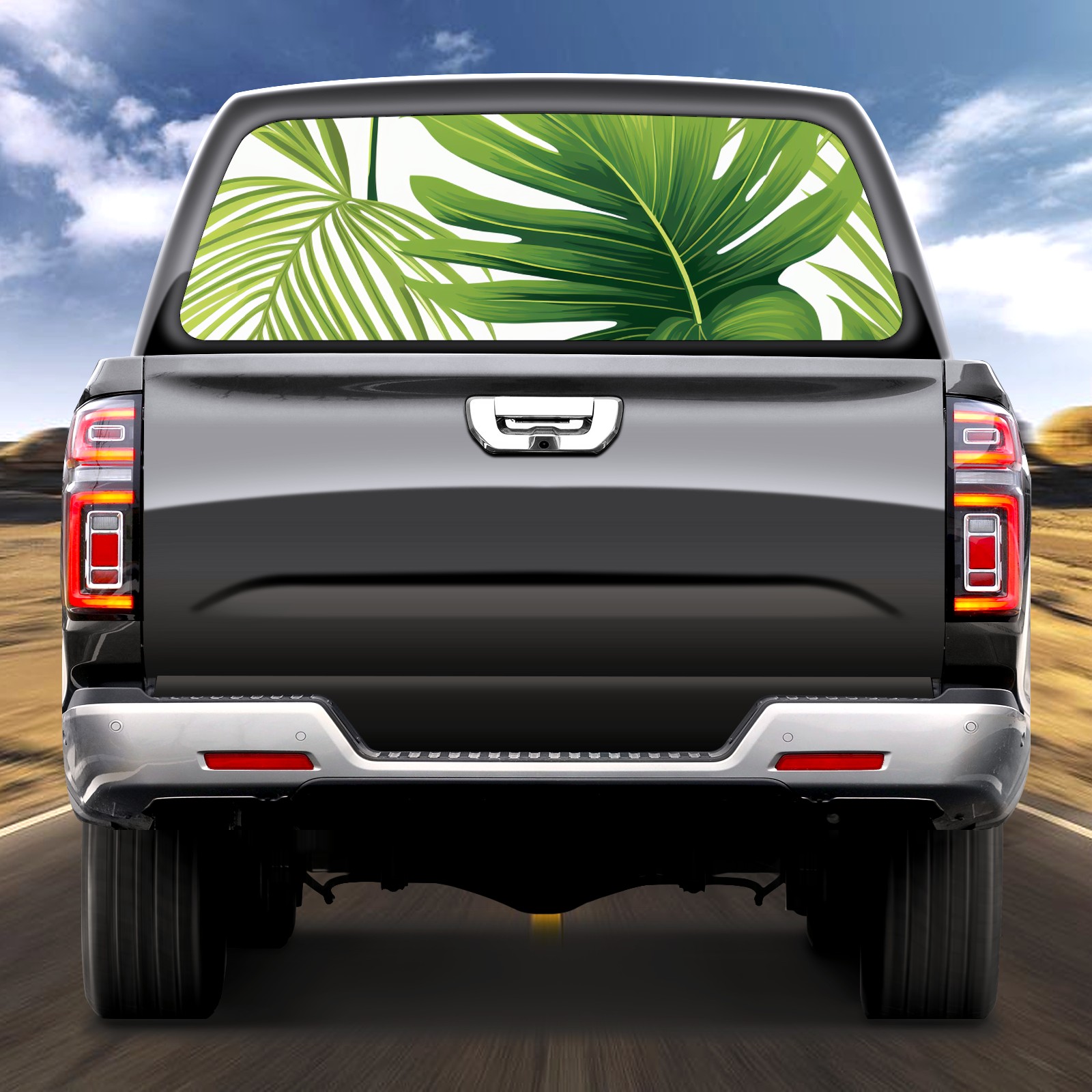 Truck Rear Window Graphics Decals Pickup Trucks Back Window Sticker Full Window Film Decal One Way Visual Waterproof Car Rear Tint Banana Leaves