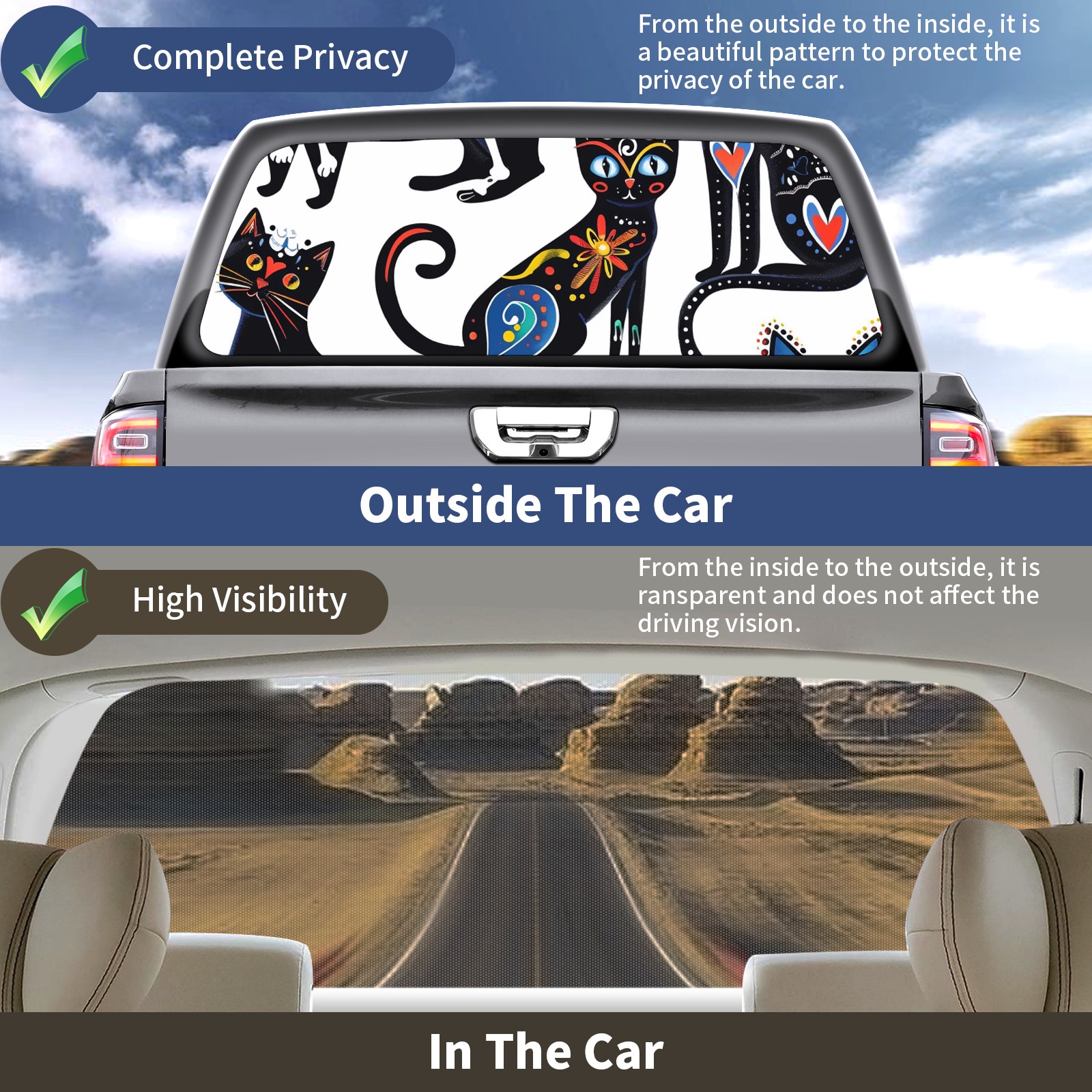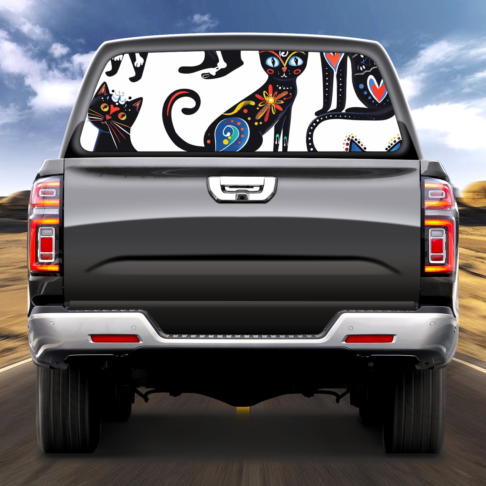 Truck Rear Window Graphics Decals Pickup Trucks Back Window Sticker Full Window Film Decal One Way Visual Waterproof Car Rear Tint Colored Cat