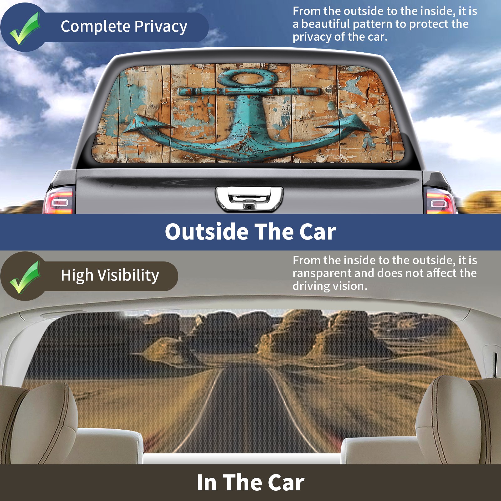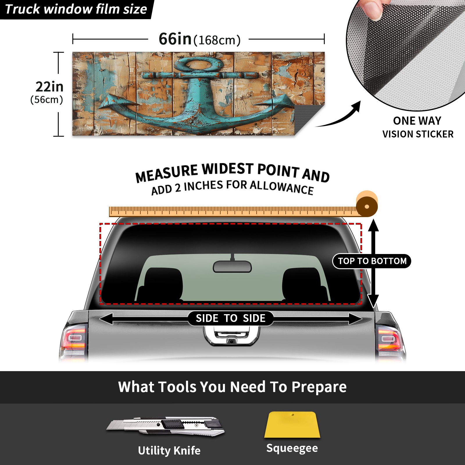 Truck Rear Window Graphics Decals Pickup Trucks Back Window Sticker Full Window Film Decal One Way Visual Waterproof Car Rear Tint Iron Hook