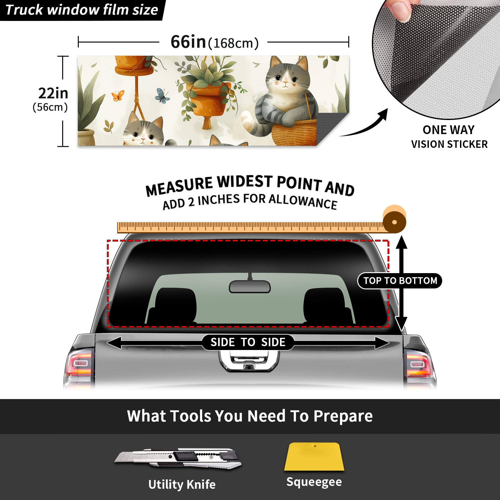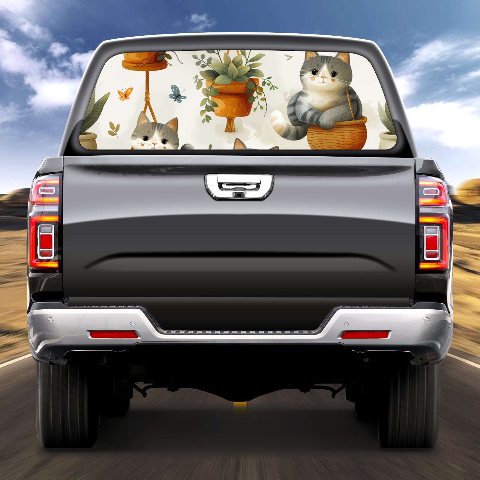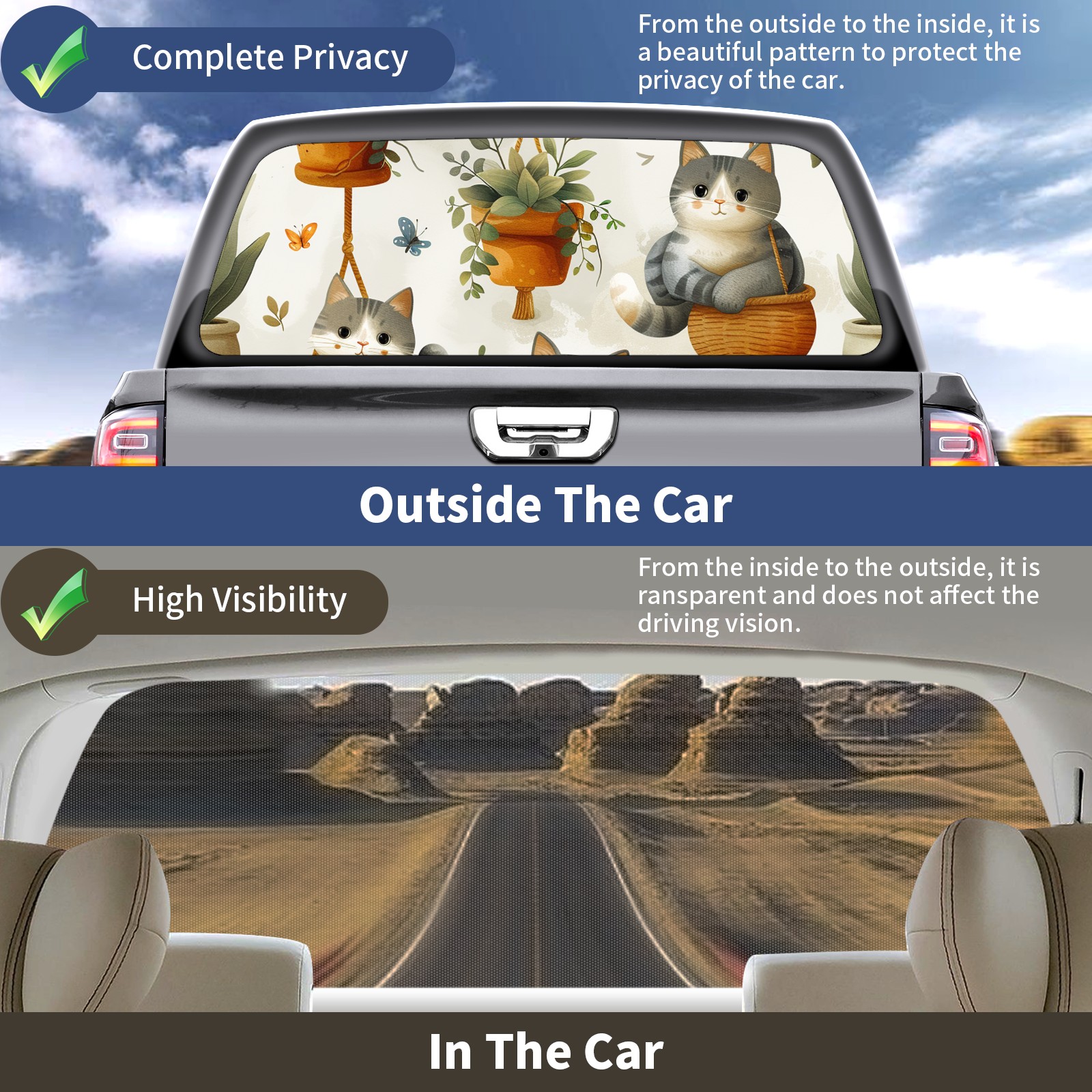 Truck Rear Window Graphics Decals Pickup Trucks Back Window Sticker Full Window Film Decal One Way Visual Waterproof Car Rear Tint Short Haired Cat