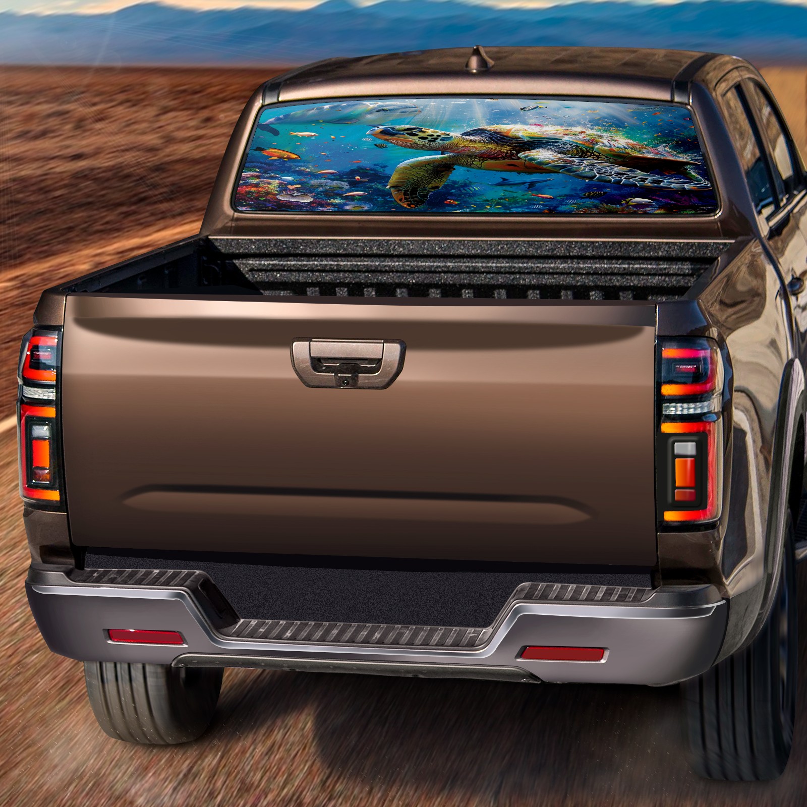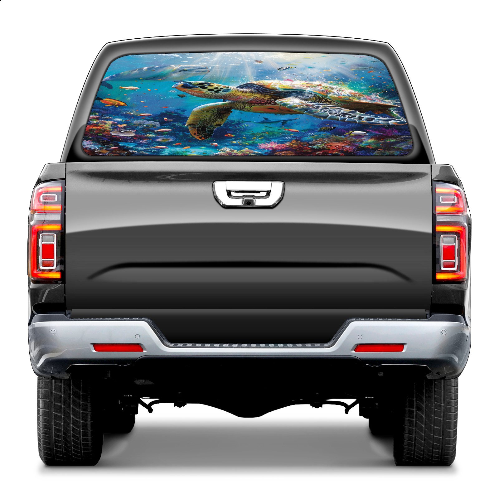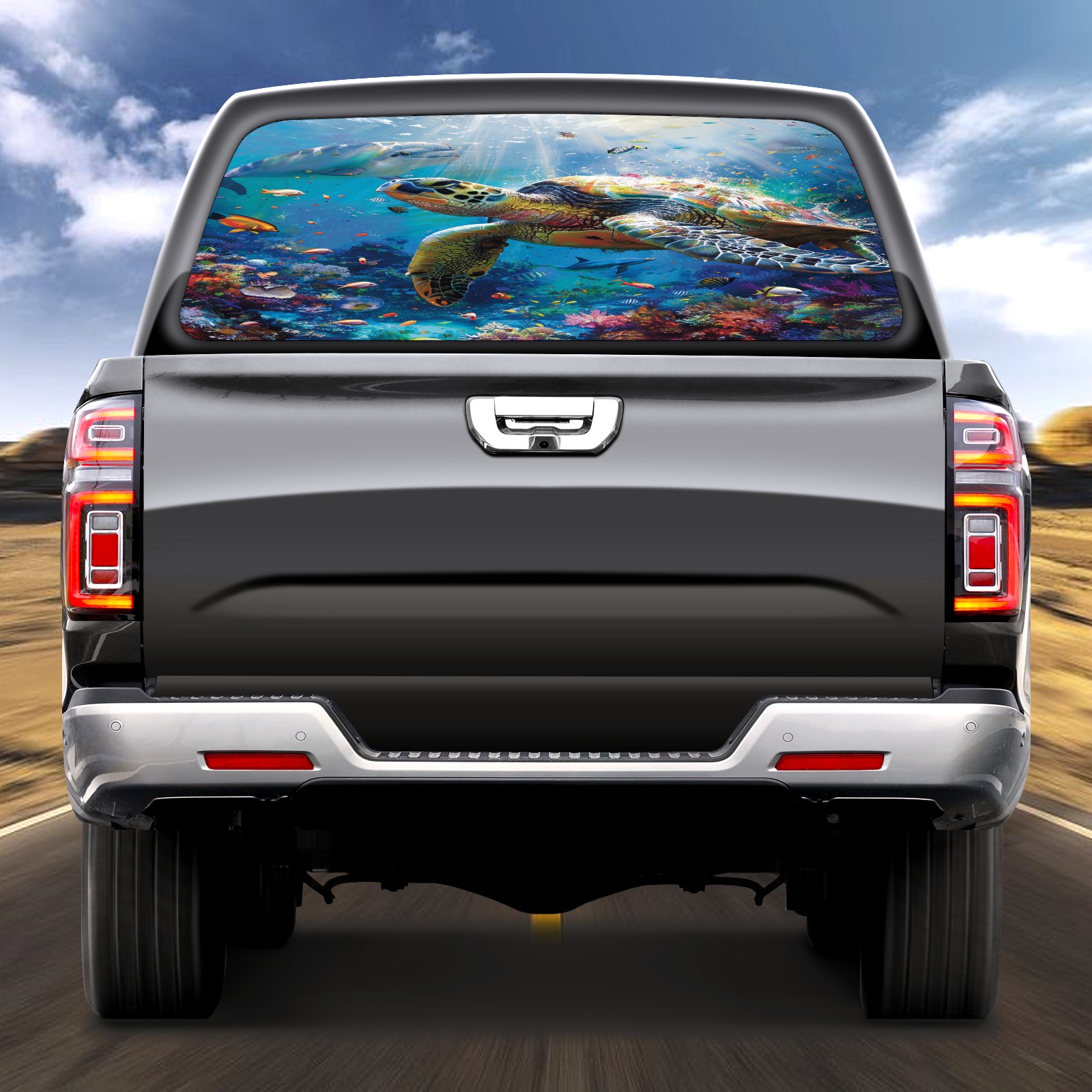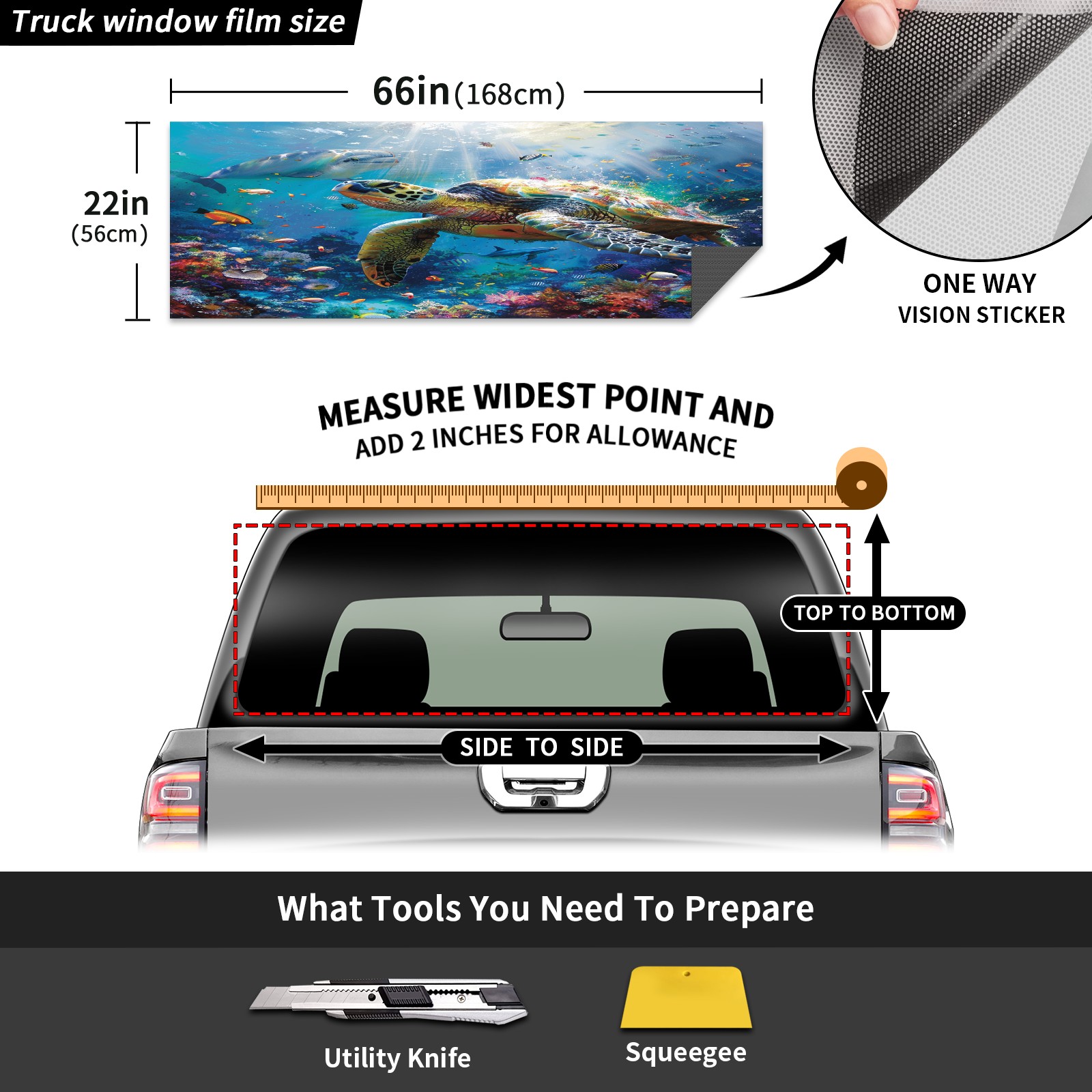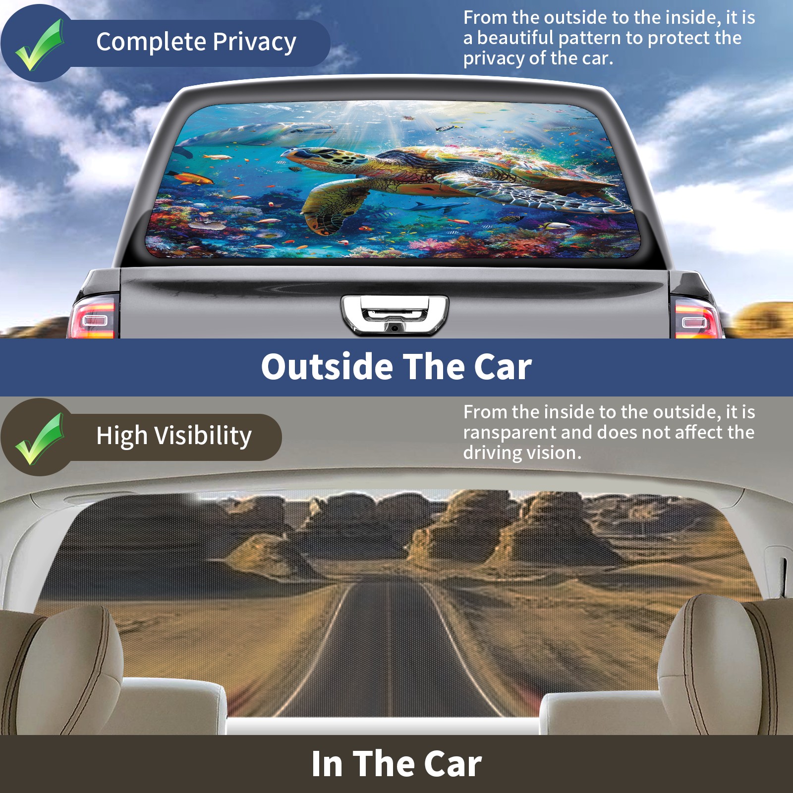 Truck Rear Window Graphics Decals Pickup Trucks Back Window Sticker Full Window Film Decal One Way Visual Waterproof Car Rear Tint Turtle
