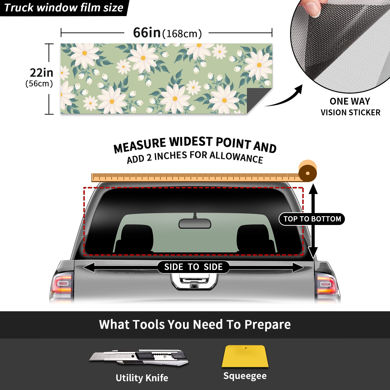 Truck Rear Window Graphics Decals Pickup Trucks Back Window Sticker Full Window Film Decal One Way Visual Waterproof Car Rear Tint Flowers-7935944_1920