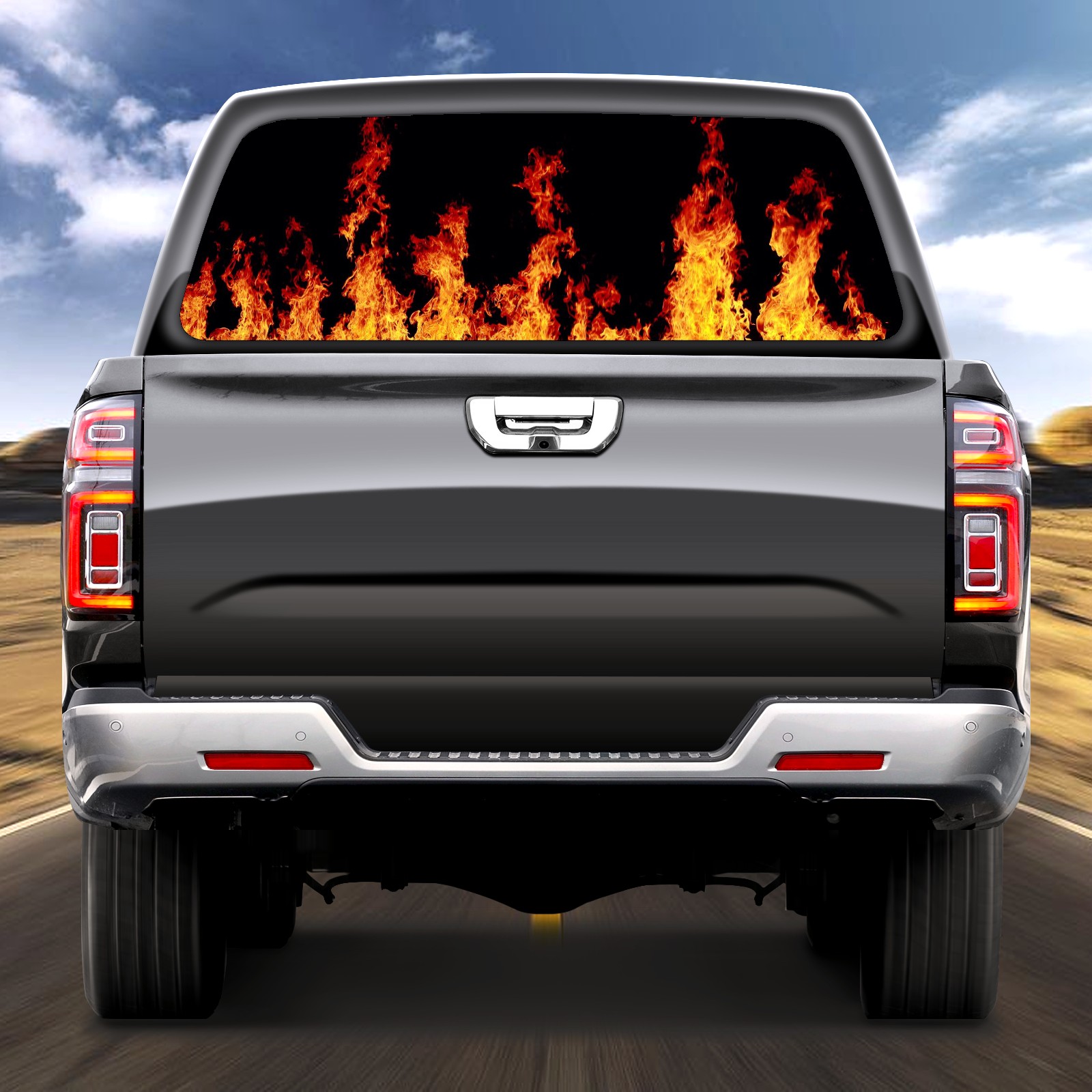 Truck Rear Window Graphics Decals Pickup Trucks Back Window Sticker Full Window Film Decal One Way Visual Waterproof Car Rear Tint Fire