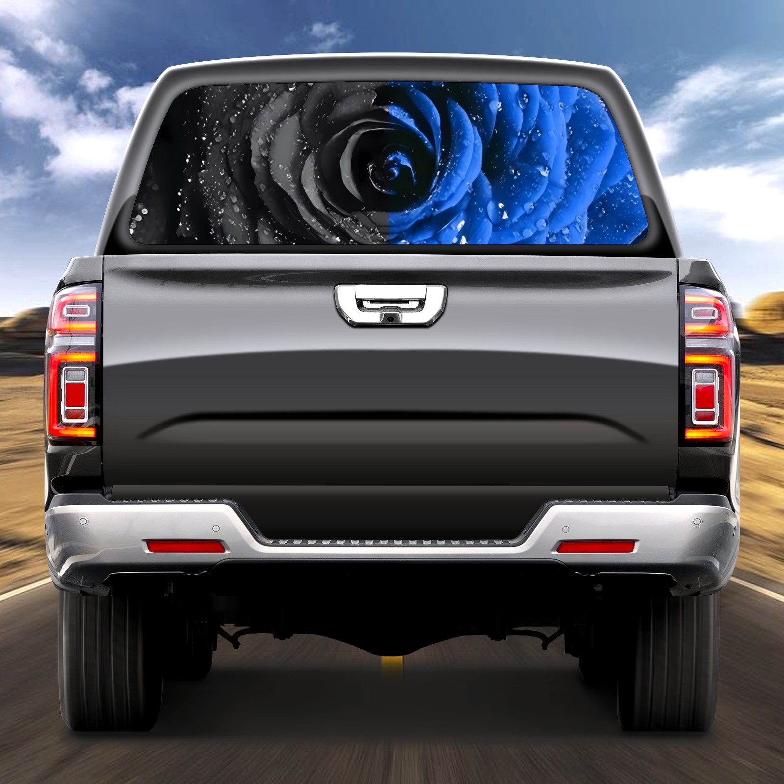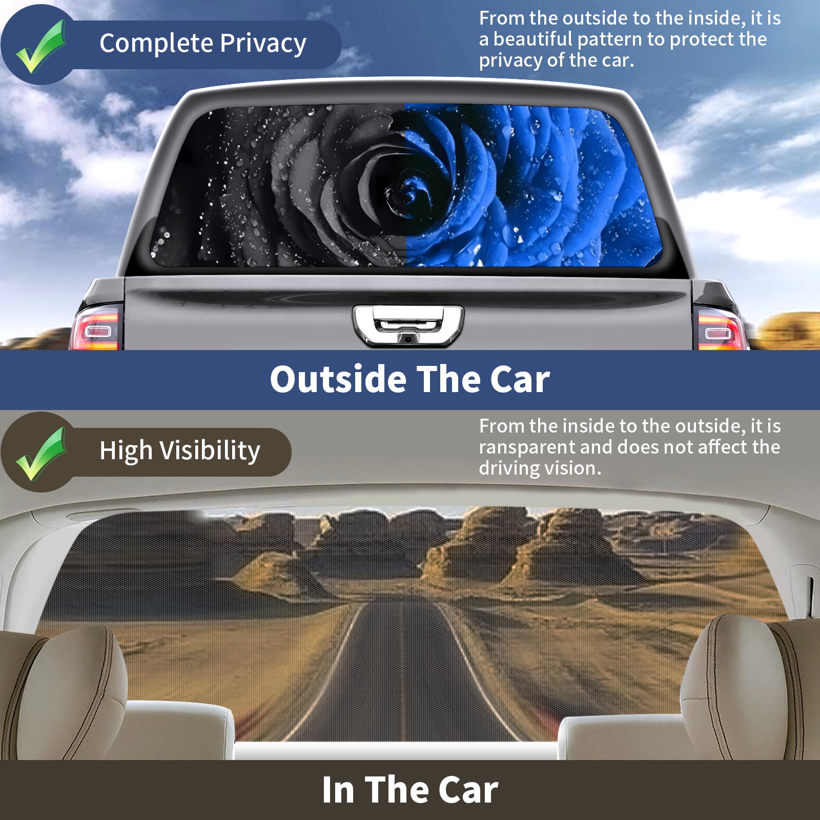 Truck Rear Window Graphics Decals Pickup Trucks Back Window Sticker Full Window Film Decal One Way Visual Waterproof Car Rear Tint Black Blue Rose (1)(1)(1)