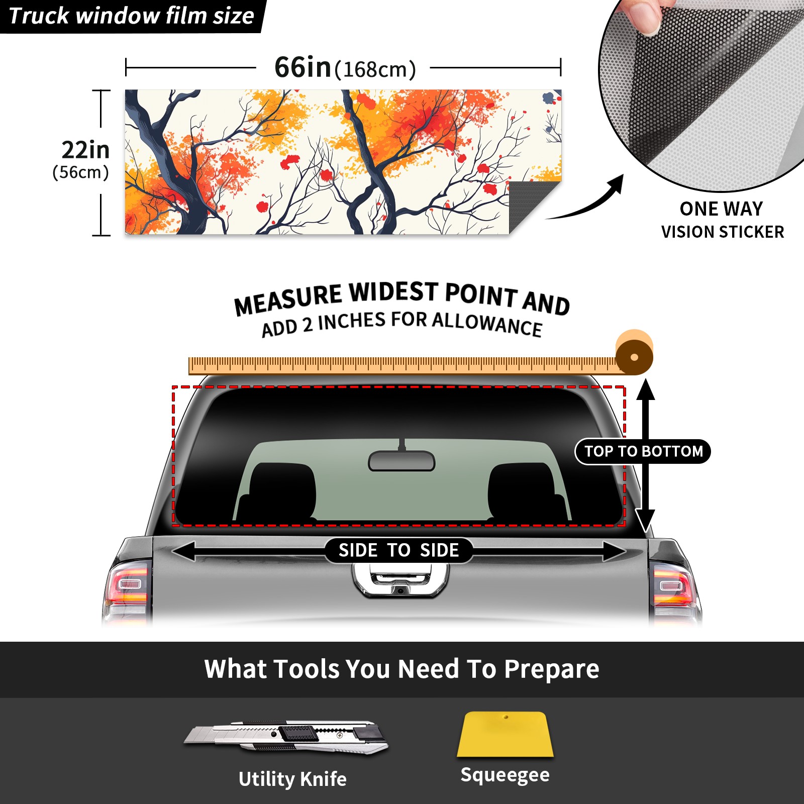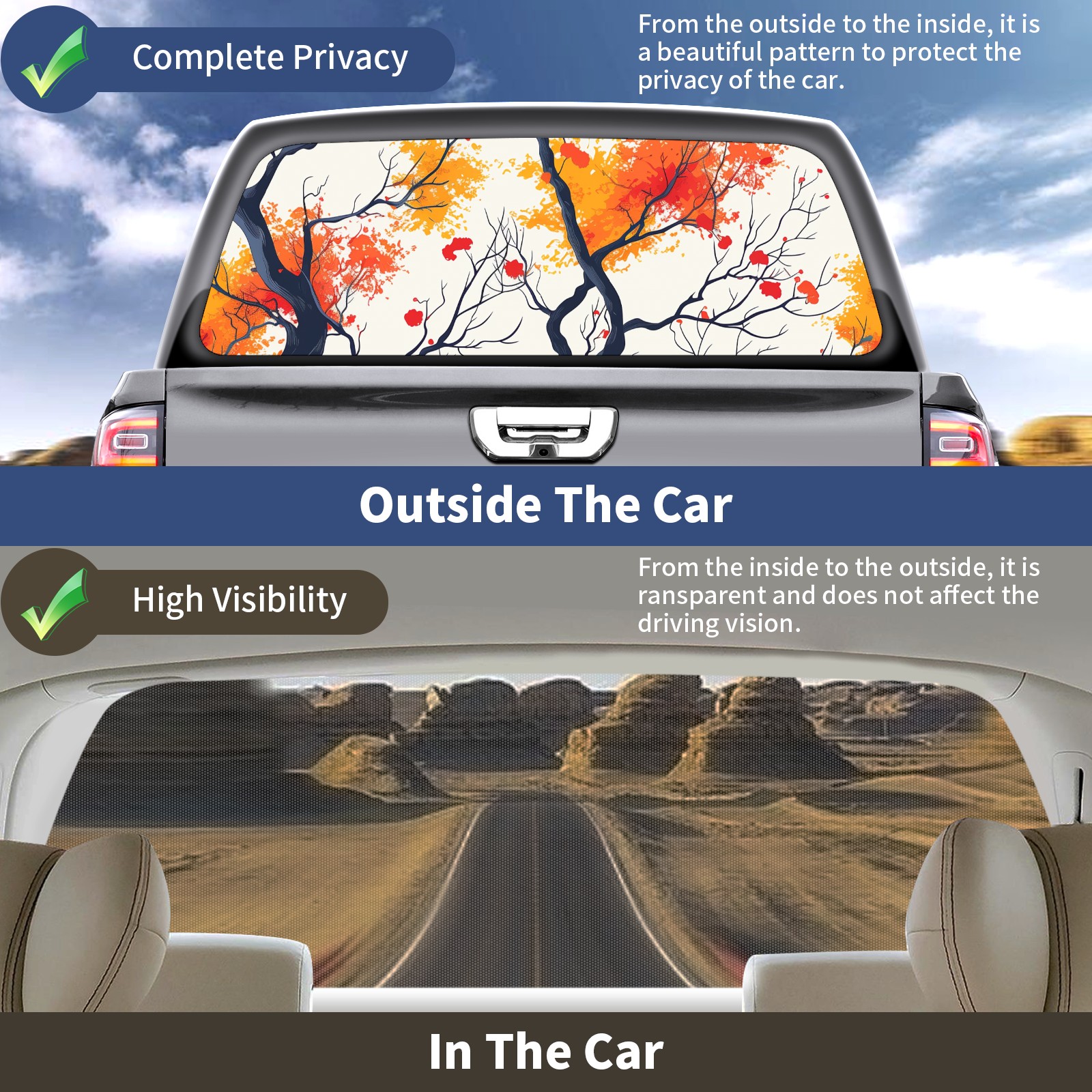 Truck Rear Window Graphics Decals Pickup Trucks Back Window Sticker Full Window Film Decal One Way Visual Waterproof Car Rear Tint Tree