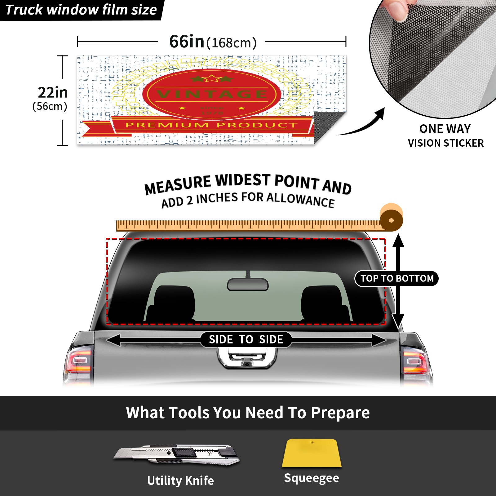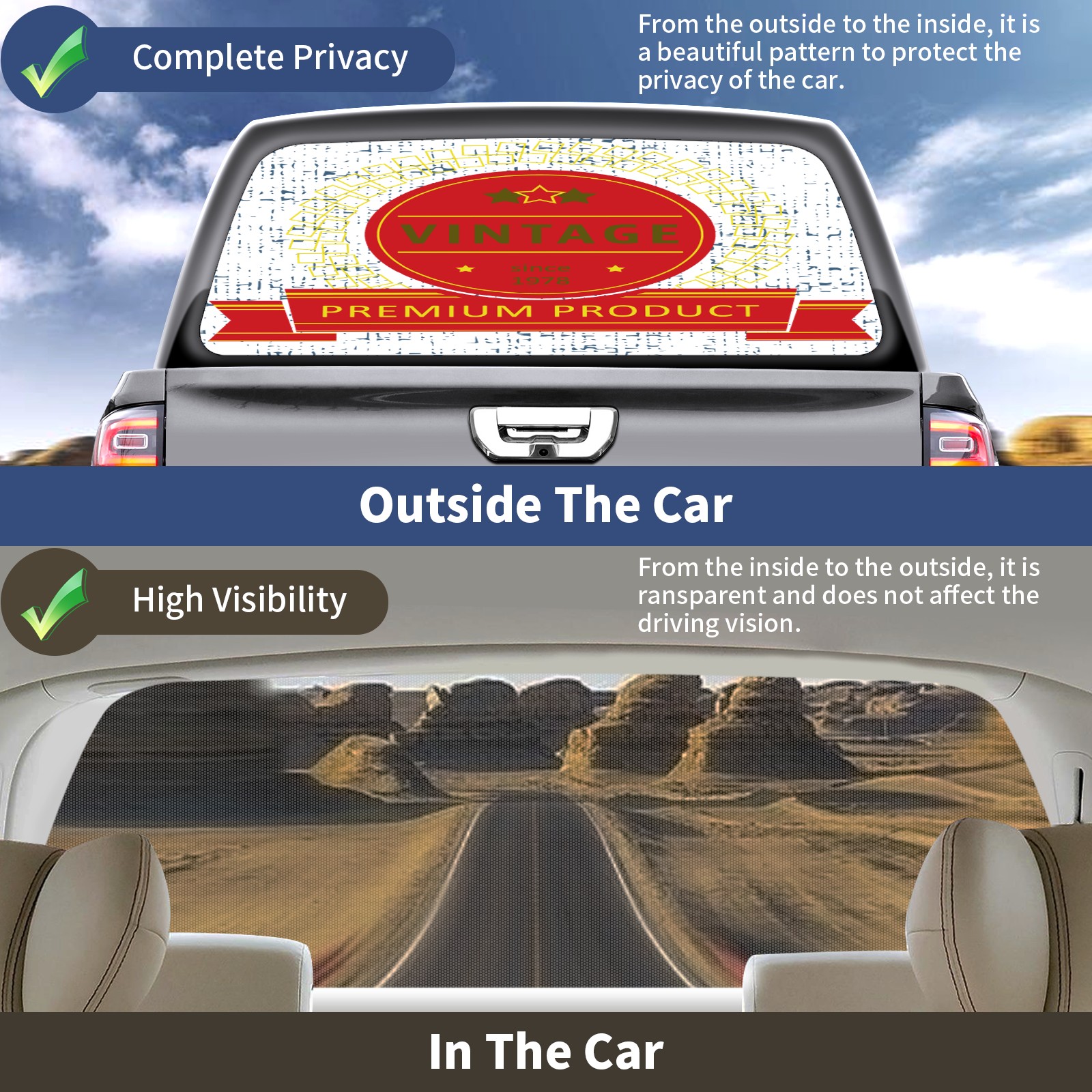 Truck Rear Window Graphics Decals Pickup Trucks Back Window Sticker Full Window Film Decal One Way Visual Waterproof Car Rear Tint Vintage 1978