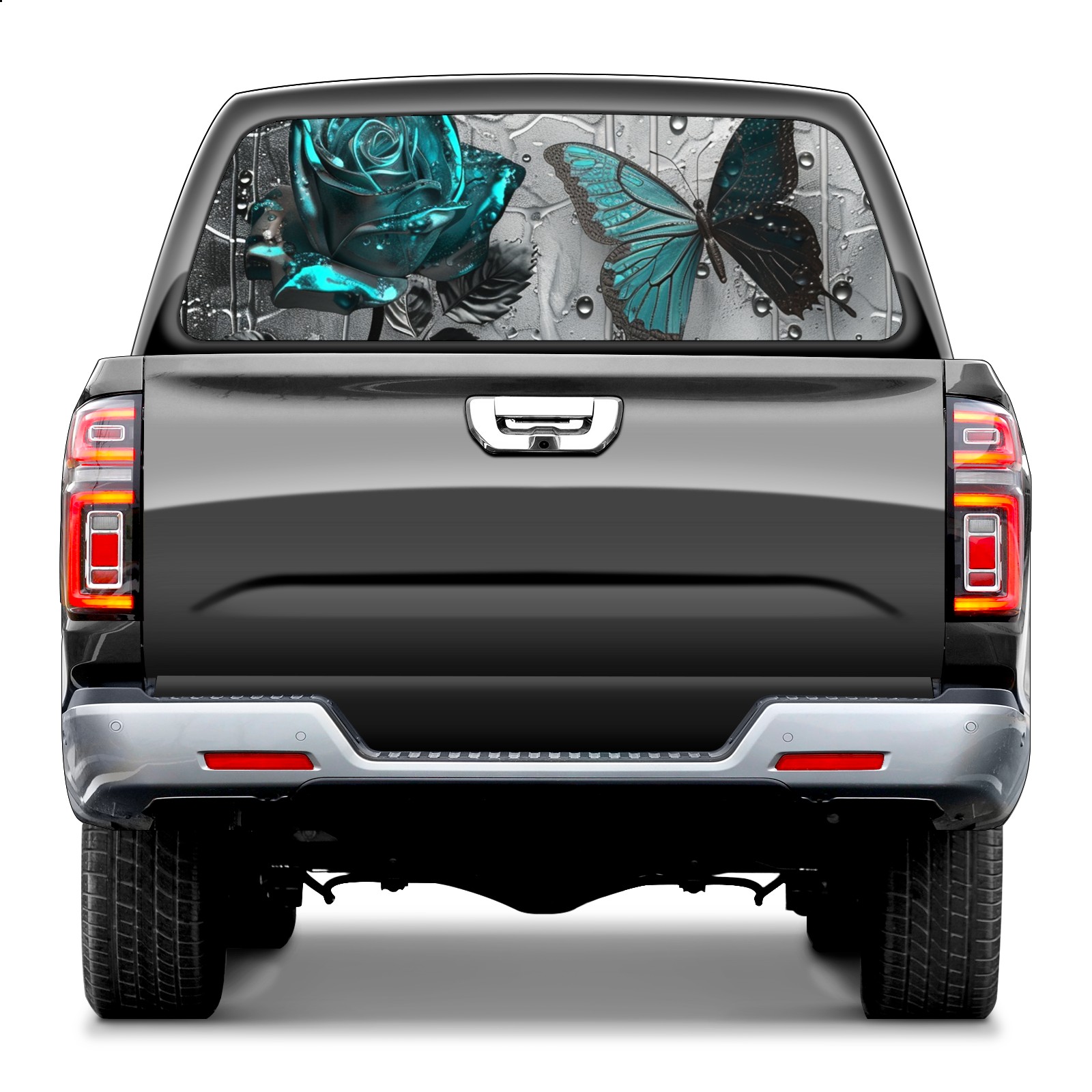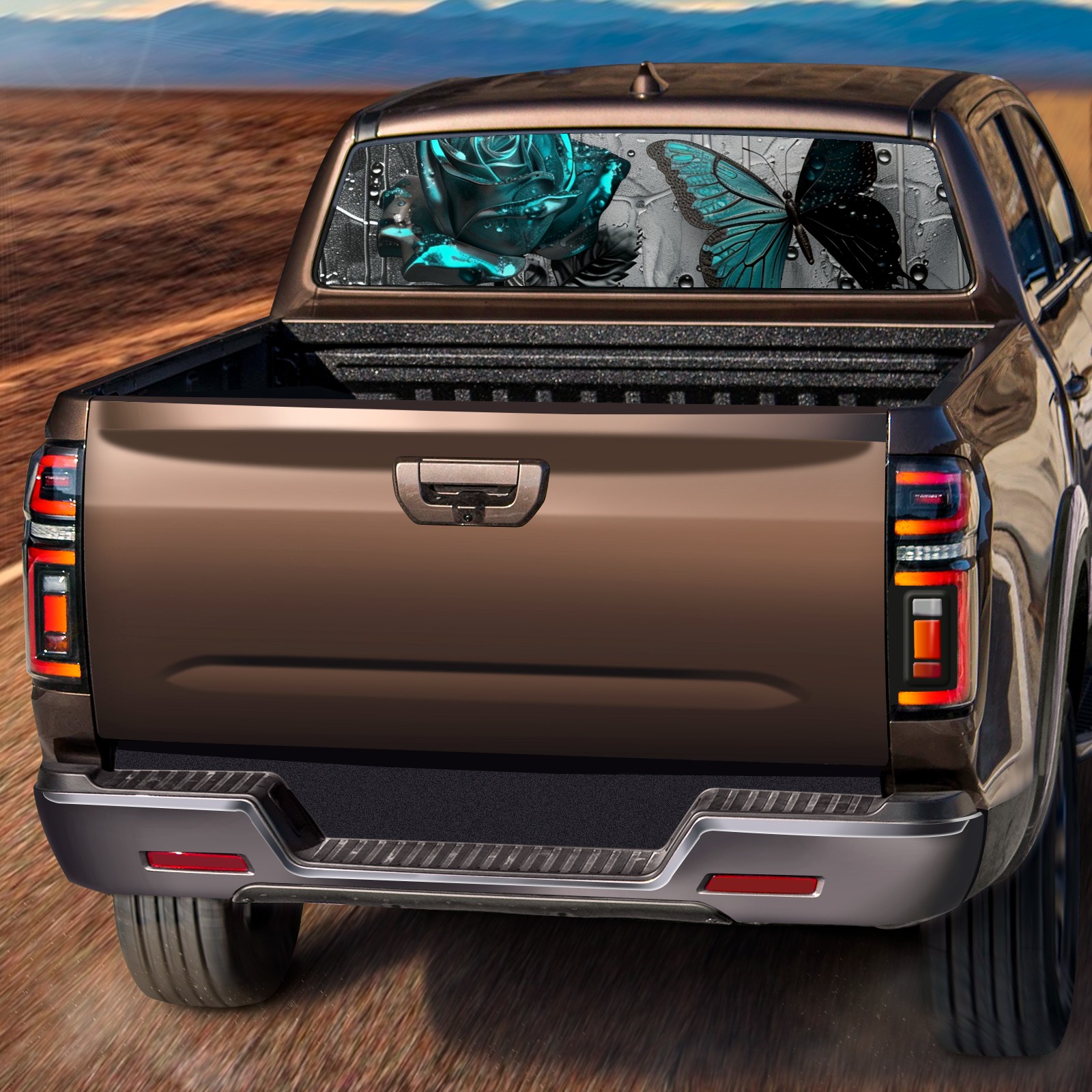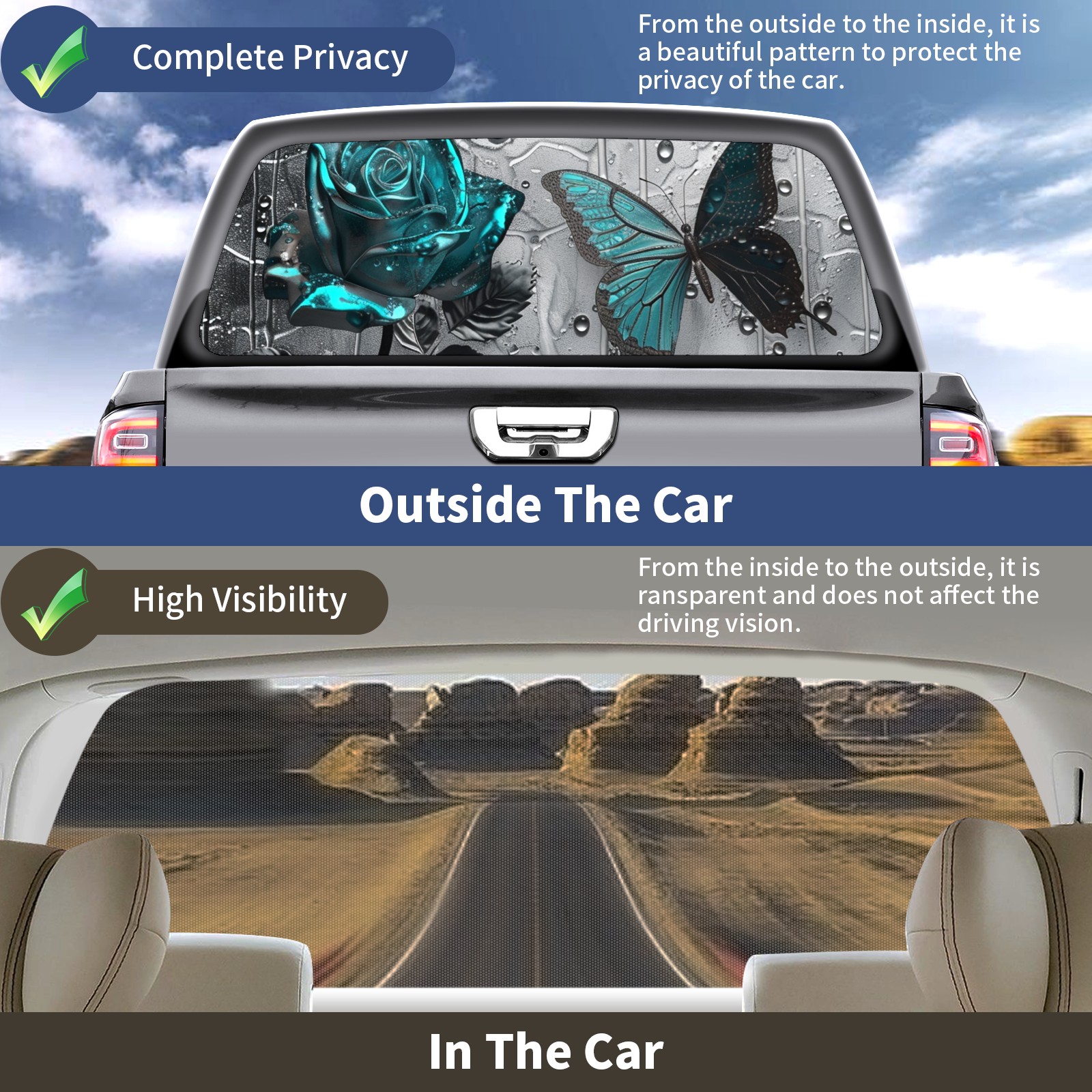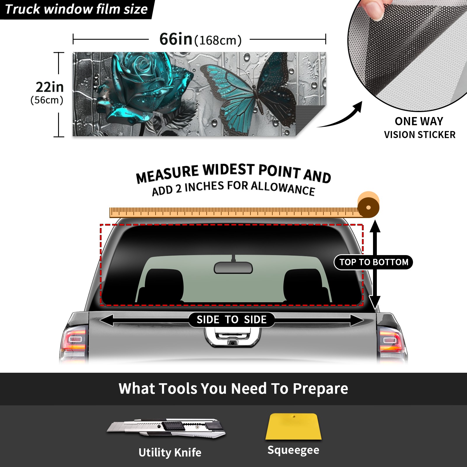 Truck Rear Window Graphics Decals Pickup Trucks Back Window Sticker Full Window Film Decal One Way Visual Waterproof Car Rear Tint Blue Rose