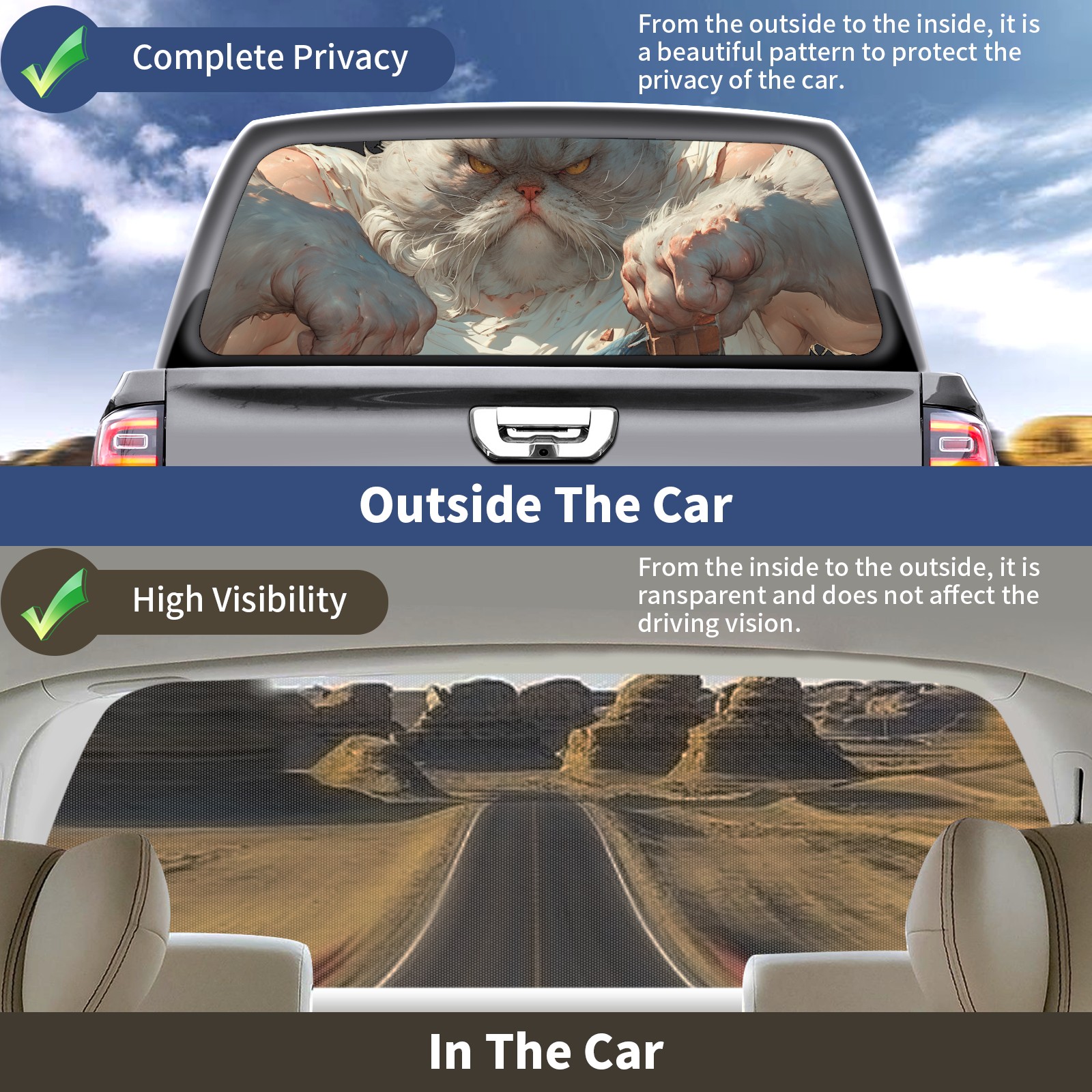 Truck Rear Window Graphics Decals Pickup Trucks Back Window Sticker Full Window Film Decal One Way Visual Waterproof Car Rear Tint Funny Cat