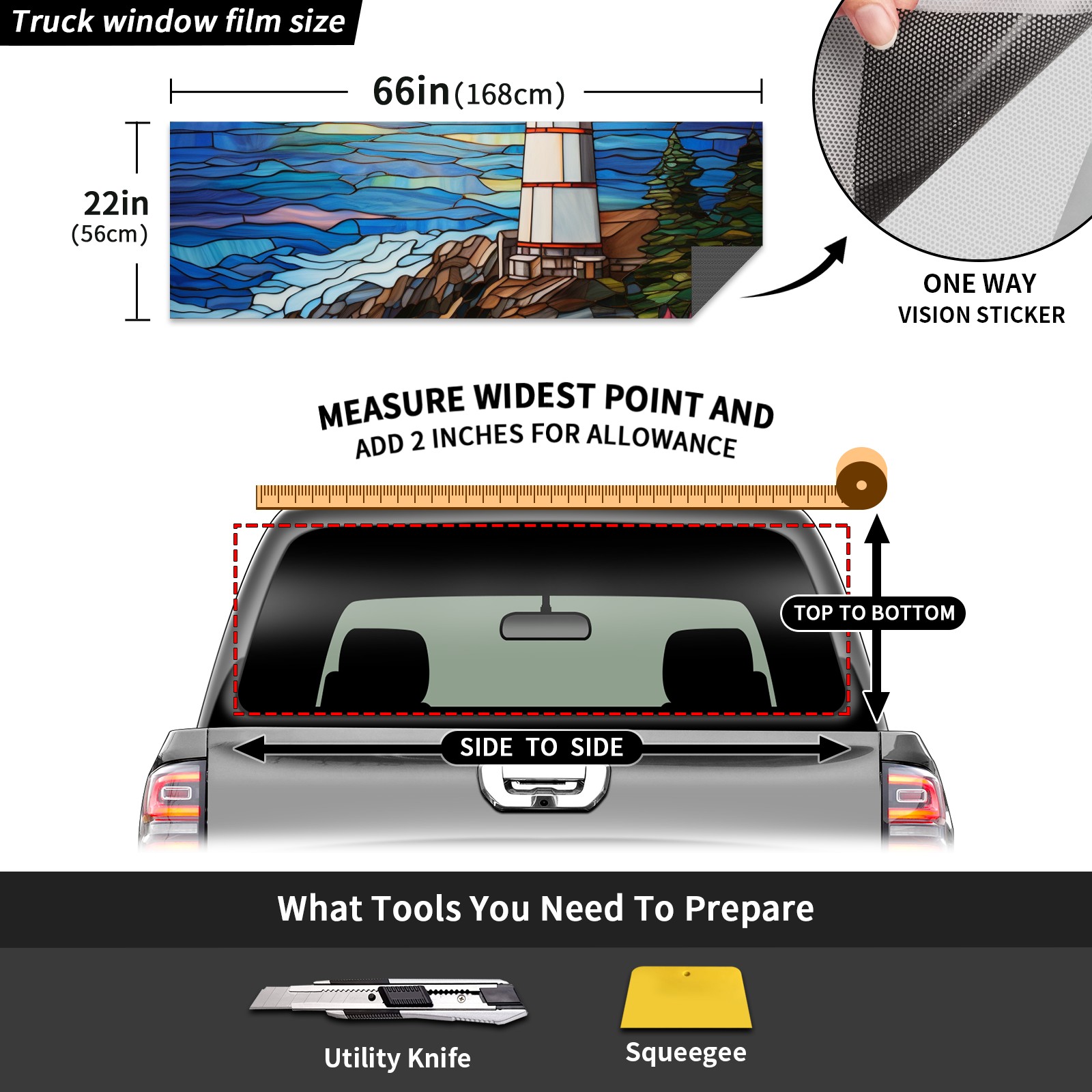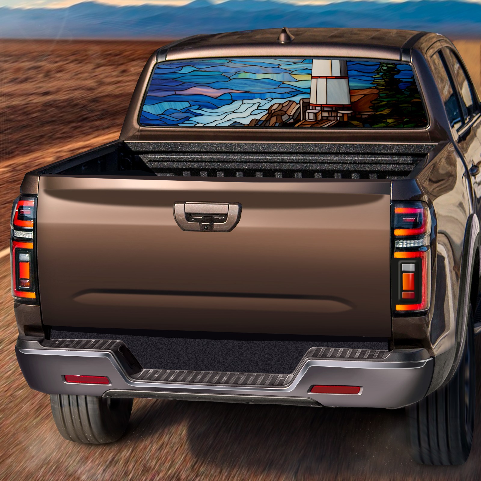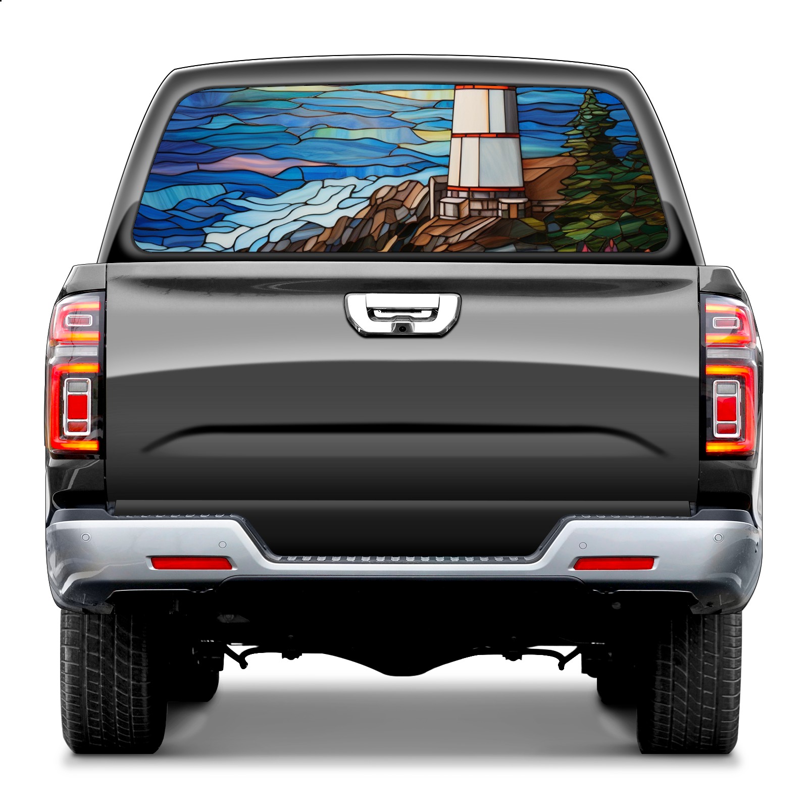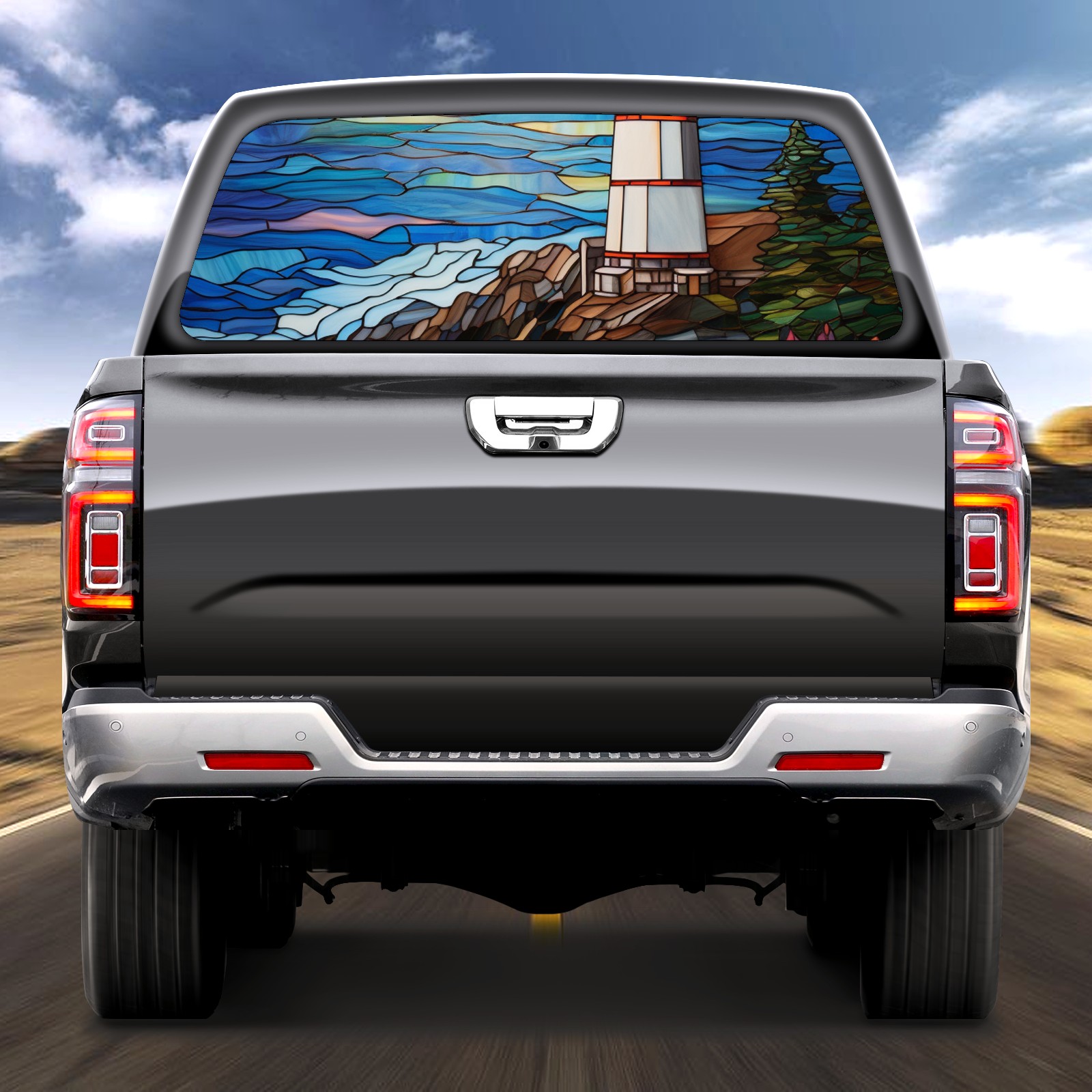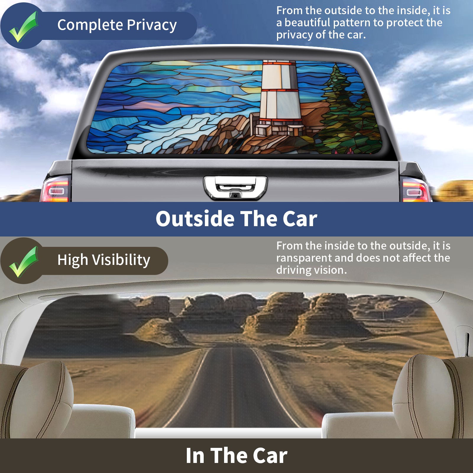 Truck Rear Window Graphics Decals Pickup Trucks Back Window Sticker Full Window Film Decal One Way Visual Waterproof Car Rear Tint Lighthouse Stained Glass