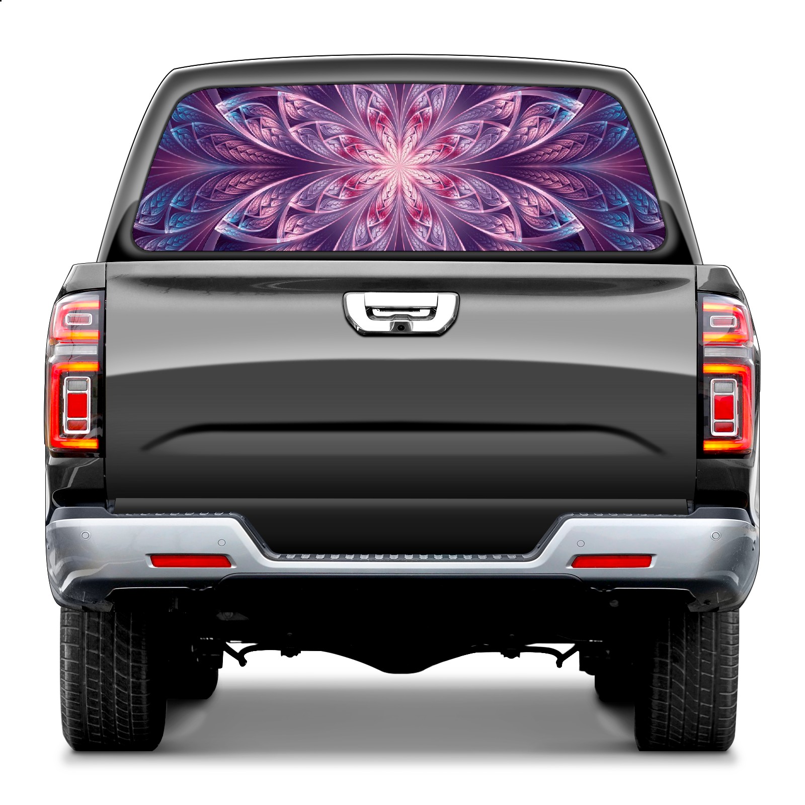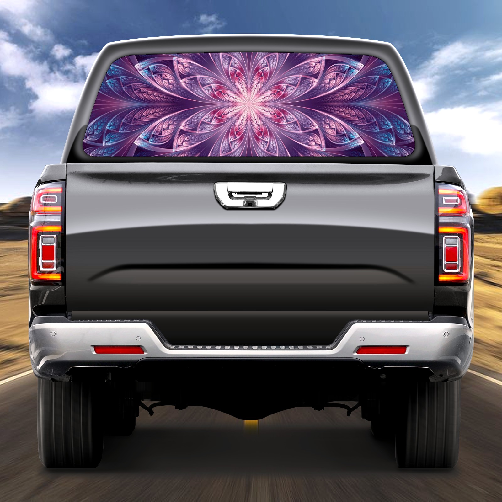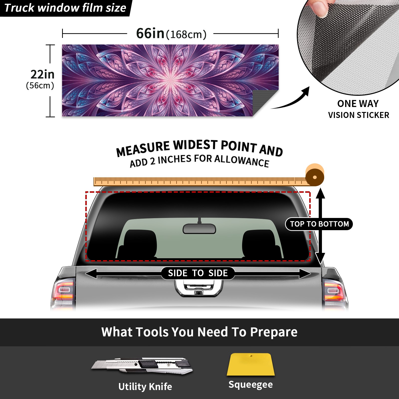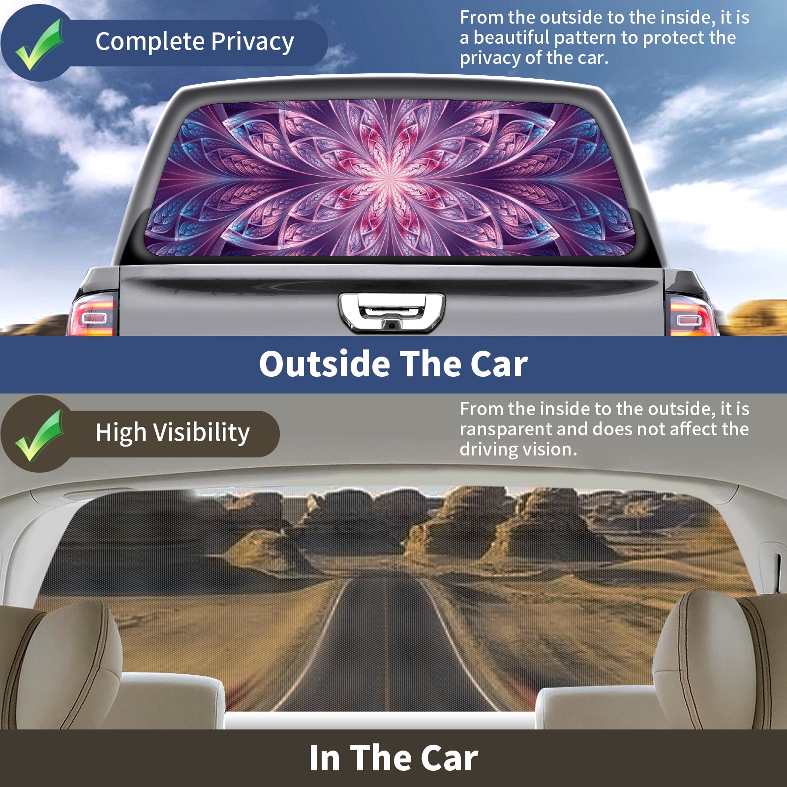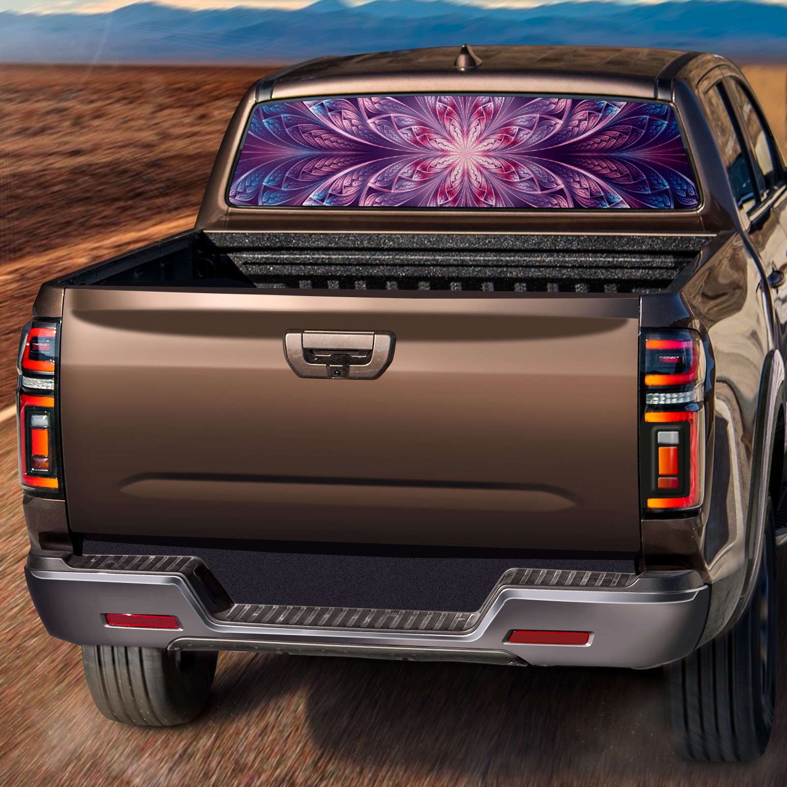 Truck Rear Window Graphics Decals Pickup Trucks Back Window Sticker Full Window Film Decal One Way Visual Waterproof Car Rear Tint Floral Stained Glass Purple