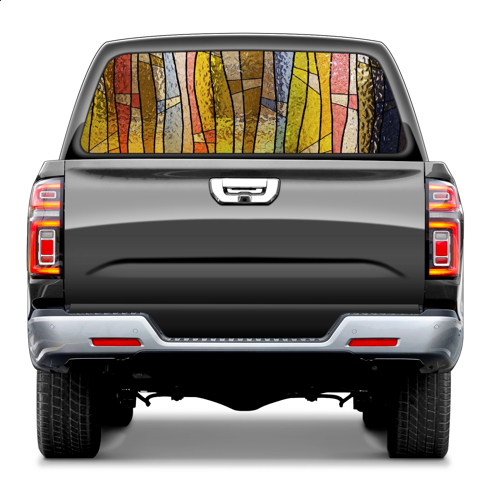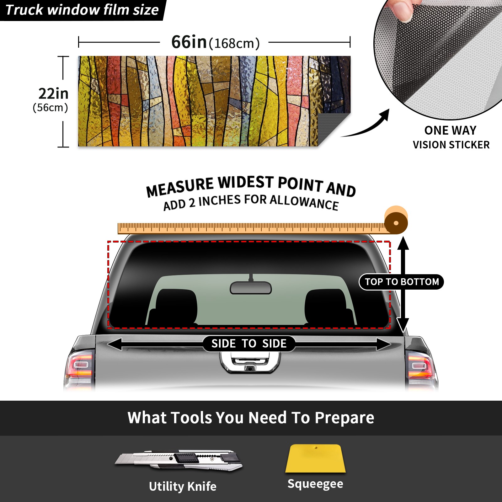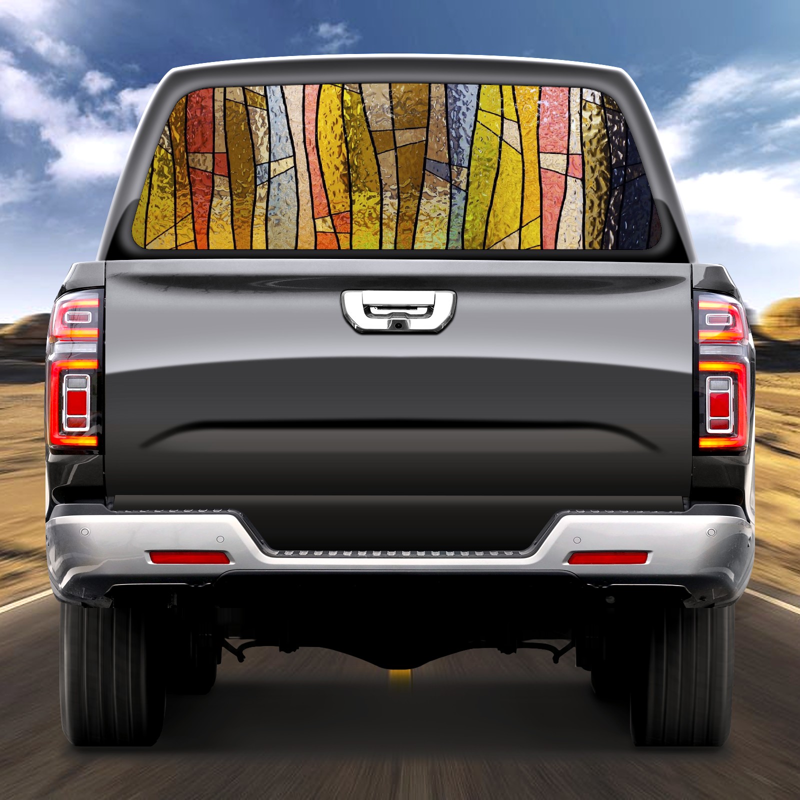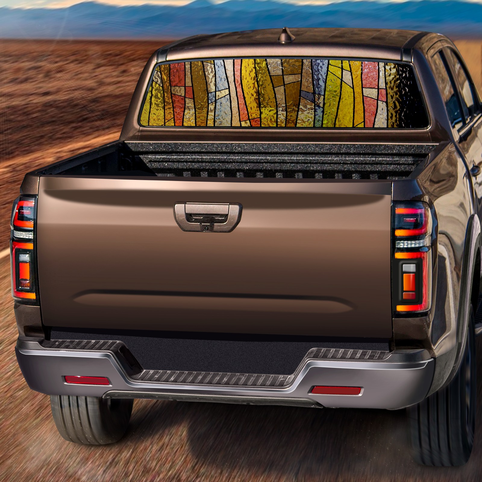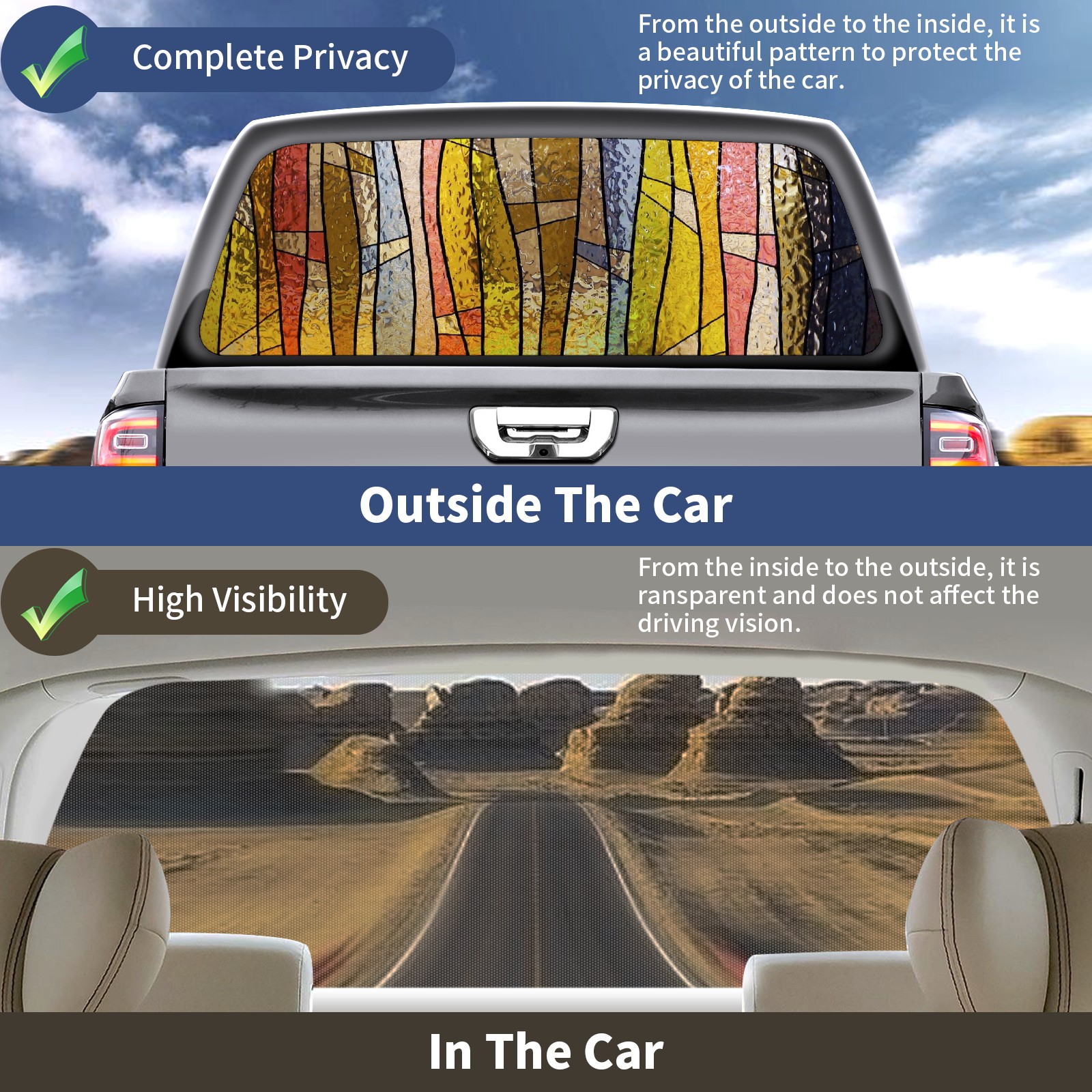 Truck Rear Window Graphics Decals Pickup Trucks Back Window Sticker Full Window Film Decal One Way Visual Waterproof Car Rear Tint Vintage Stained Glass Yellow