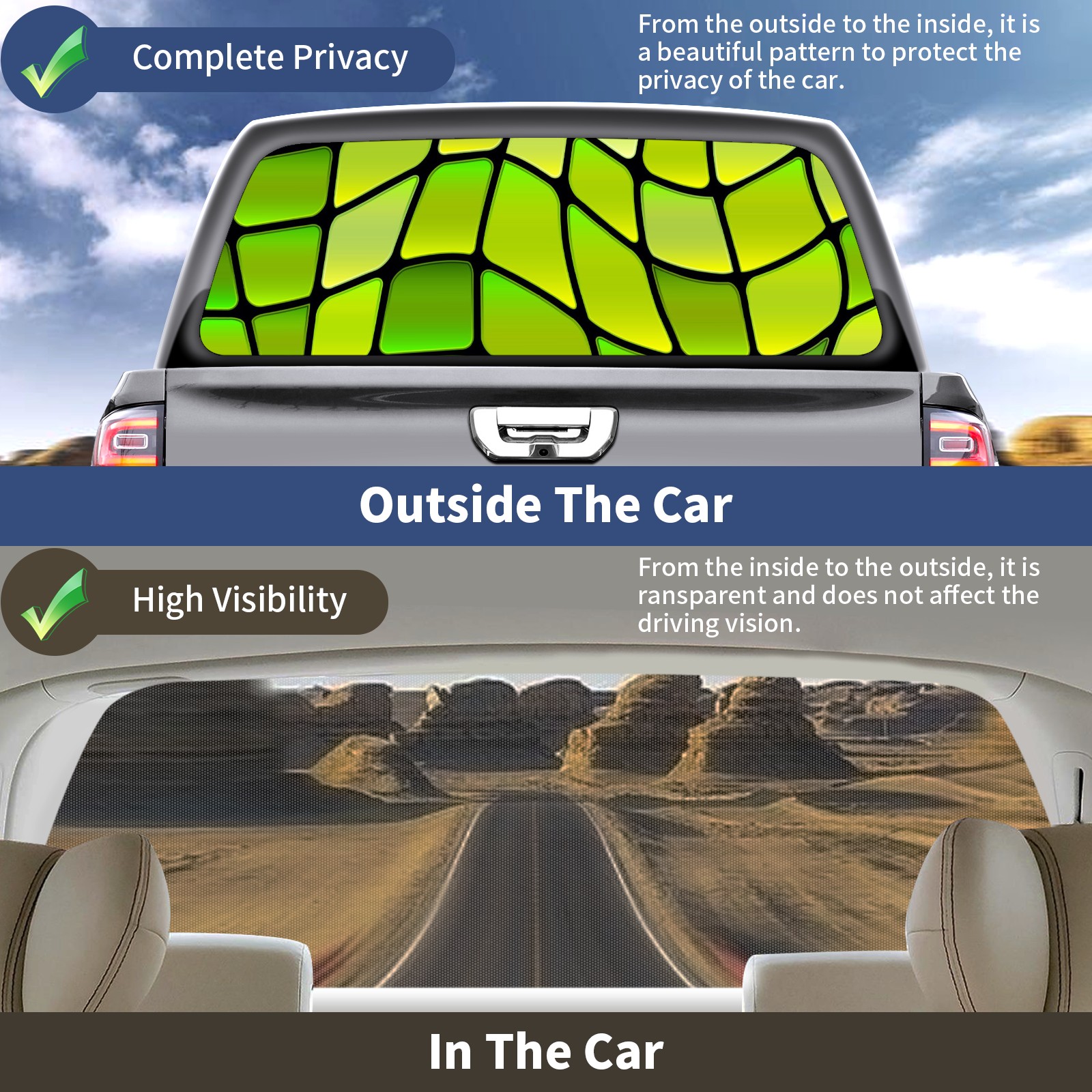 Truck Rear Window Graphics Decals Pickup Trucks Back Window Sticker Full Window Film Decal One Way Visual Waterproof Car Rear Tint Green Stained Glass