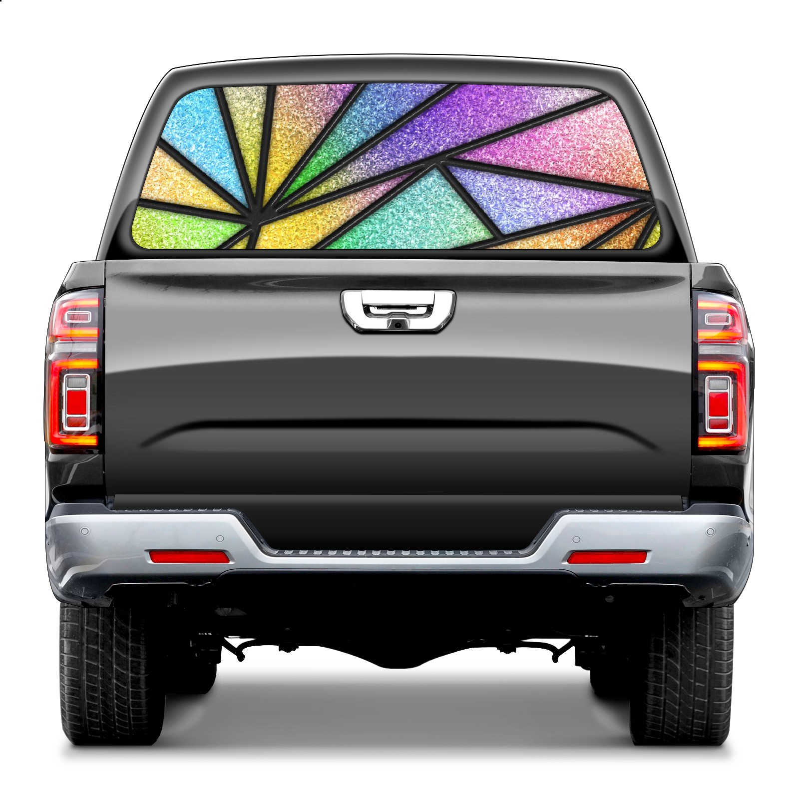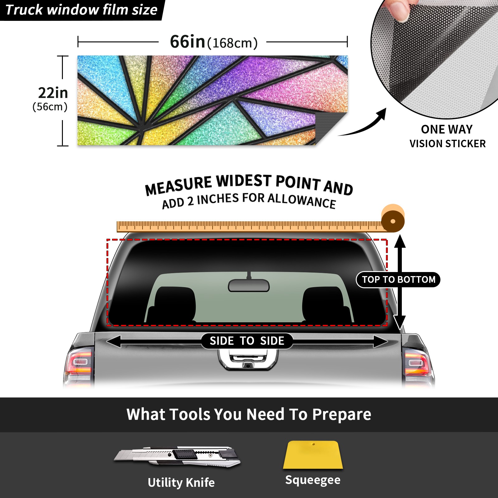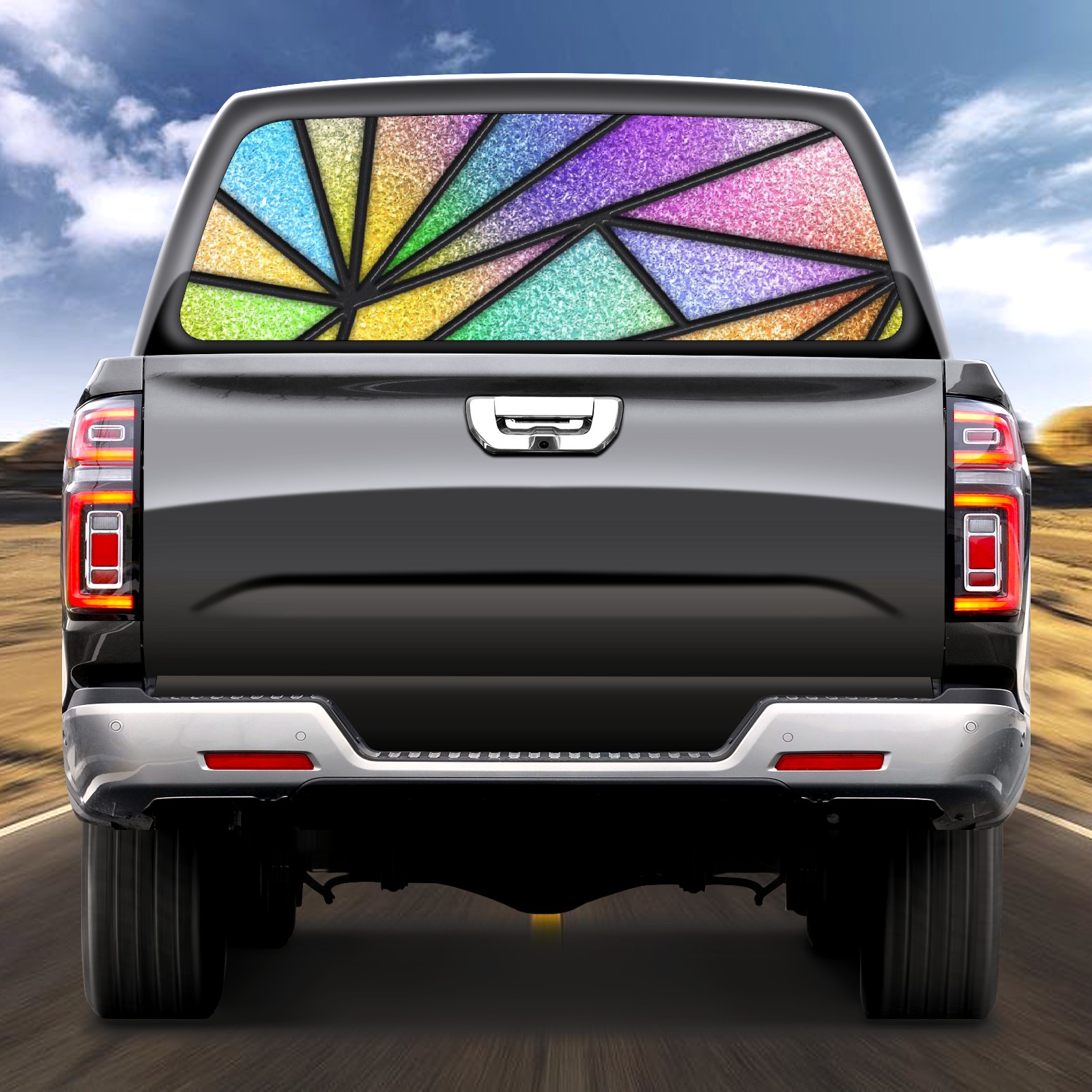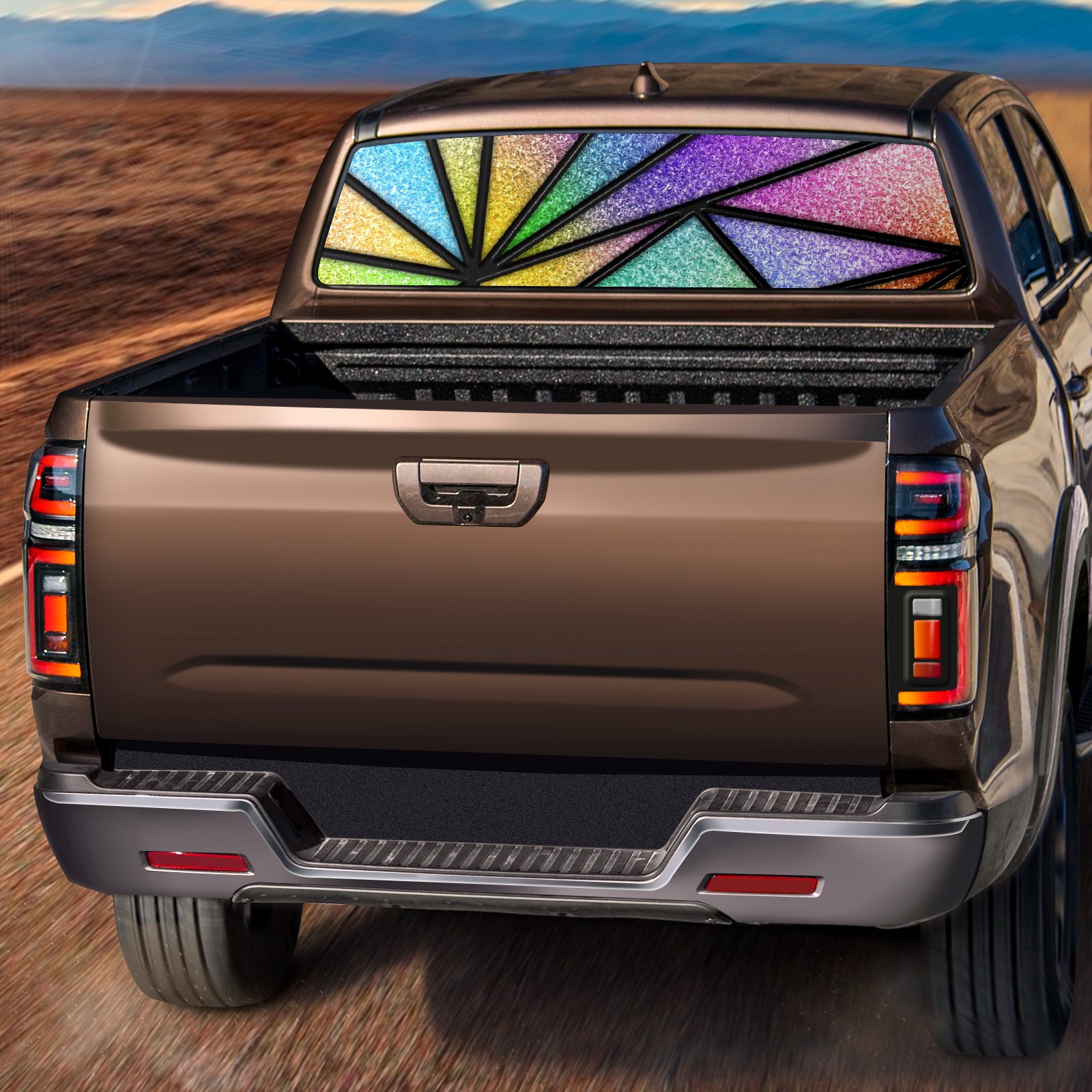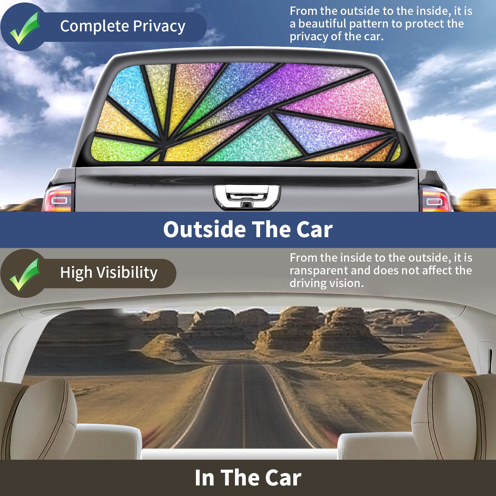 Truck Rear Window Graphics Decals Pickup Trucks Back Window Sticker Full Window Film Decal One Way Visual Waterproof Car Rear Tint Stained Glass Purple Pink