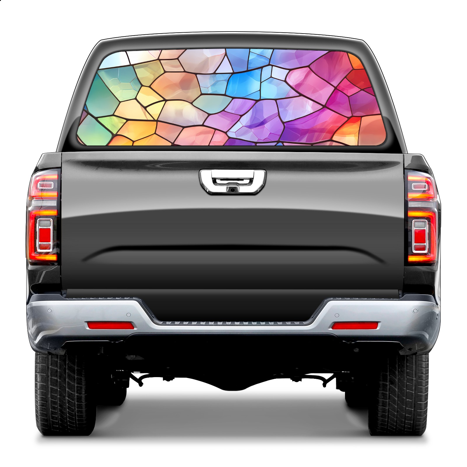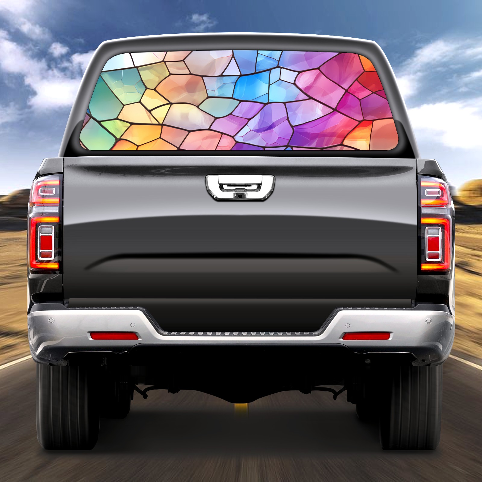 Truck Rear Window Graphics Decals Pickup Trucks Back Window Sticker Full Window Film Decal One Way Visual Waterproof Car Rear Tint Stained Glass Pattern
