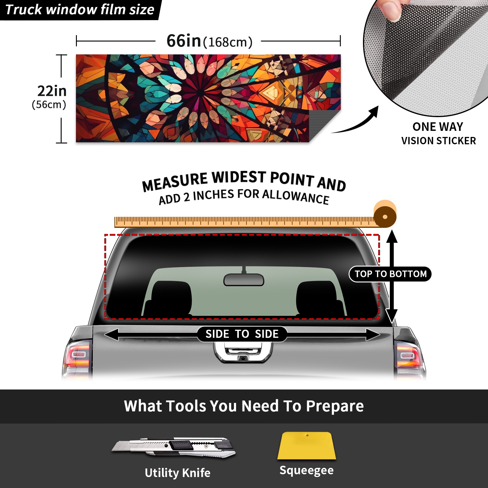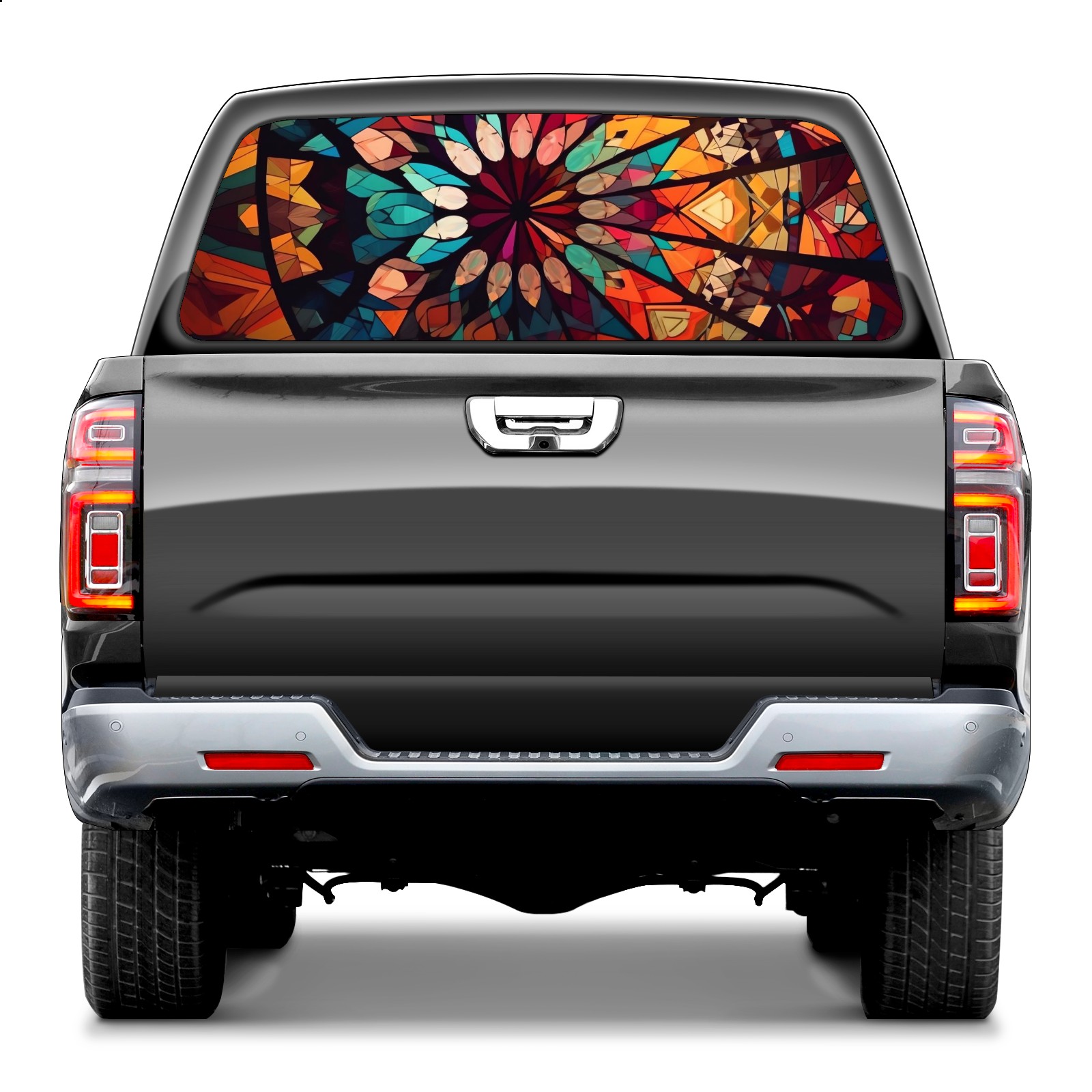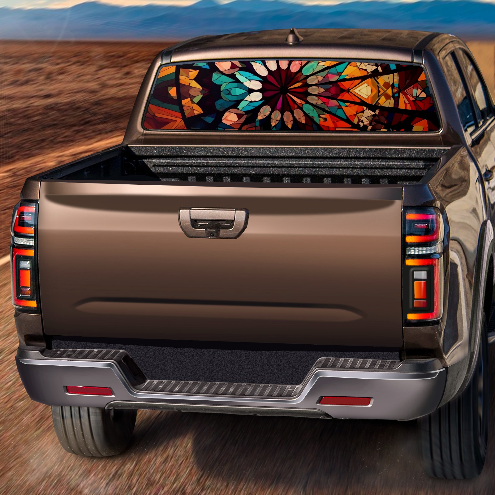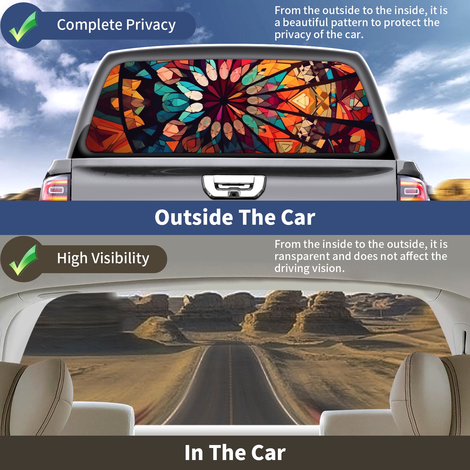 Truck Rear Window Graphics Decals Pickup Trucks Back Window Sticker Full Window Film Decal One Way Visual Waterproof Car Rear Tint Geometric Colorful Stained Glass