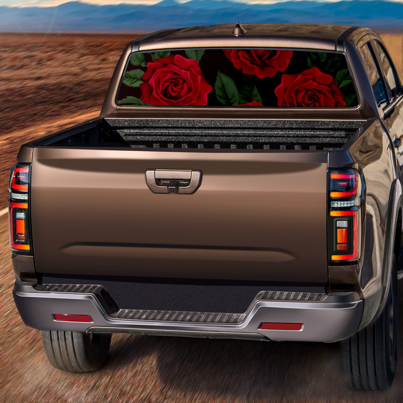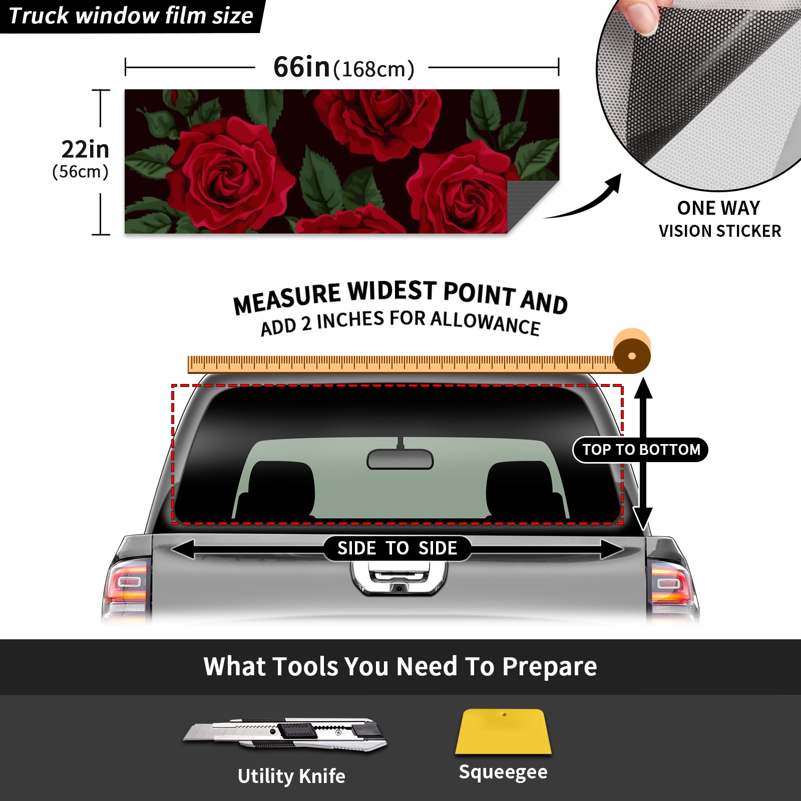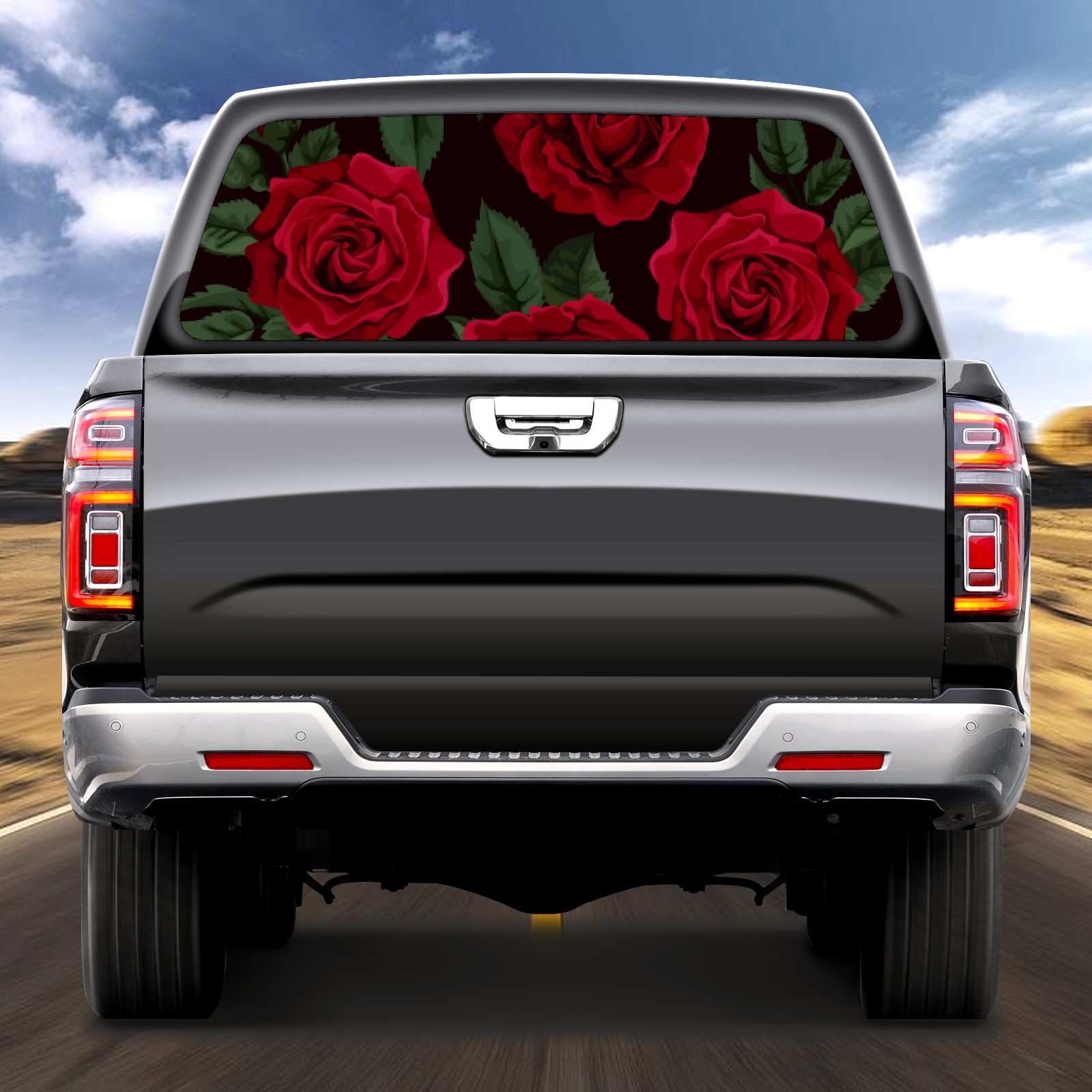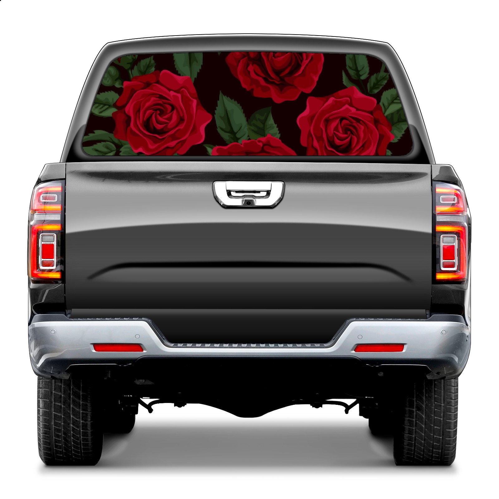 Truck Rear Window Graphics Decals Pickup Trucks Back Window Sticker Full Window Film Decal One Way Visual Waterproof Car Rear Tint Red Rose Floral