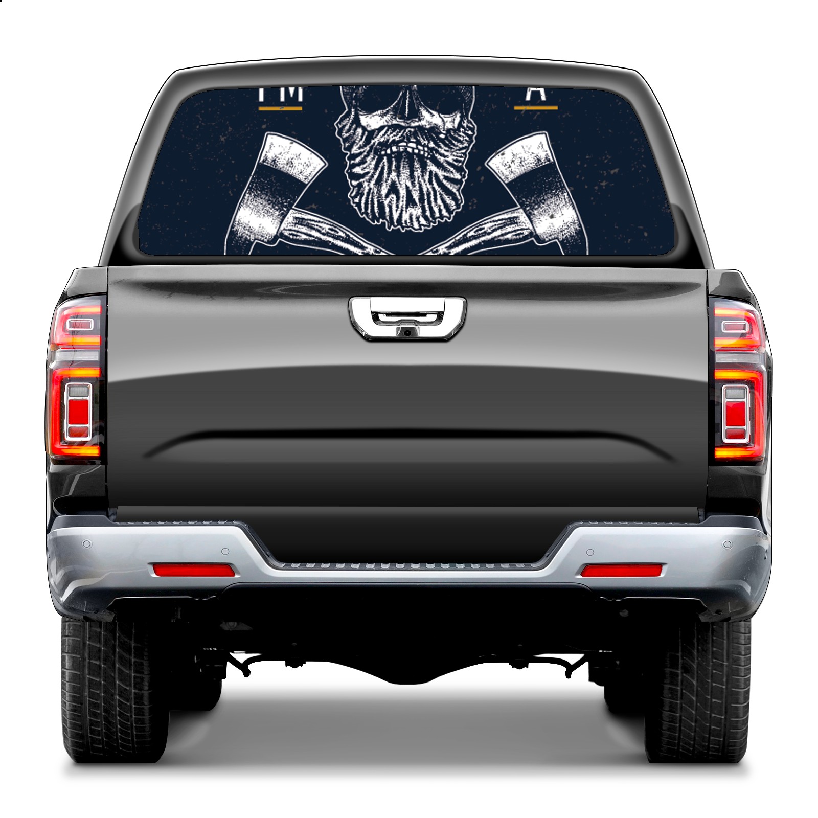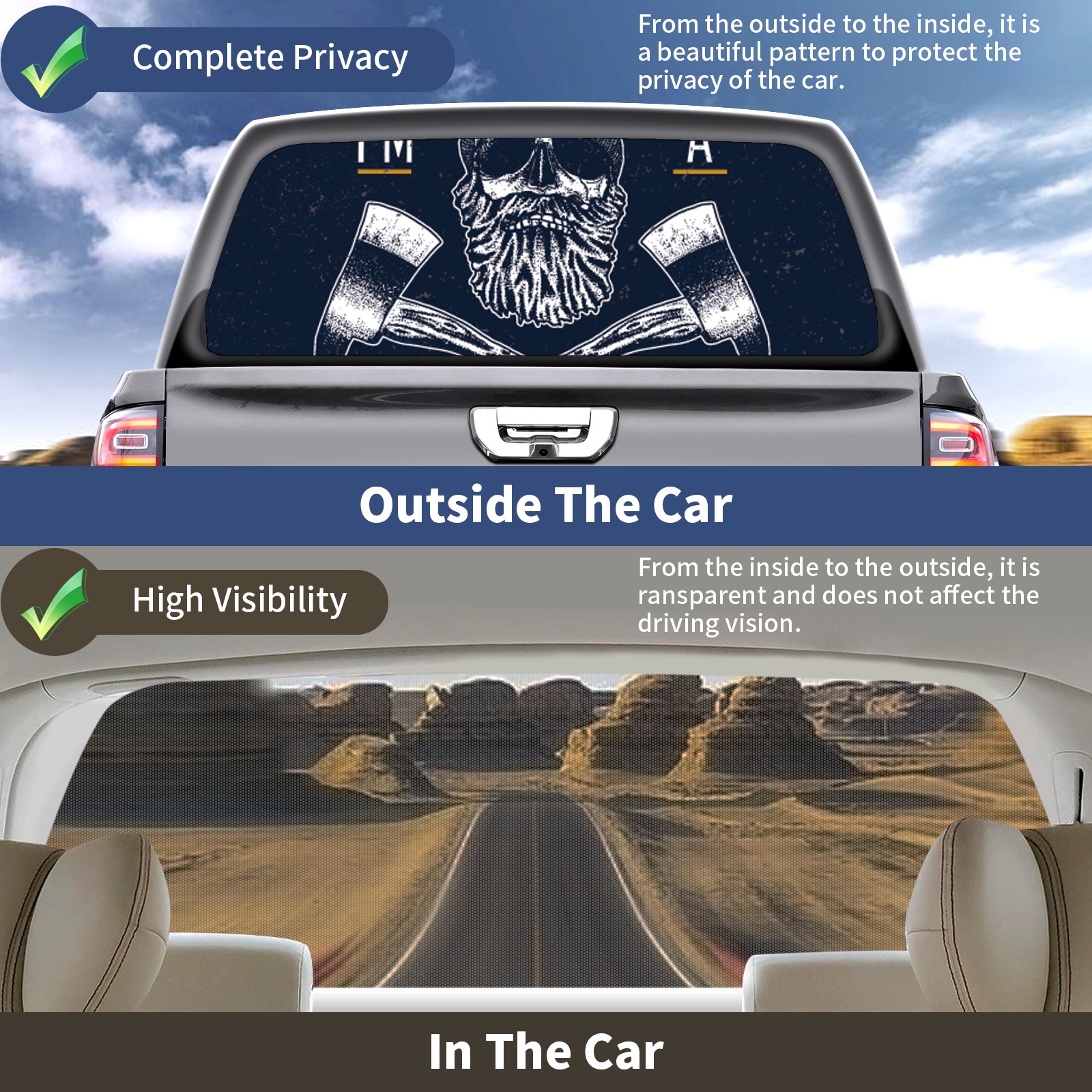 Truck Rear Window Graphics Decals Pickup Trucks Back Window Sticker Full Window Film Decal One Way Visual Waterproof Car Rear Tint Vintage Skull (9)