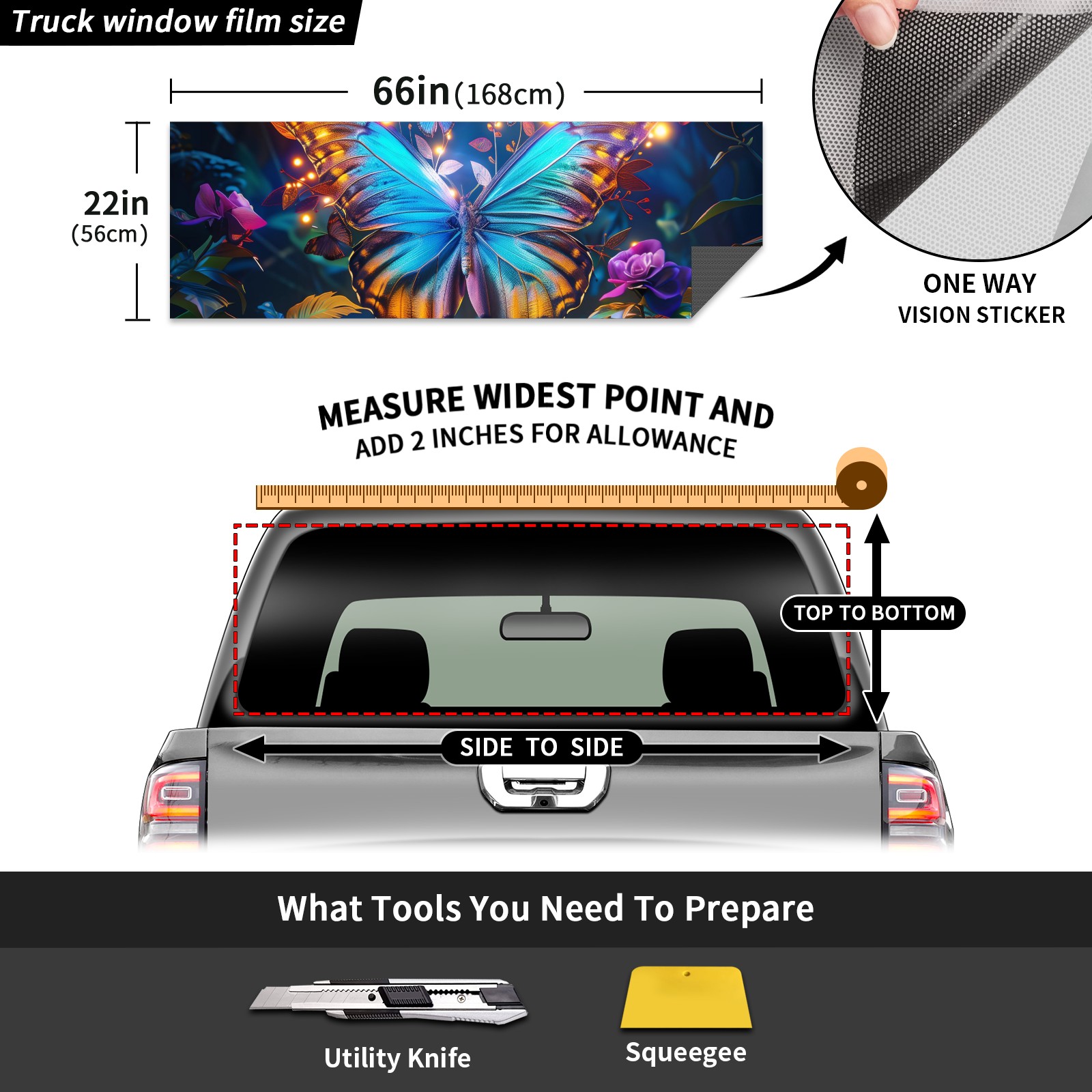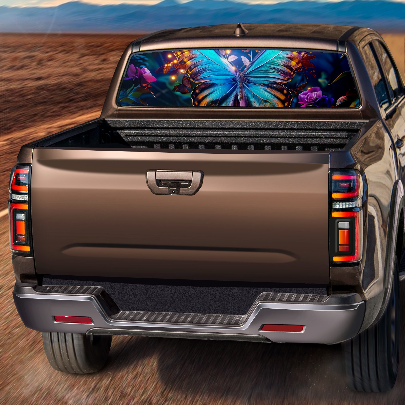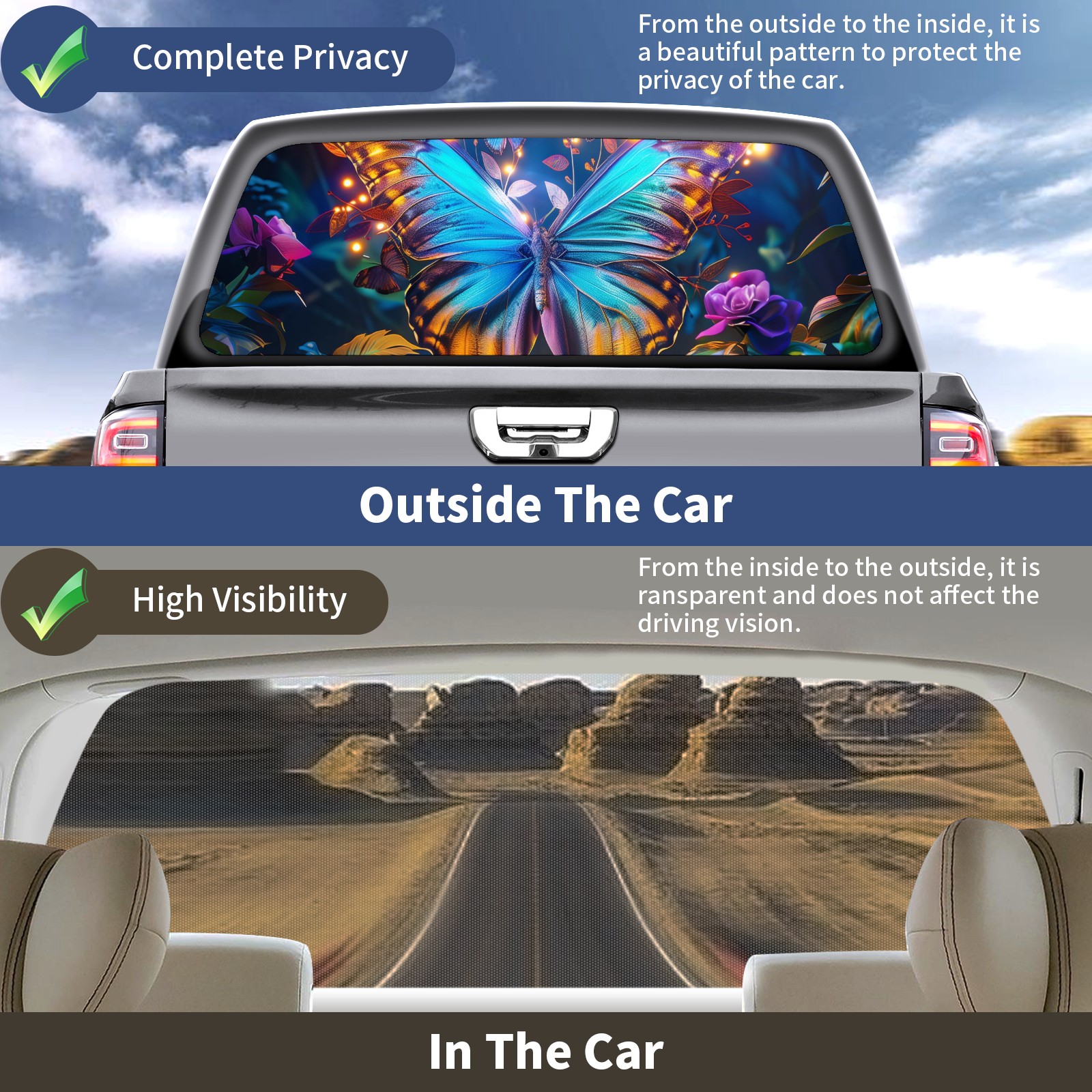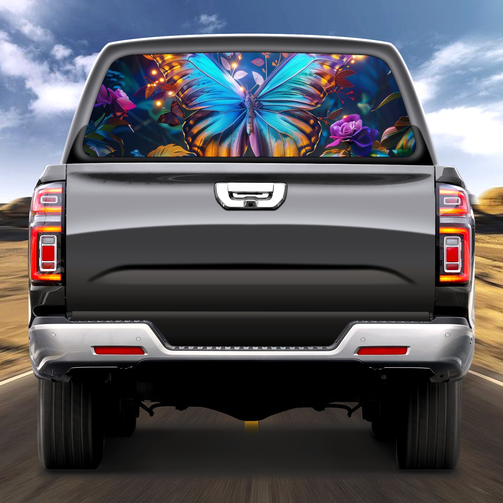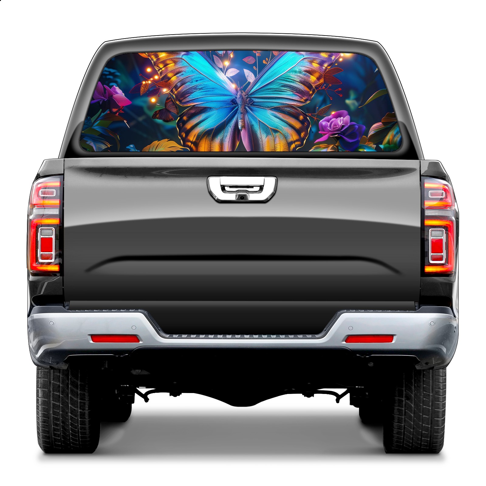 Truck Rear Window Graphics Decals Pickup Trucks Back Window Sticker Full Window Film Decal One Way Visual Waterproof Car Rear Tint Forest Butterfly