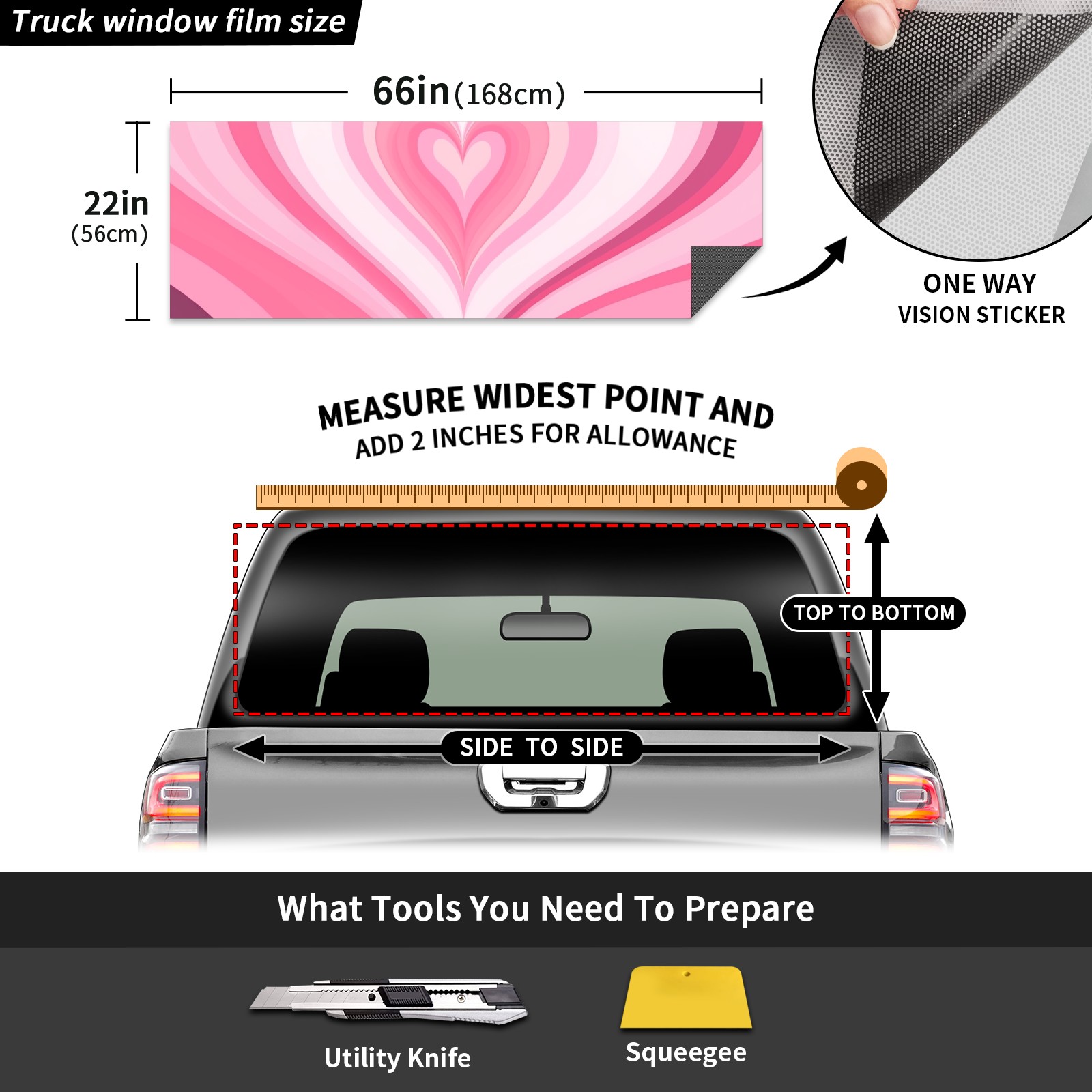 Truck Rear Window Graphics Decals Pickup Trucks Back Window Sticker Full Window Film Decal One Way Visual Waterproof Car Rear Tint Pink Hearts (2)