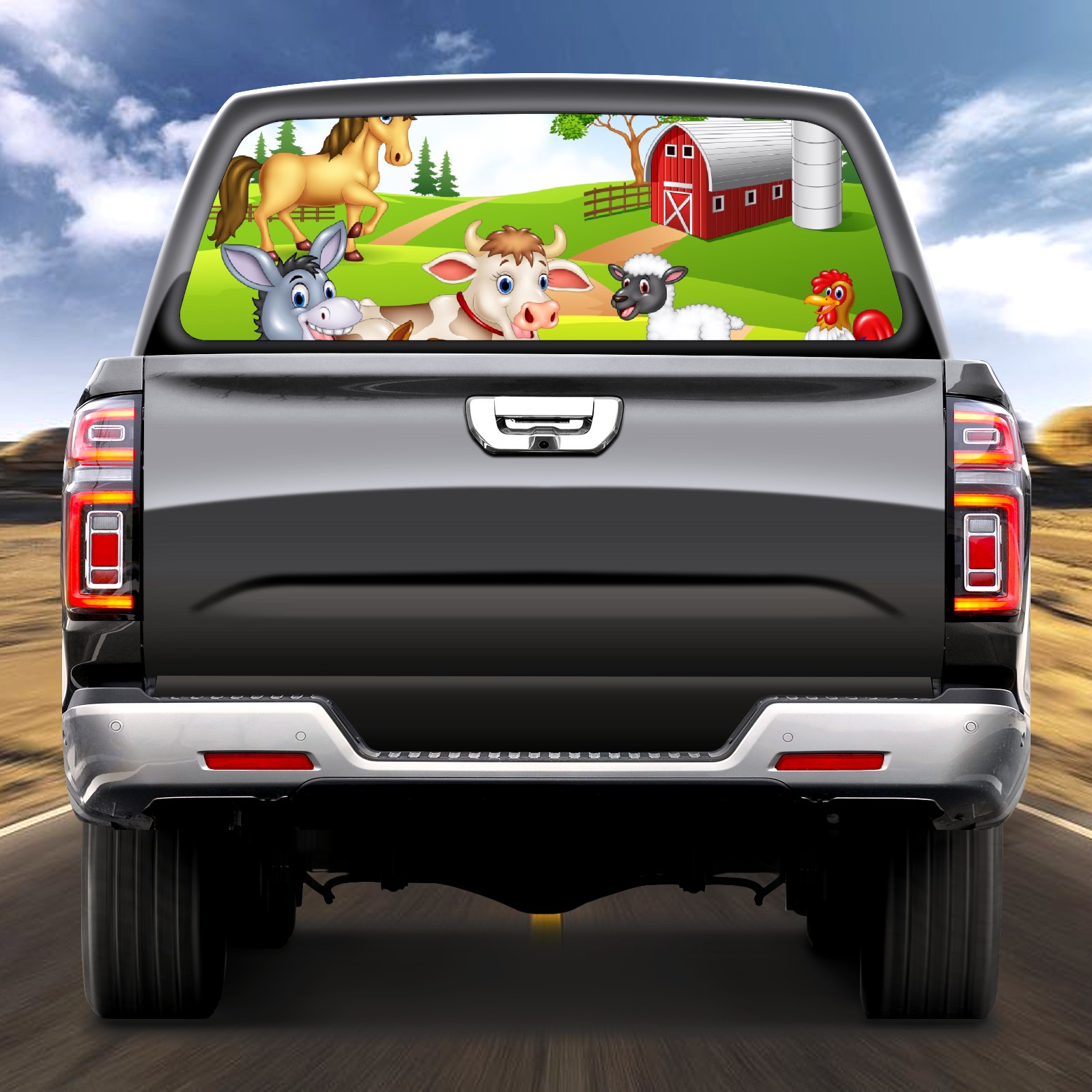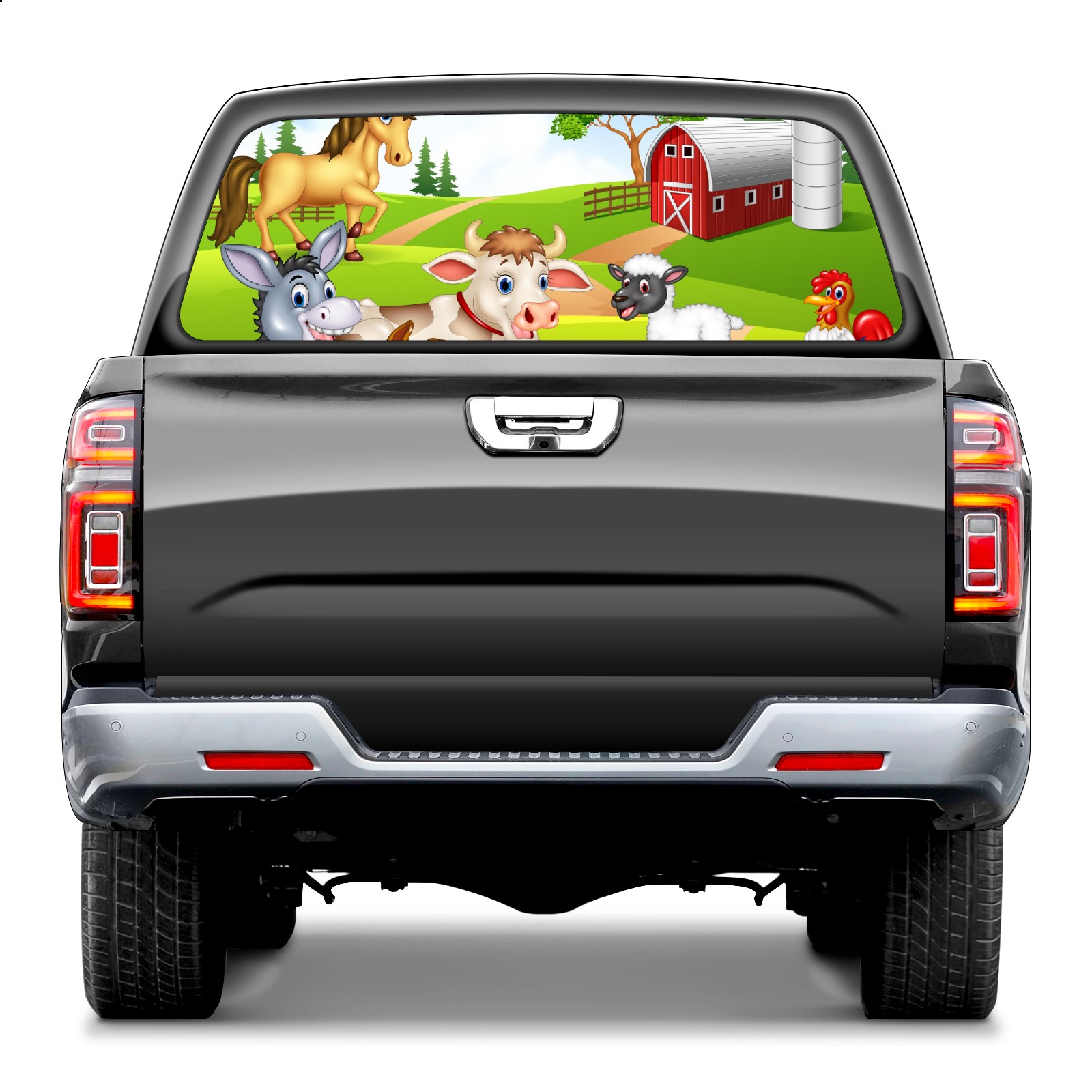 Truck Rear Window Graphics Decals Pickup Trucks Back Window Sticker Full Window Film Decal One Way Visual Waterproof Car Rear Tint Animal Farm Selfie