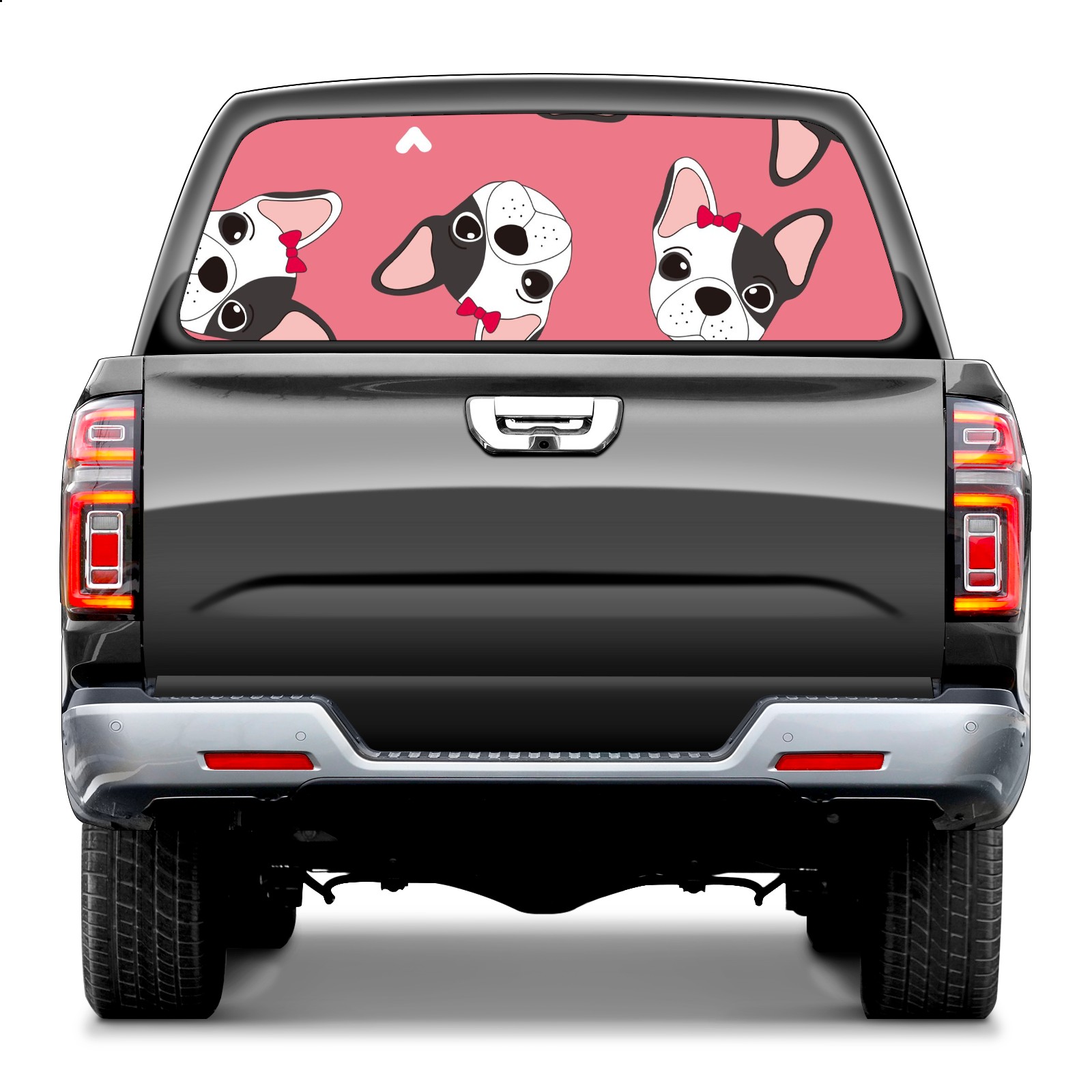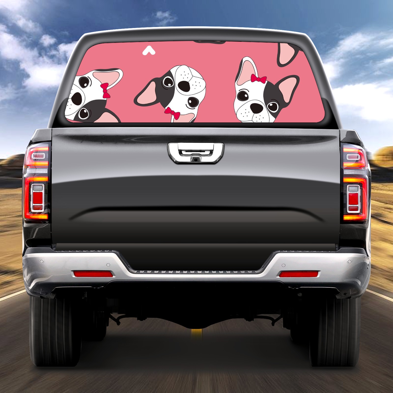 Truck Rear Window Graphics Decals Pickup Trucks Back Window Sticker Full Window Film Decal One Way Visual Waterproof Car Rear Tint Cute Pink Puppy Dog Girl