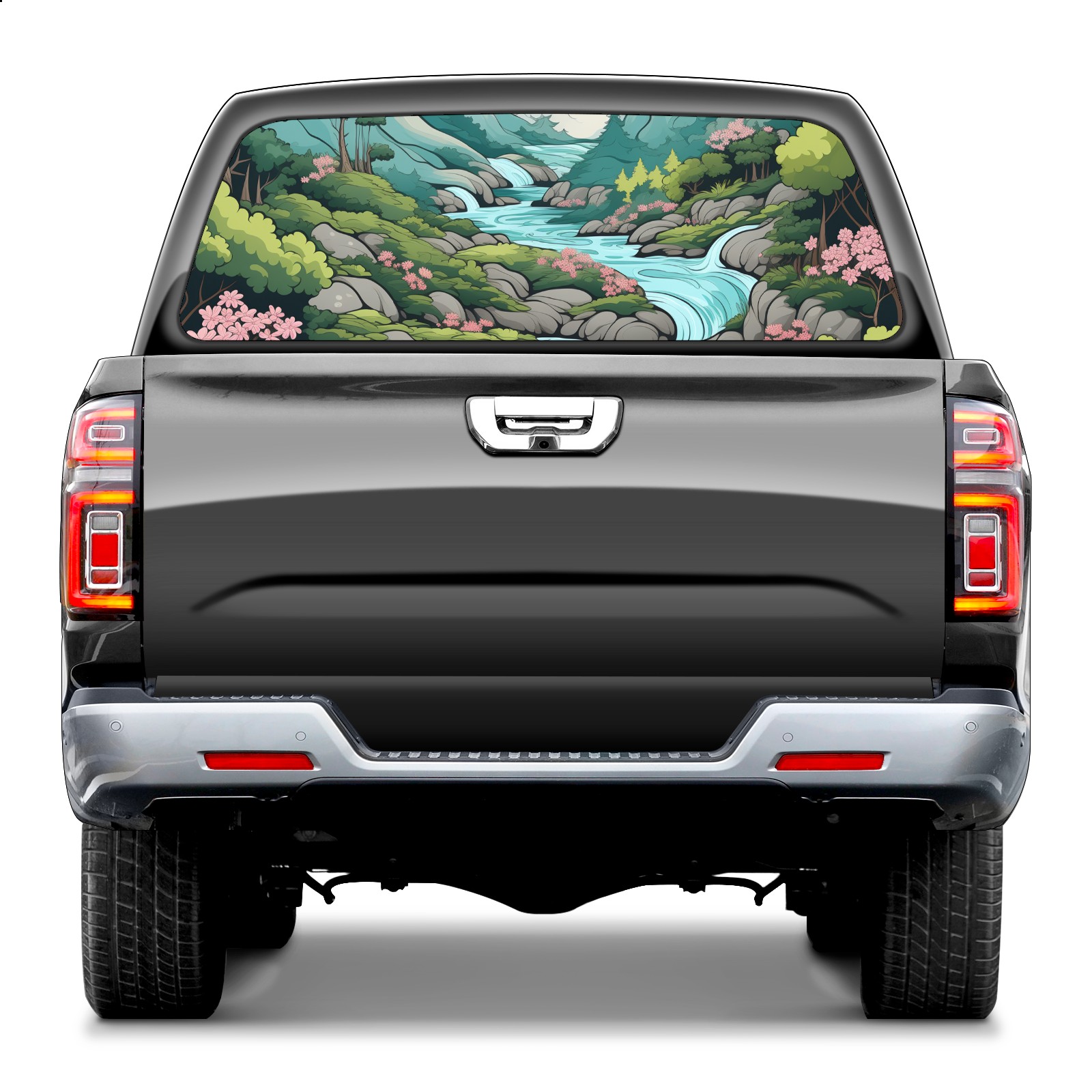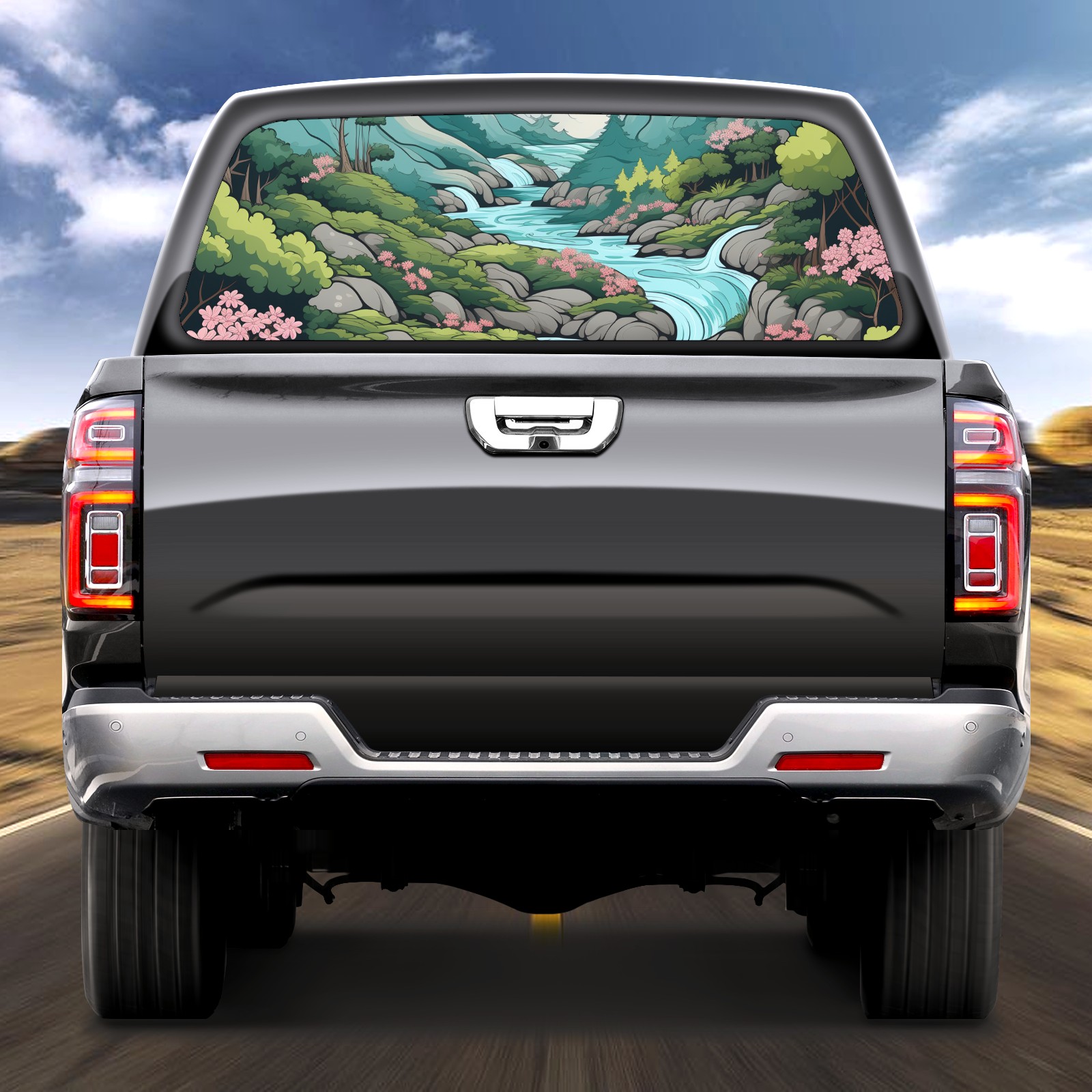 Truck Rear Window Graphics Decals Pickup Trucks Back Window Sticker Full Window Film Decal One Way Visual Waterproof Car Rear Tint River