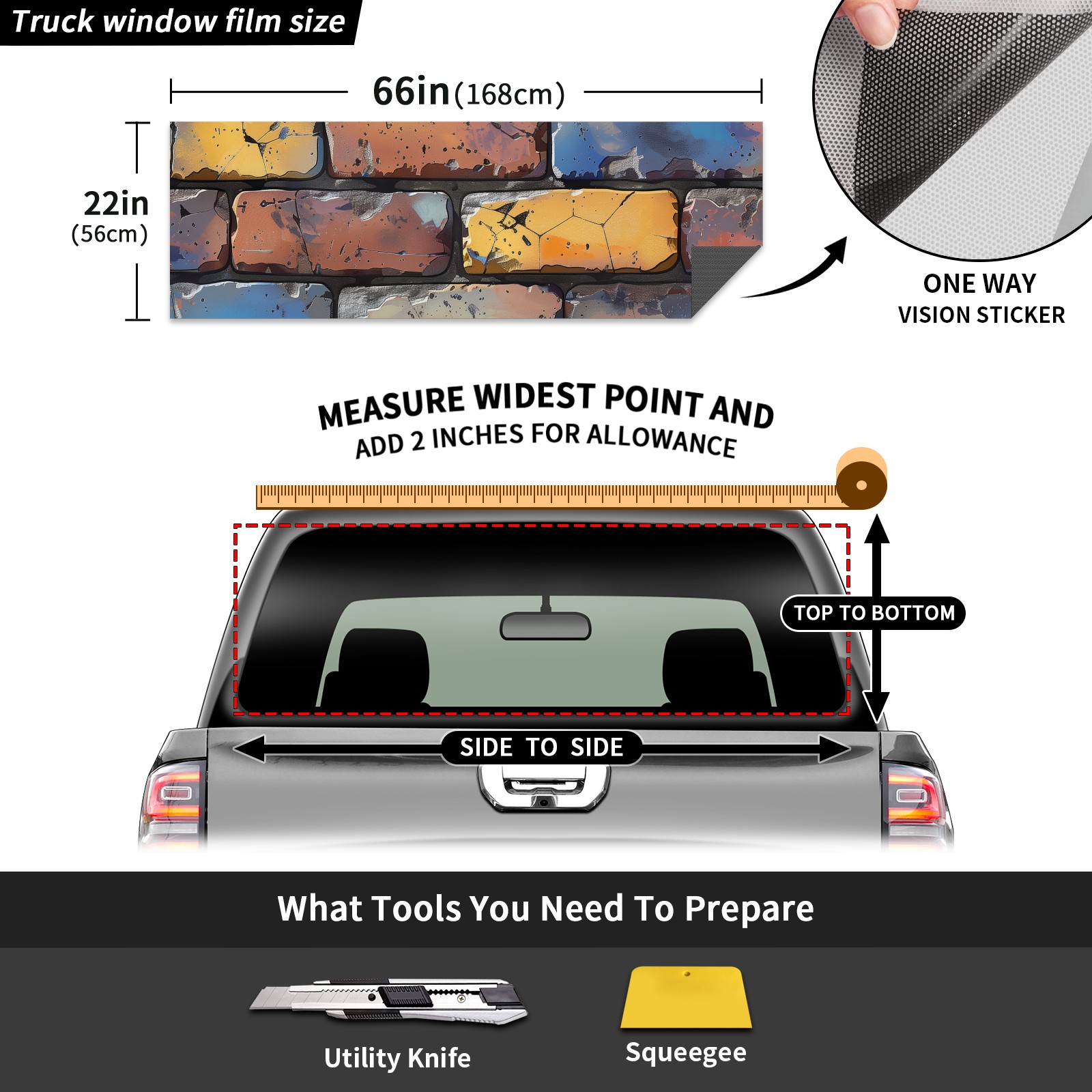 Truck Rear Window Graphics Decals Pickup Trucks Back Window Sticker Full Window Film Decal One Way Visual Waterproof Car Rear Tint Red Brick