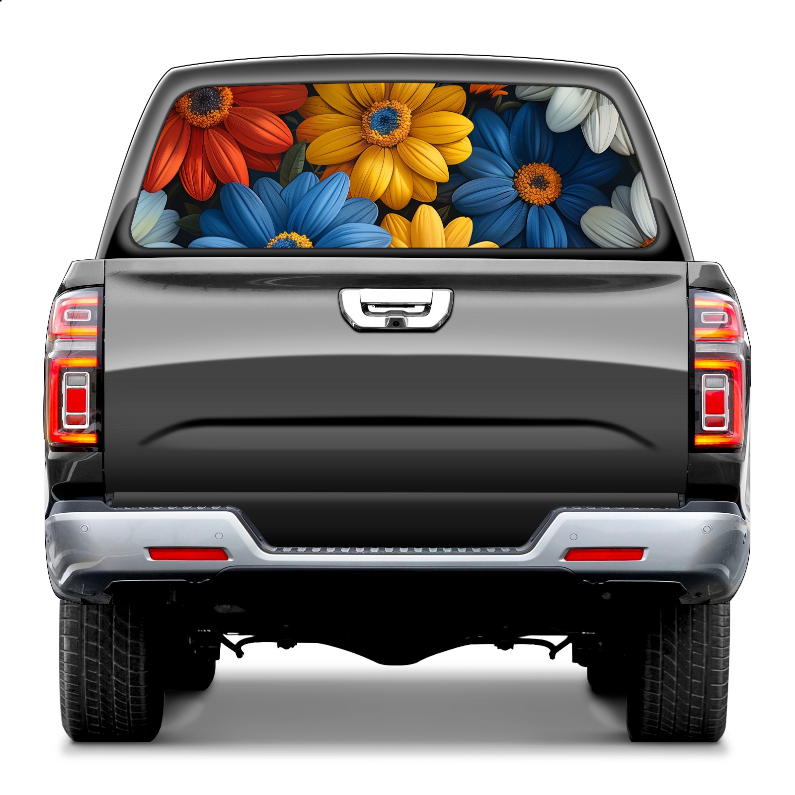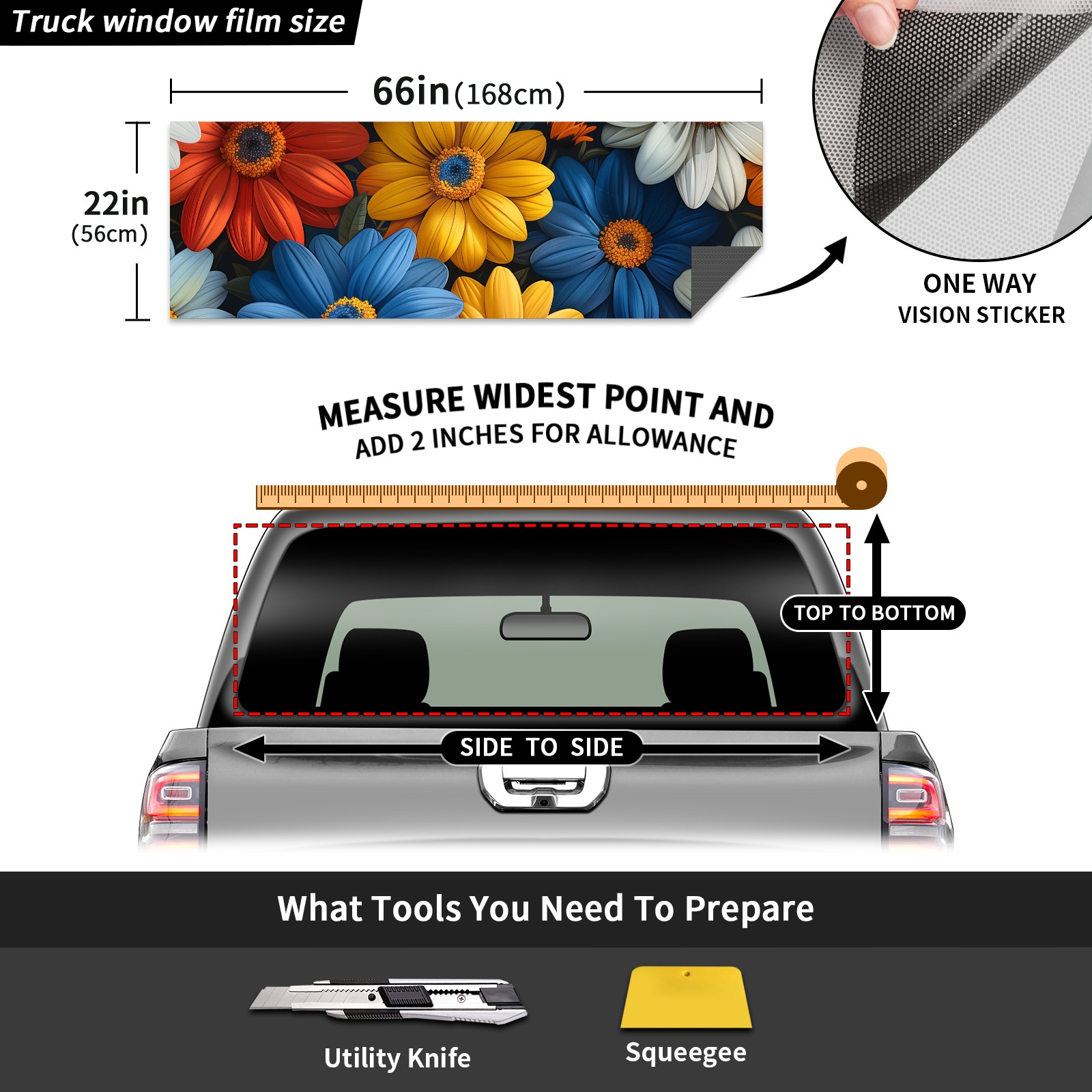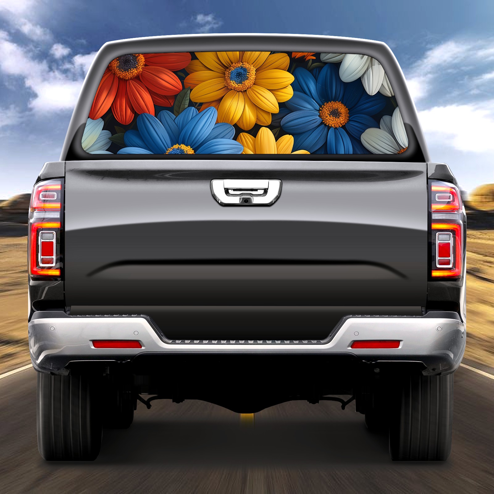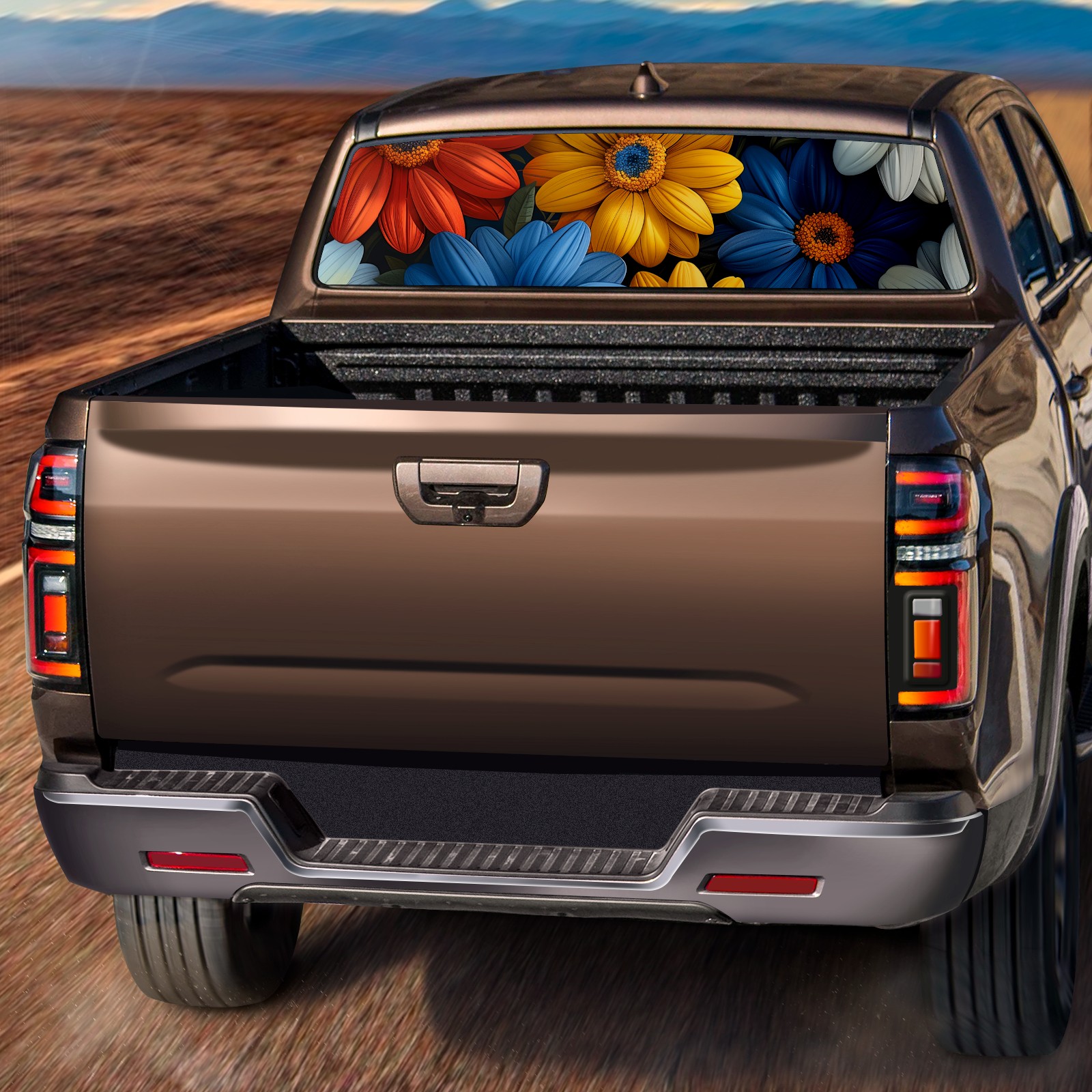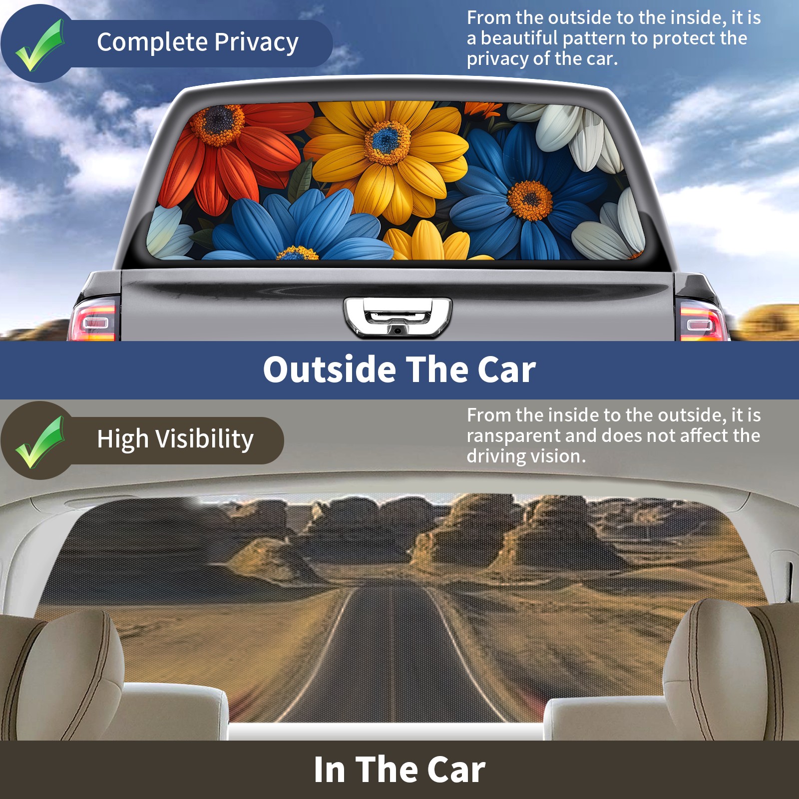 Truck Rear Window Graphics Decals Pickup Trucks Back Window Sticker Full Window Film Decal One Way Visual Waterproof Car Rear Tint Colorful Daisies