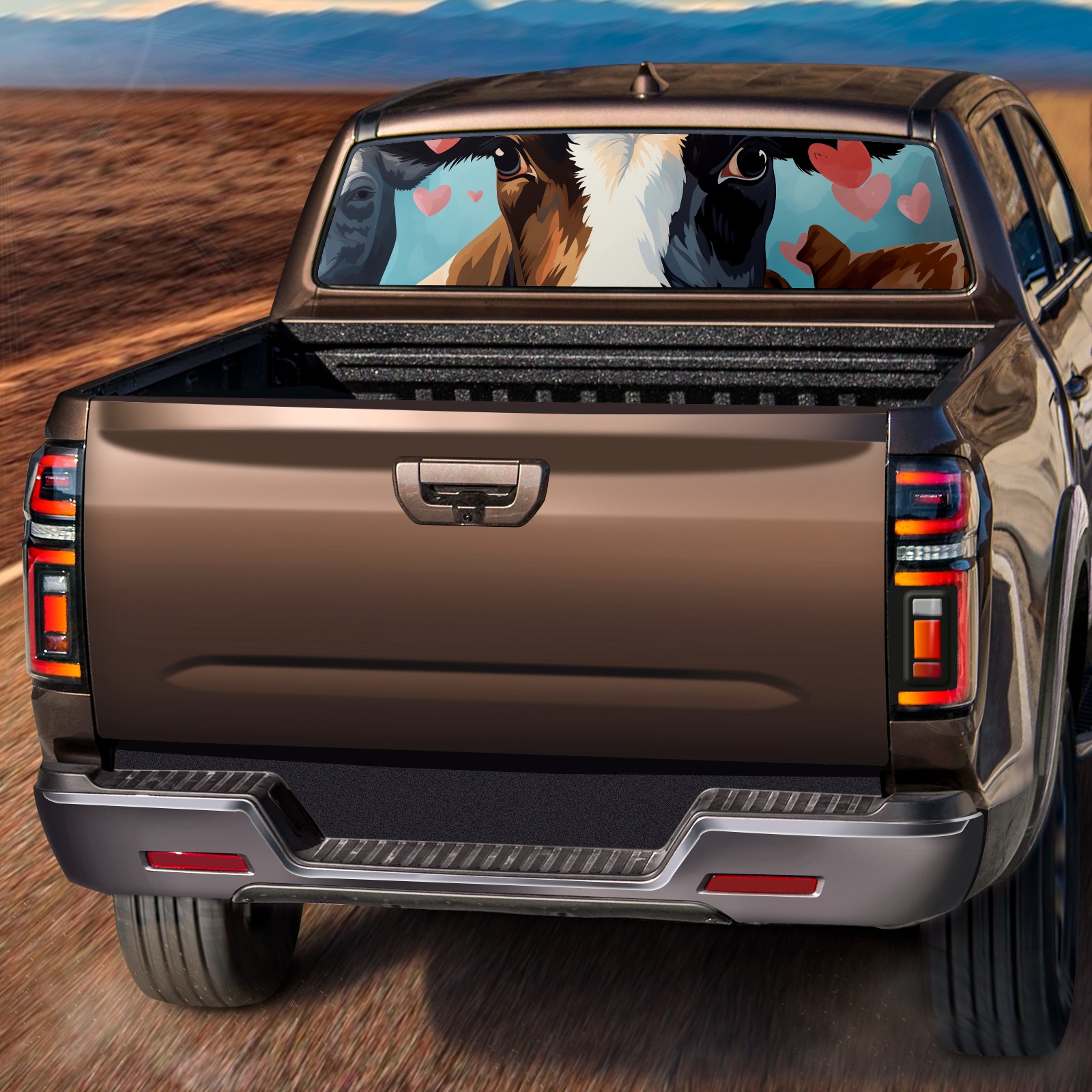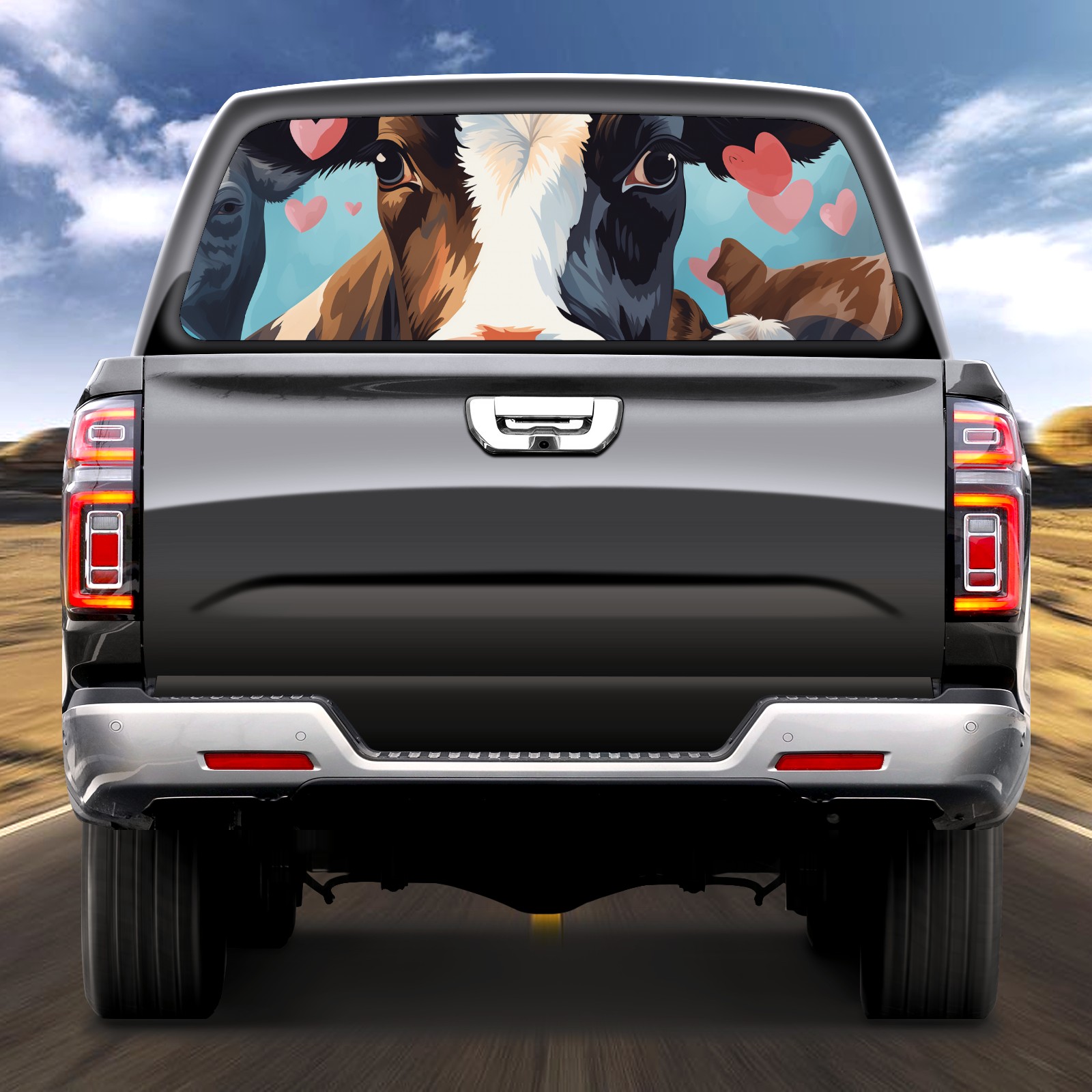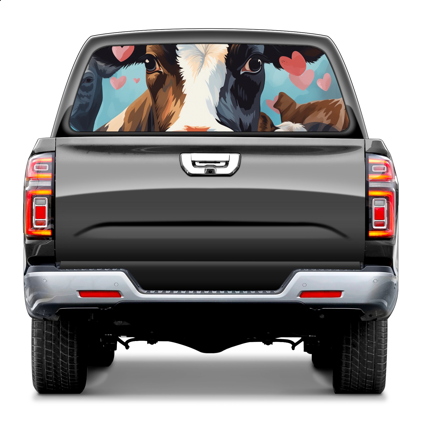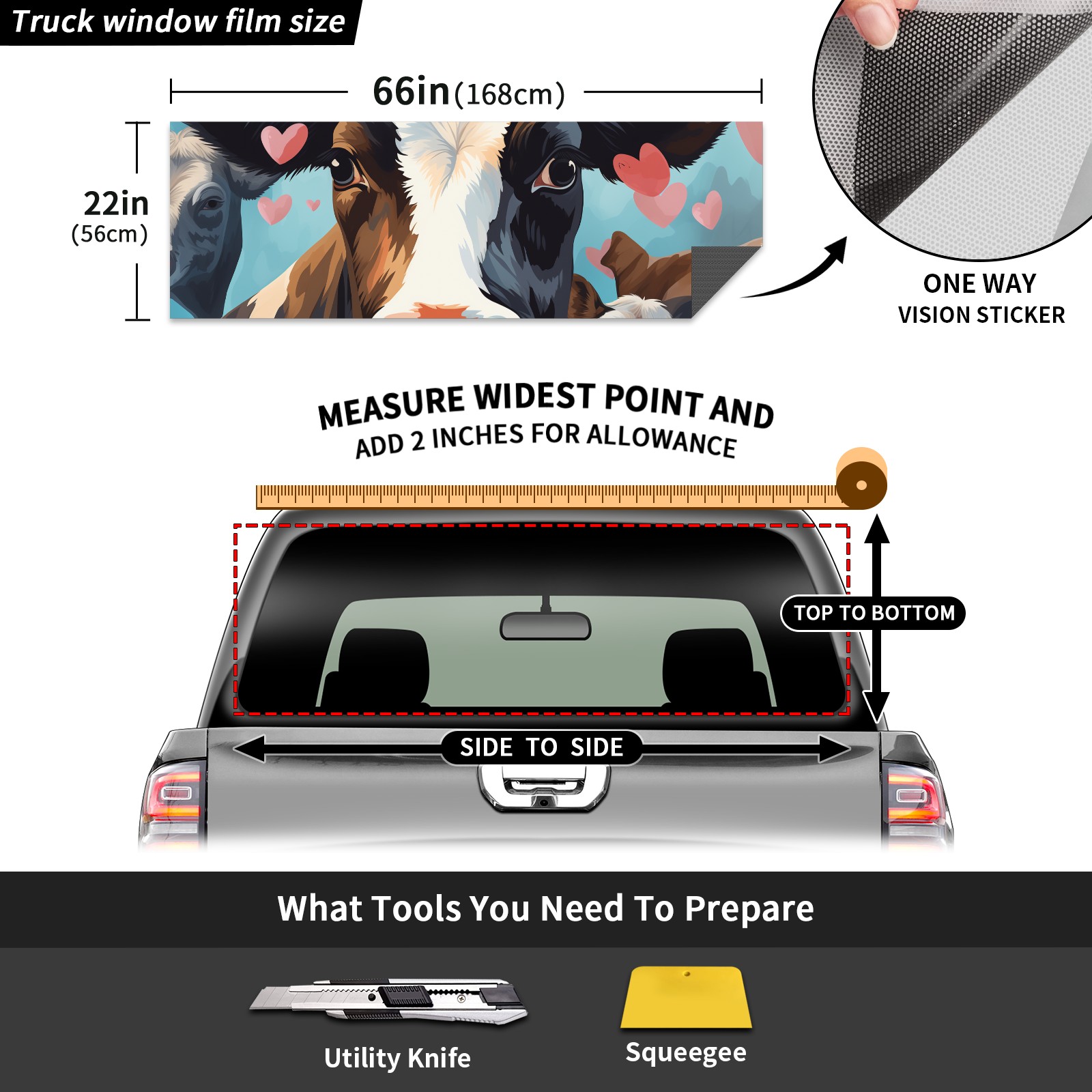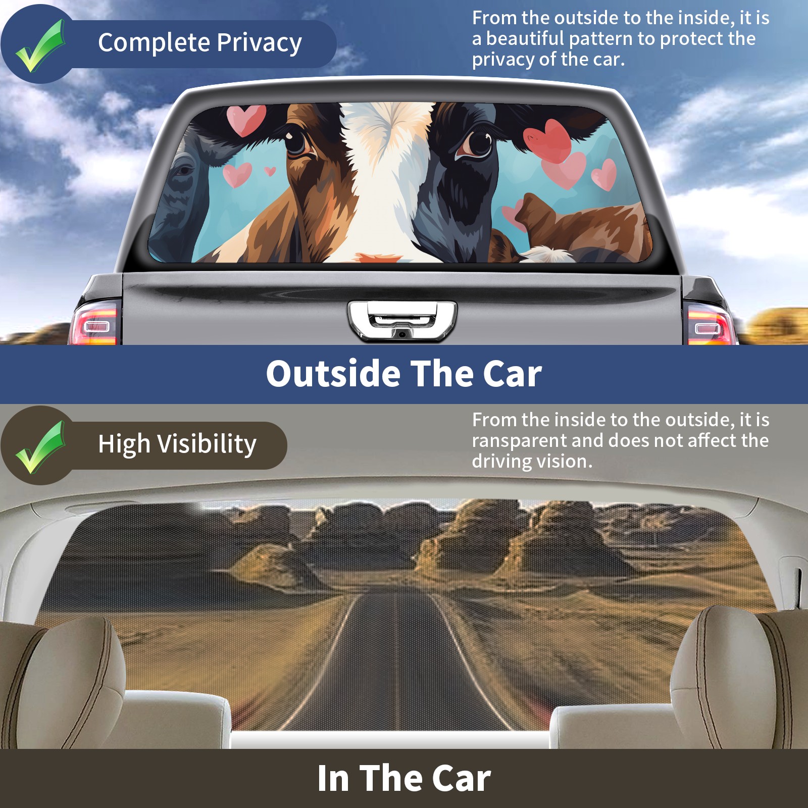 Truck Rear Window Graphics Decals Pickup Trucks Back Window Sticker Full Window Film Decal One Way Visual Waterproof Car Rear Tint Flowers Cow (6)