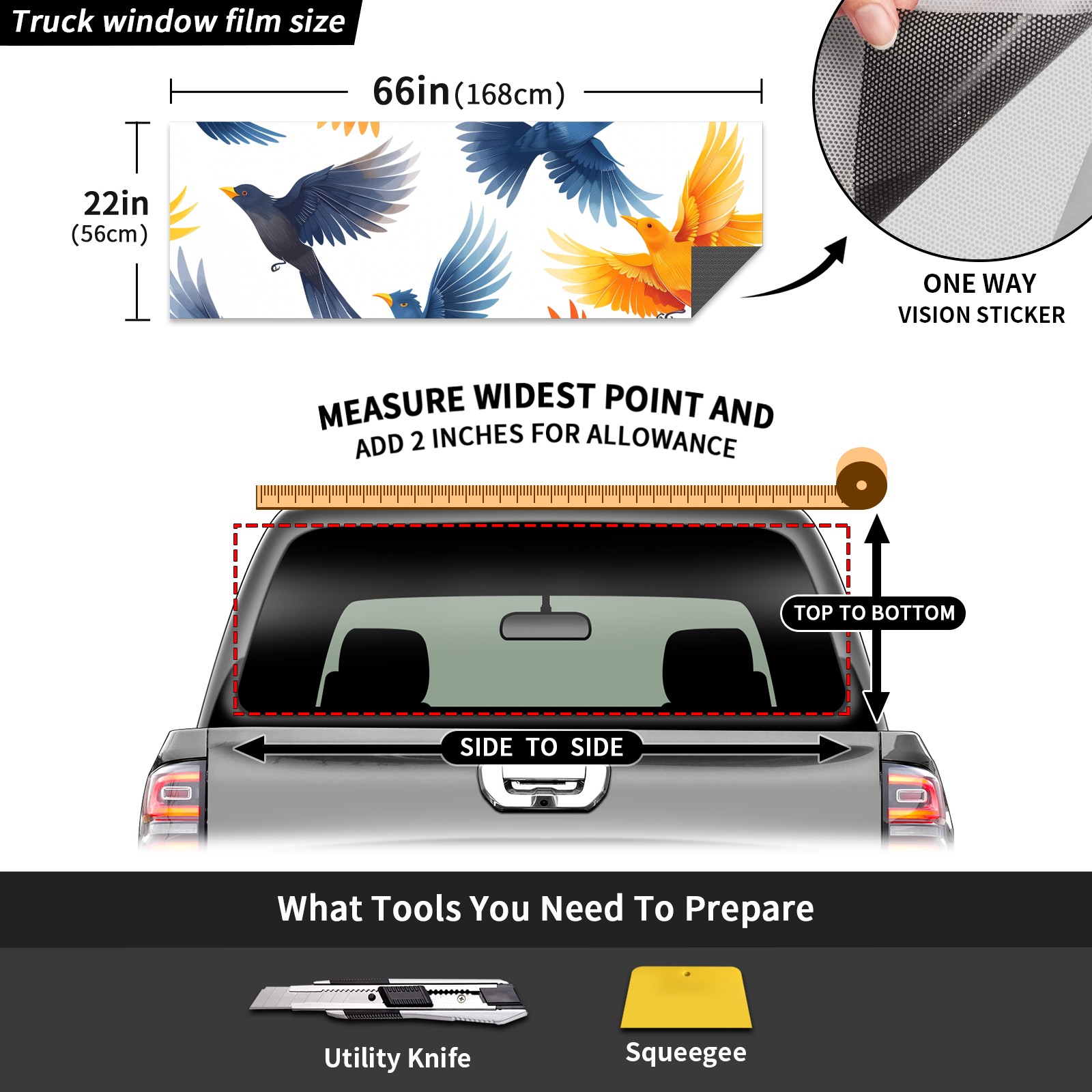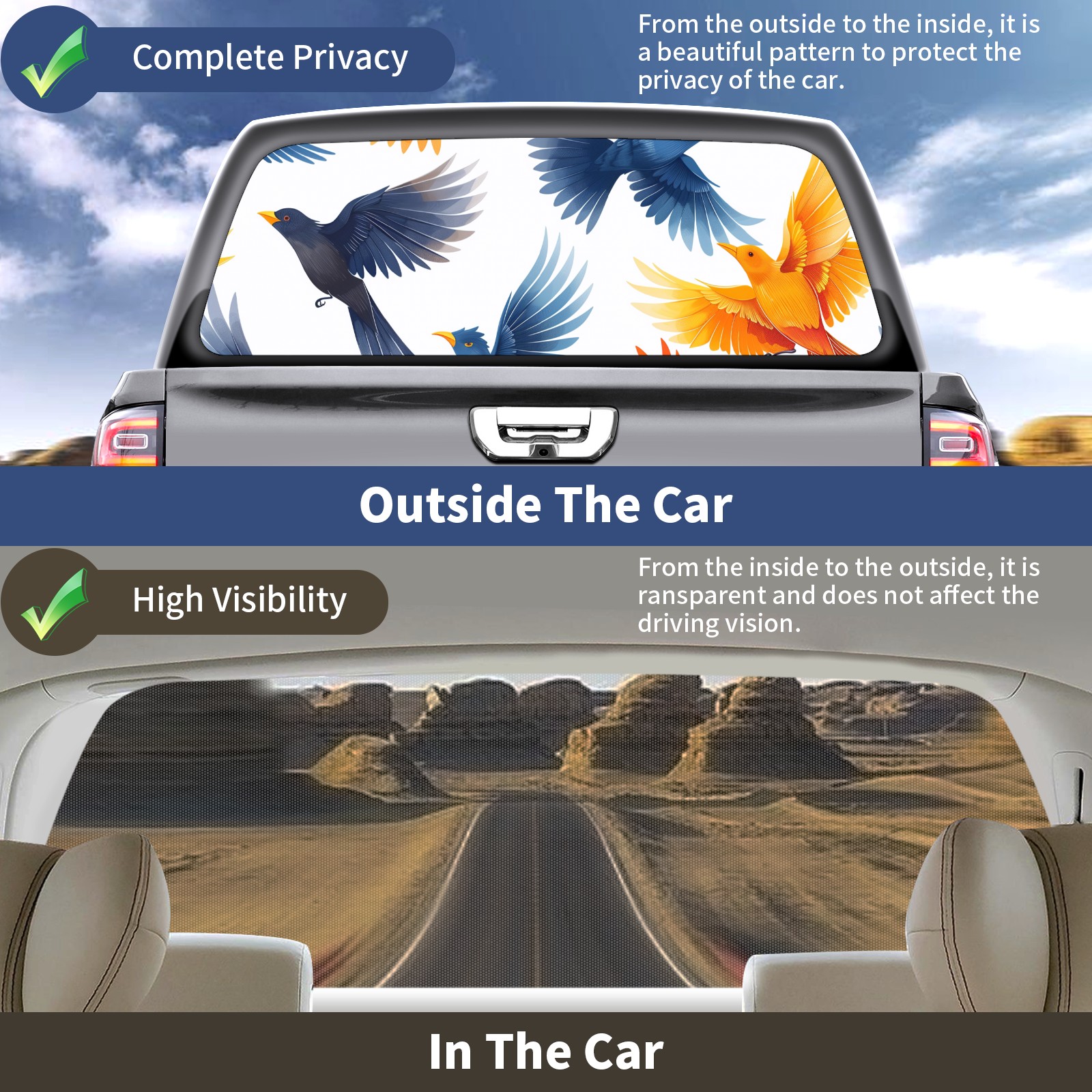 Truck Rear Window Graphics Decals Pickup Trucks Back Window Sticker Full Window Film Decal One Way Visual Waterproof Car Rear Tint Colorful Birds