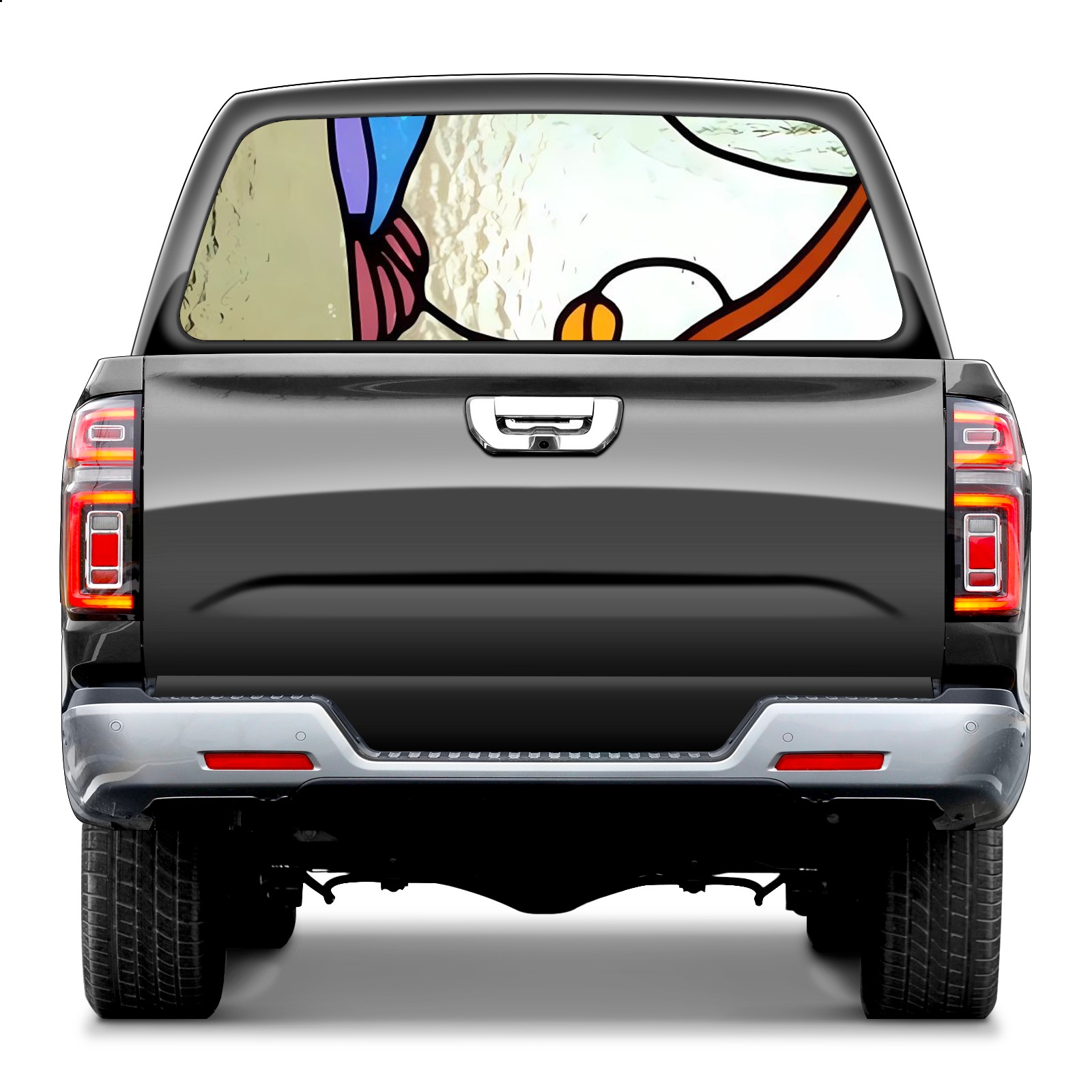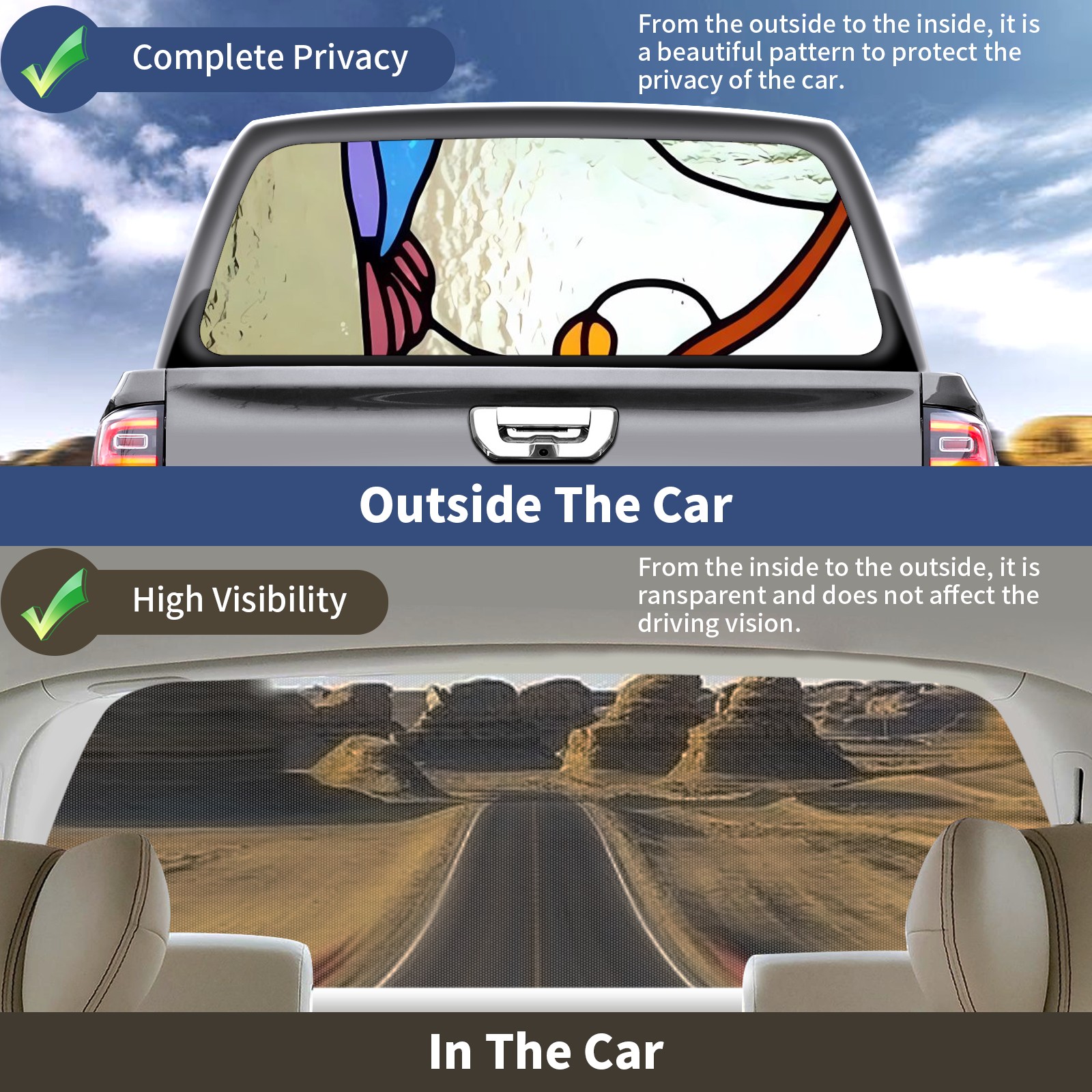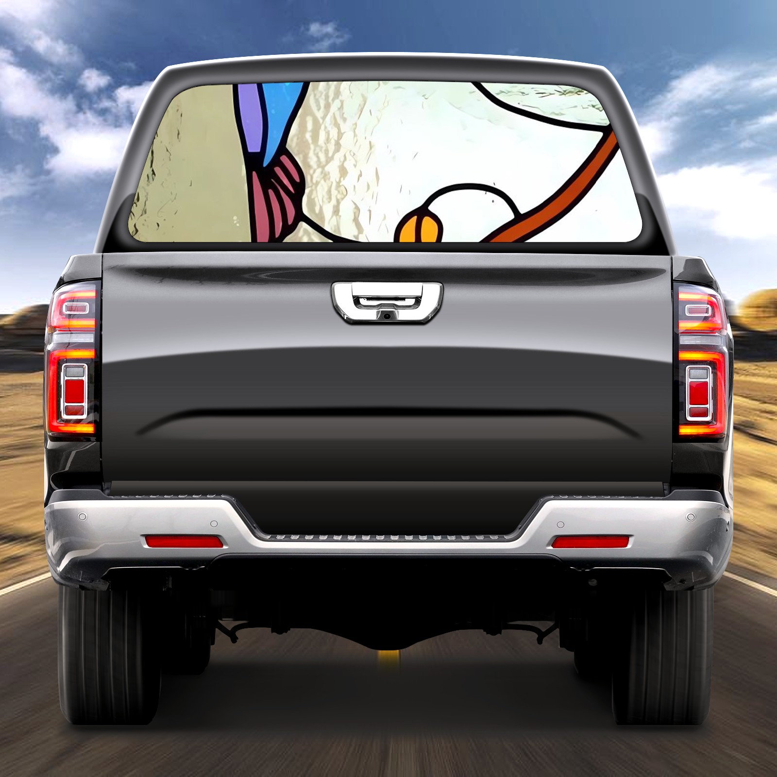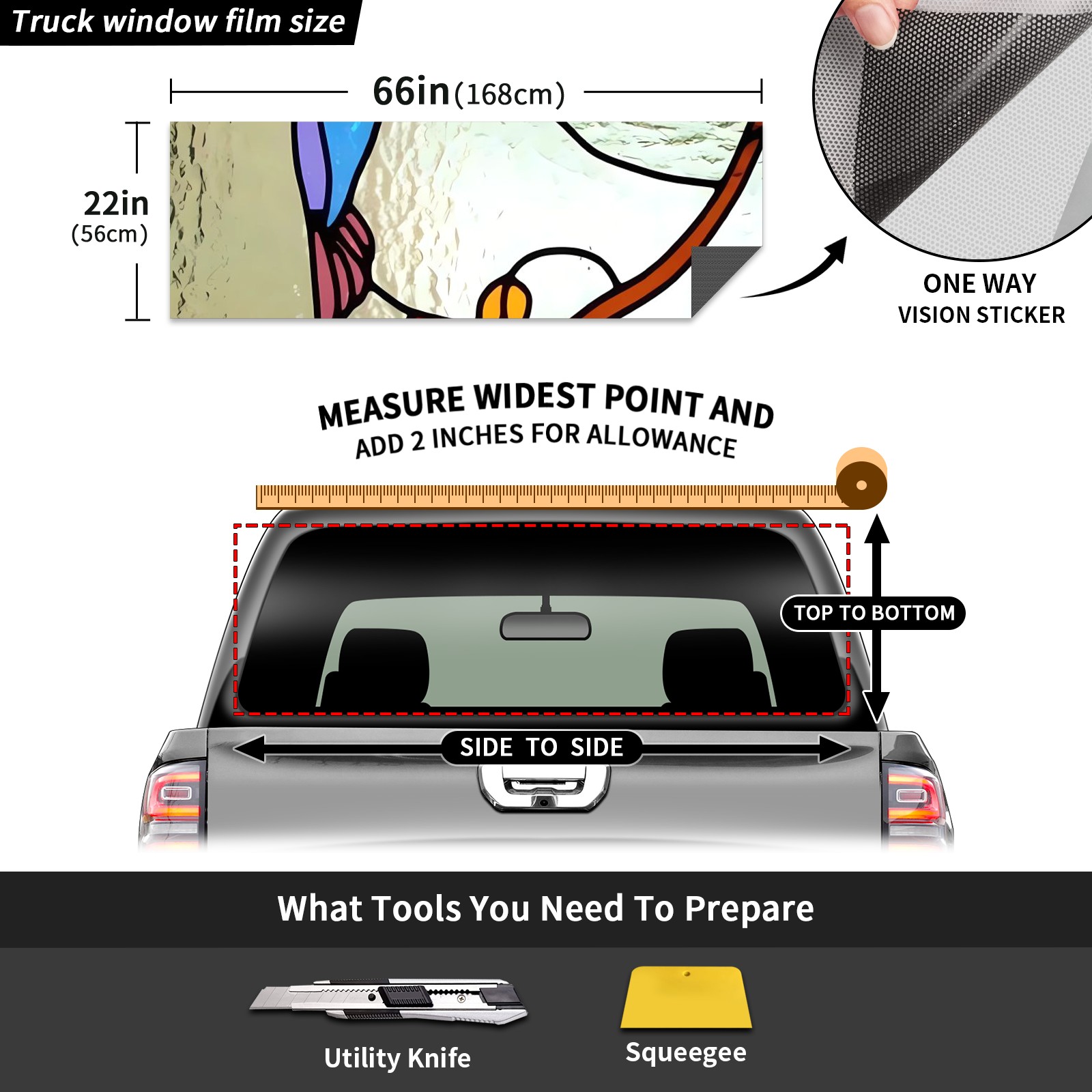 Truck Rear Window Graphics Decals Pickup Trucks Back Window Sticker Full Window Film Decal One Way Visual Waterproof Car Rear Tint Hummingbirds Window Stained Glass (1)