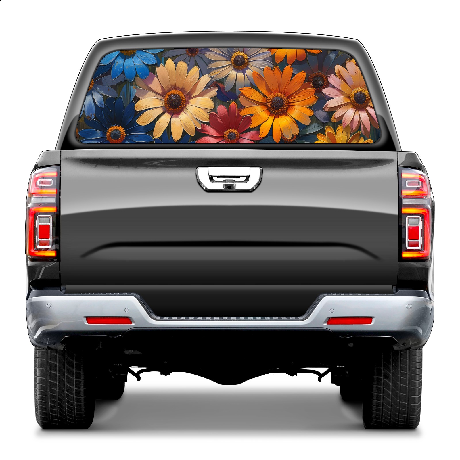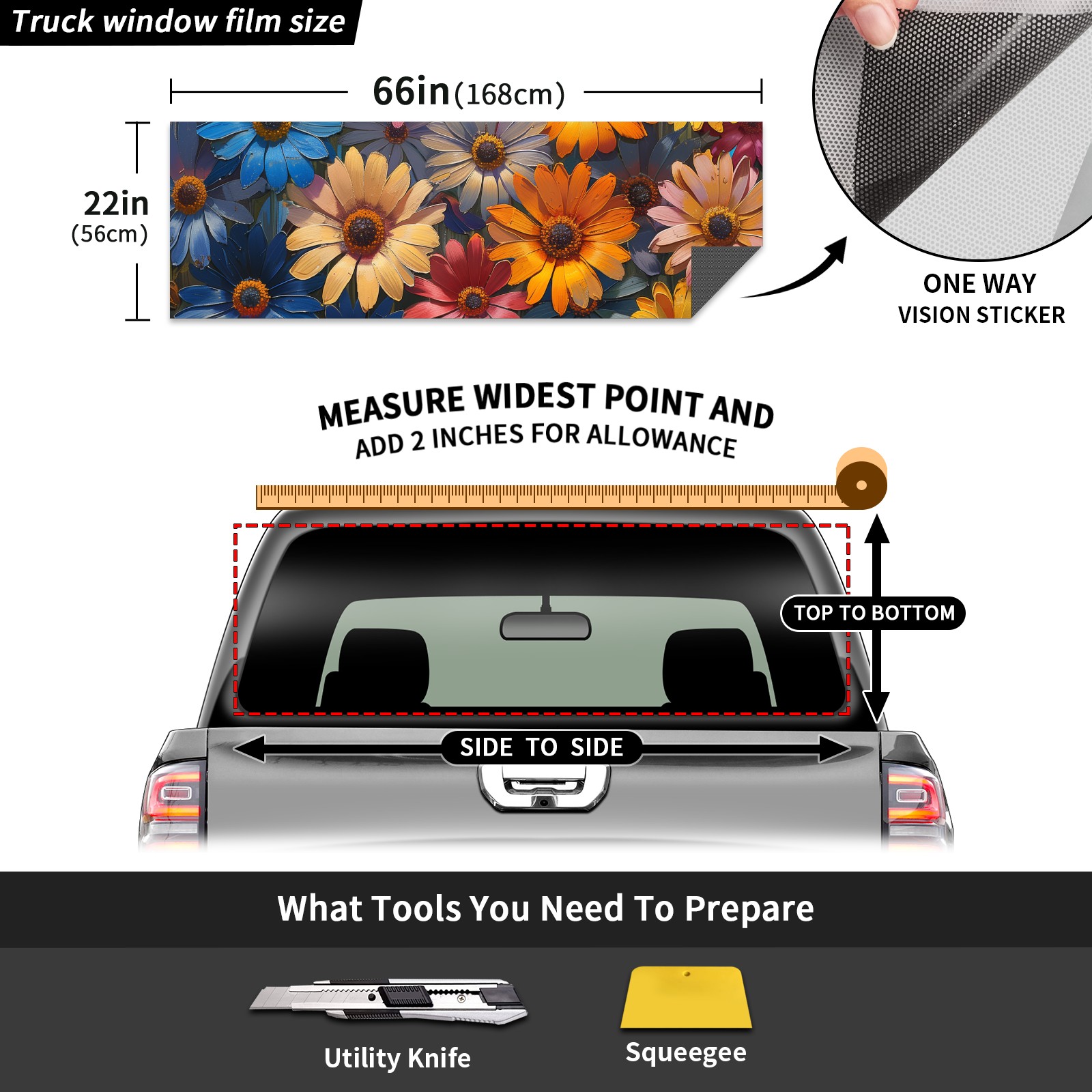 Truck Rear Window Graphics Decals Pickup Trucks Back Window Sticker Full Window Film Decal One Way Visual Waterproof Car Rear Tint Garden Colorful Daisies