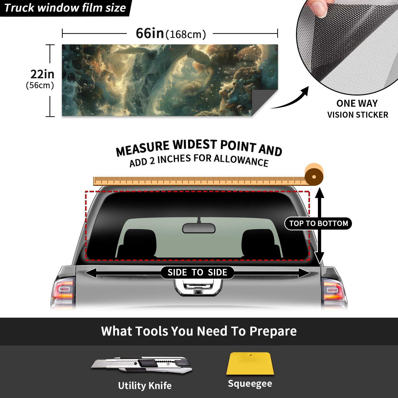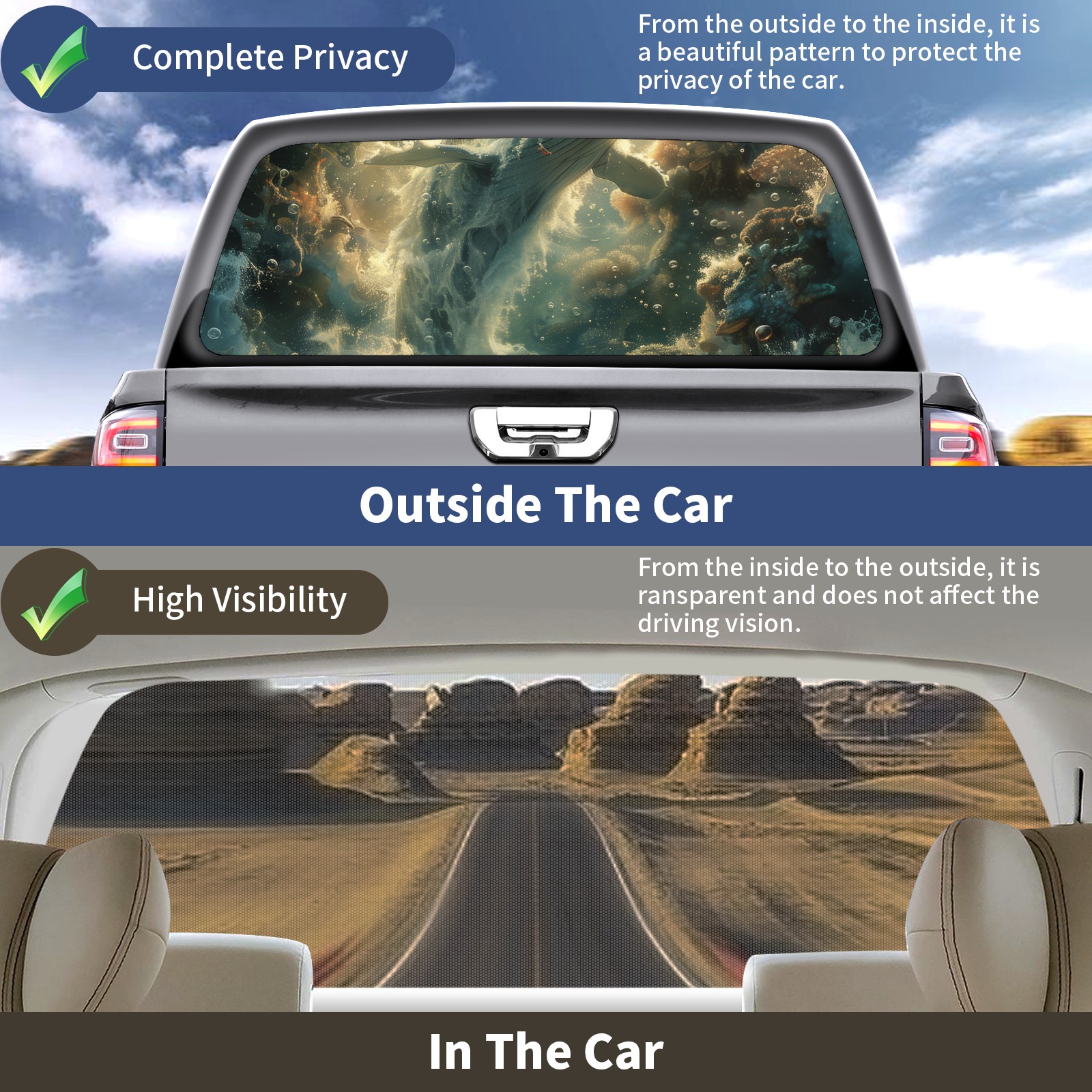Truck Rear Window Graphics Decals Pickup Trucks Back Window Sticker Full Window Film Decal One Way Visual Waterproof Car Rear Tint Ocean World