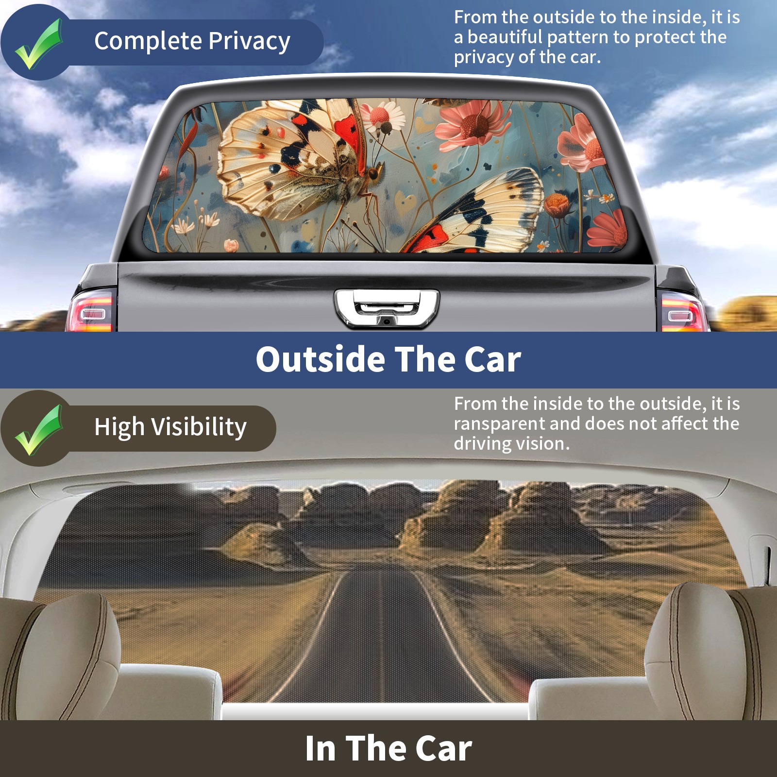 Truck Rear Window Graphics Decals Pickup Trucks Back Window Sticker Full Window Film Decal One Way Visual Waterproof Car Rear Tint Butterfly