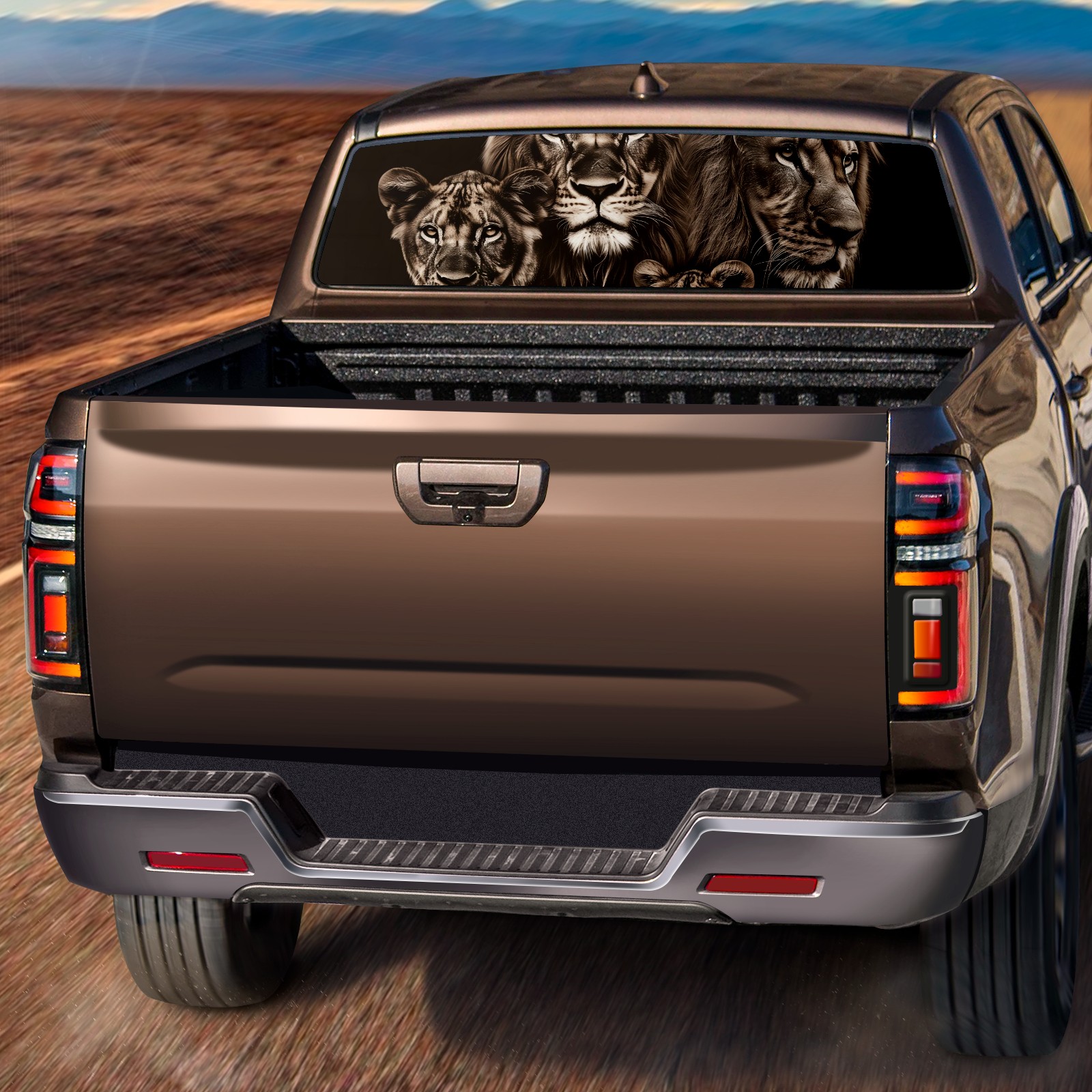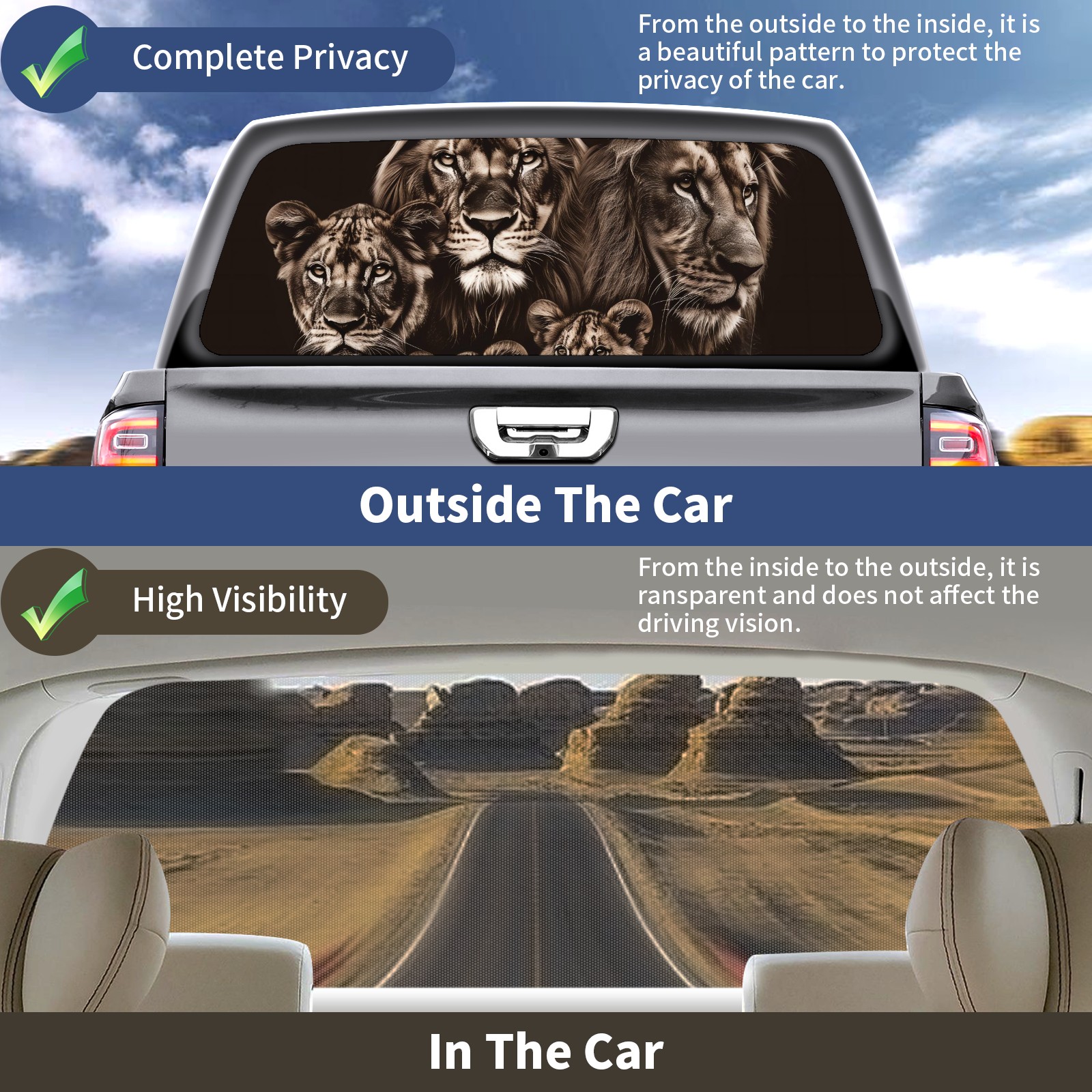 Truck Rear Window Graphics Decals Pickup Trucks Back Window Sticker Full Window Film Decal One Way Visual Waterproof Car Rear Tint Lions (S) (1)