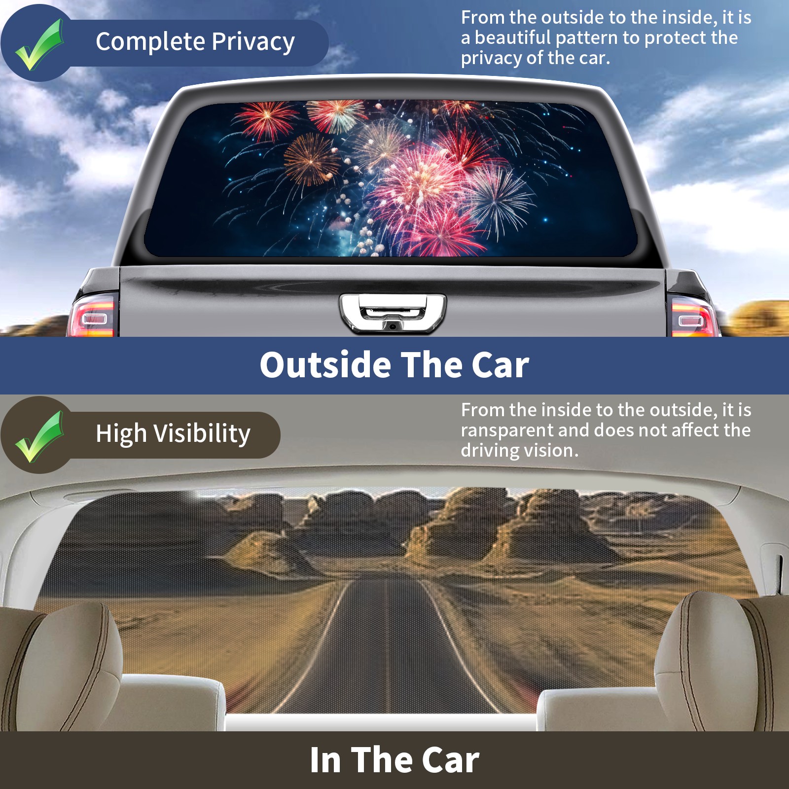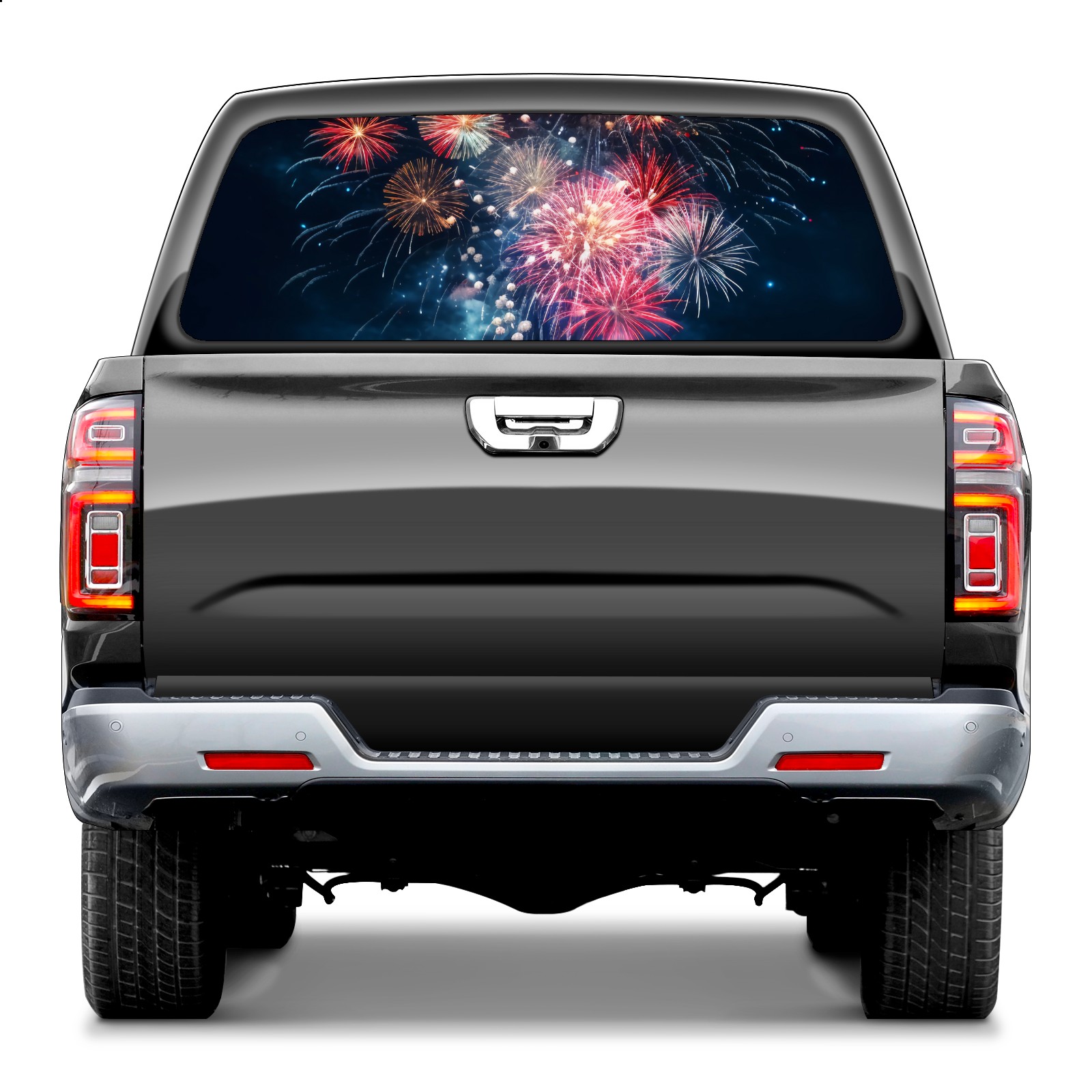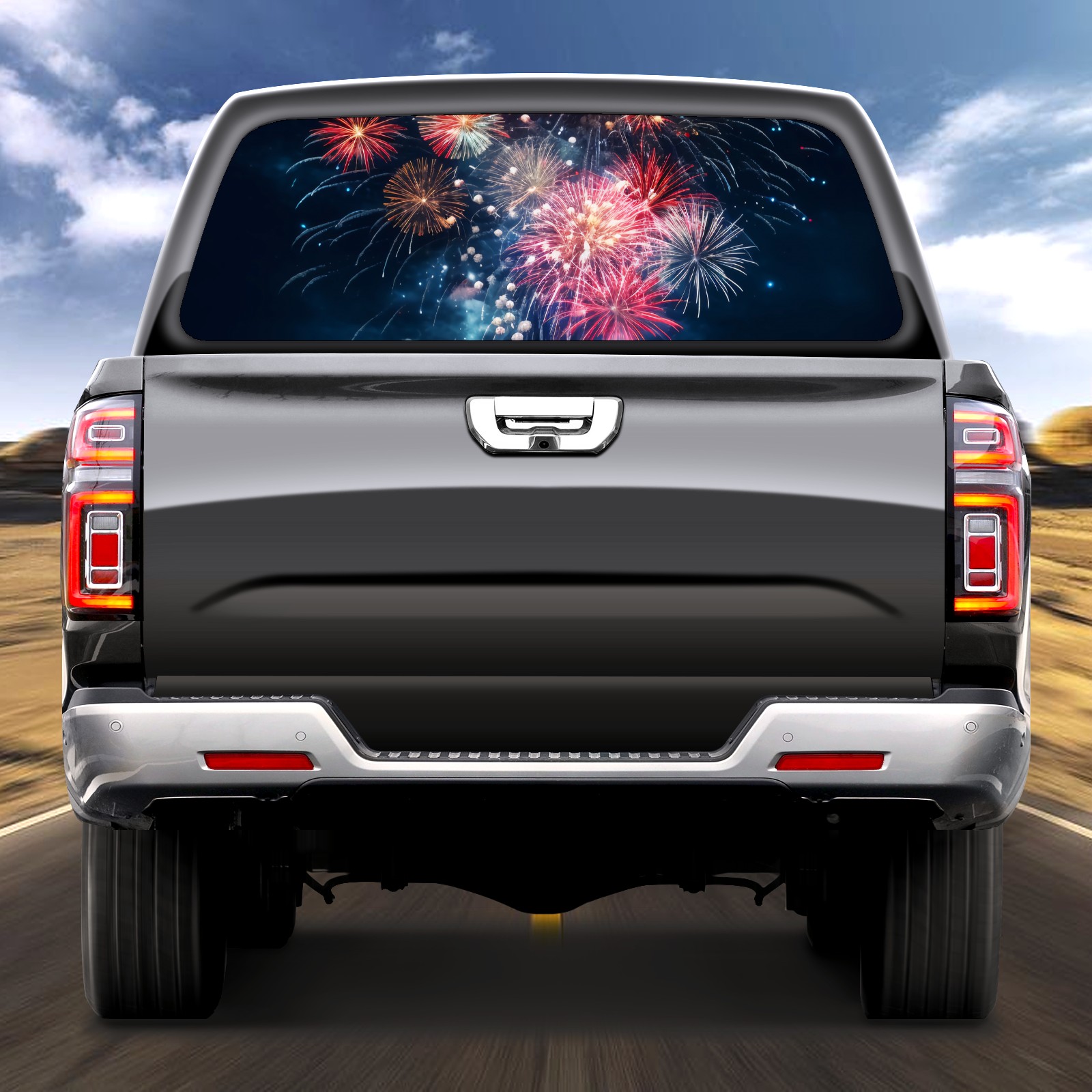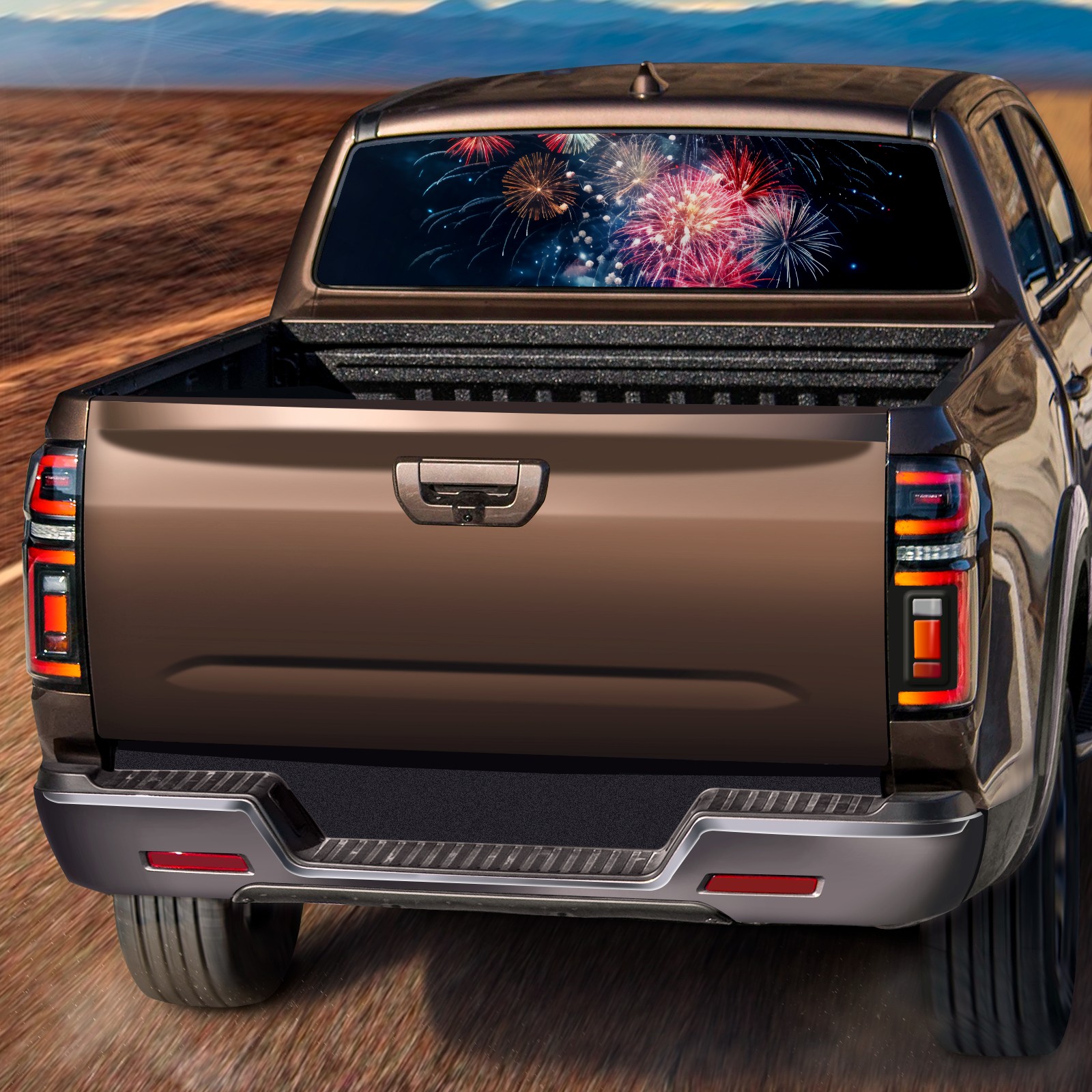 Truck Rear Window Graphics Decals Pickup Trucks Back Window Sticker Full Window Film Decal One Way Visual Waterproof Car Rear Tint Fireworks Sky (1)