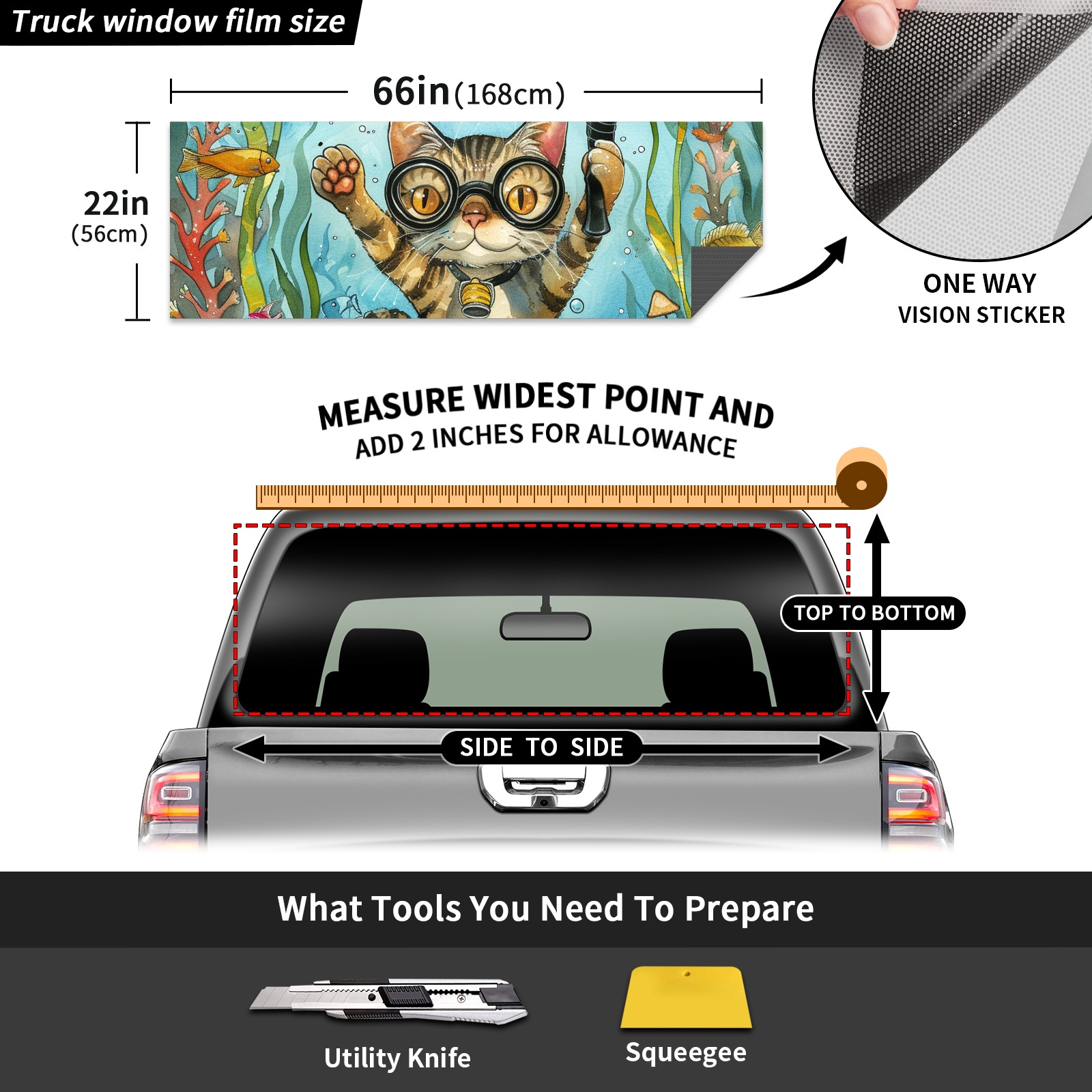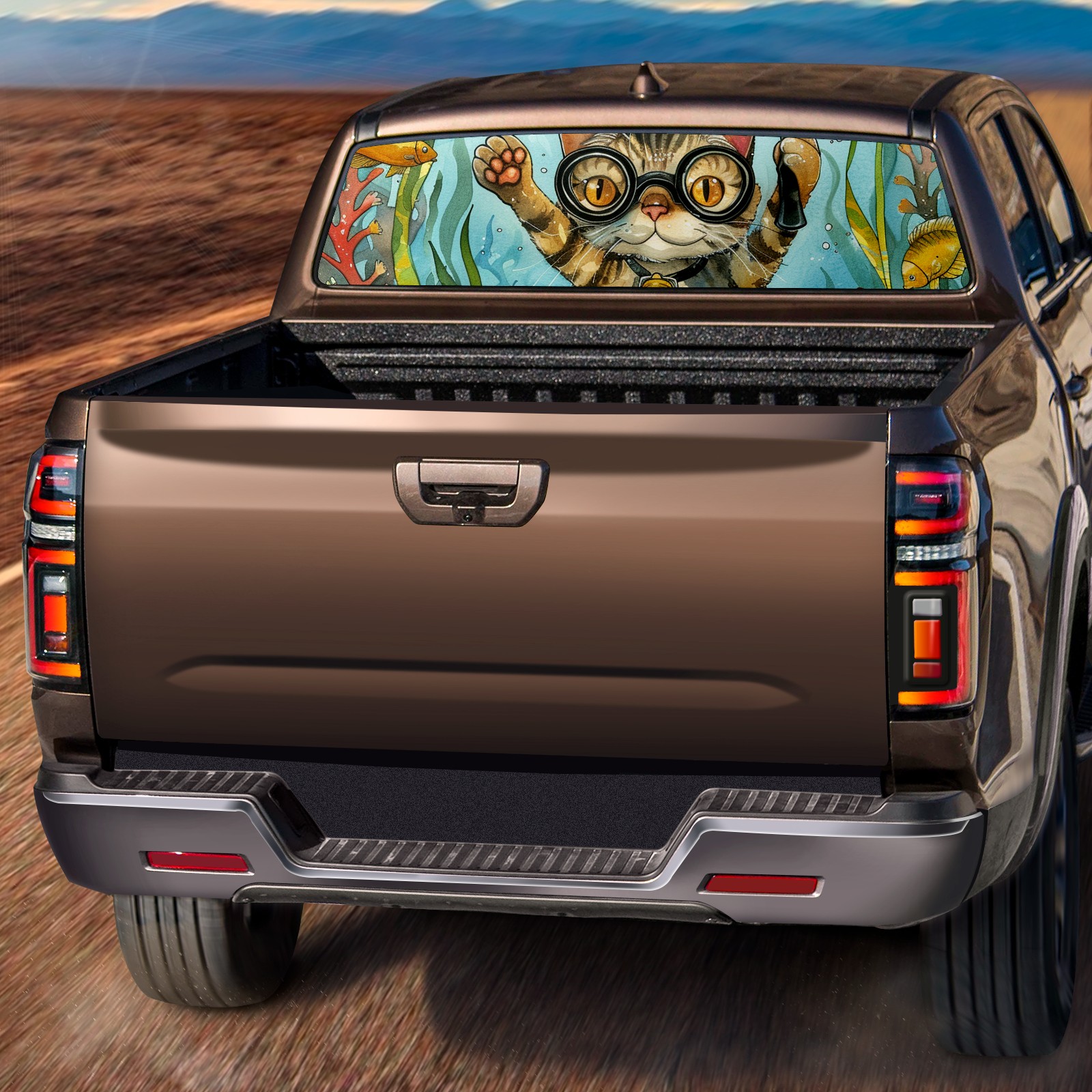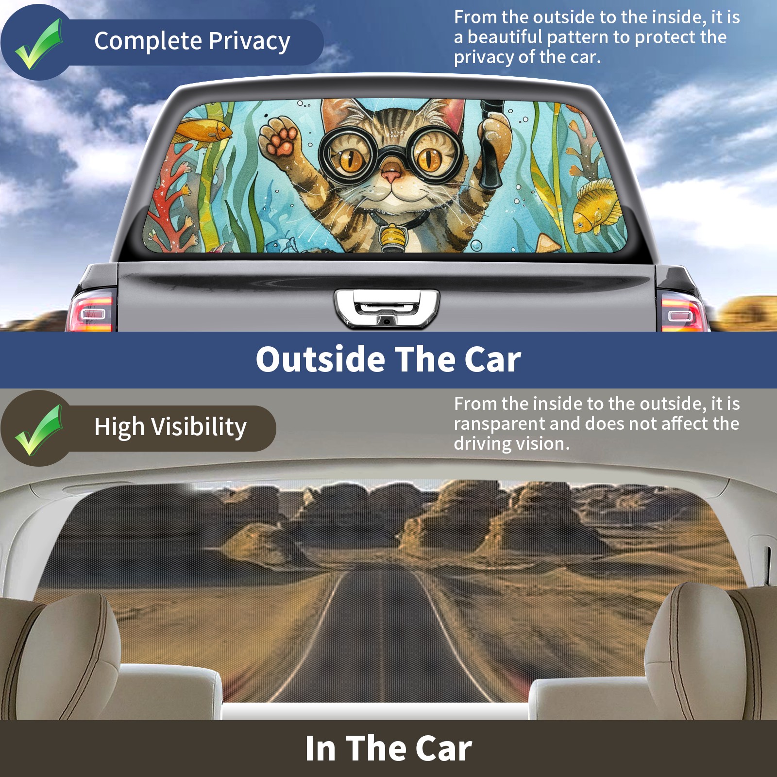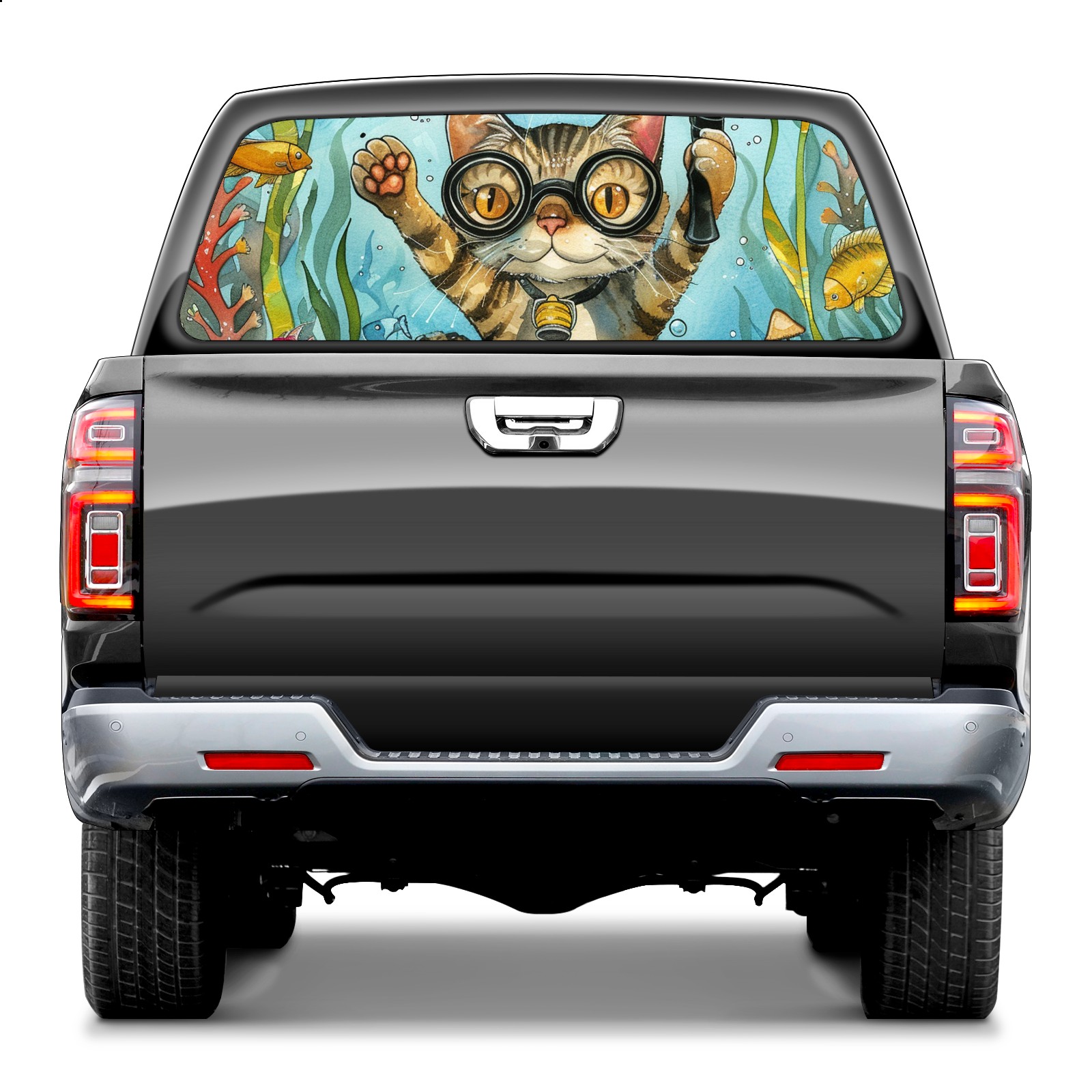 Truck Rear Window Graphics Decals Pickup Trucks Back Window Sticker Full Window Film Decal One Way Visual Waterproof Car Rear Tint Diving Cat