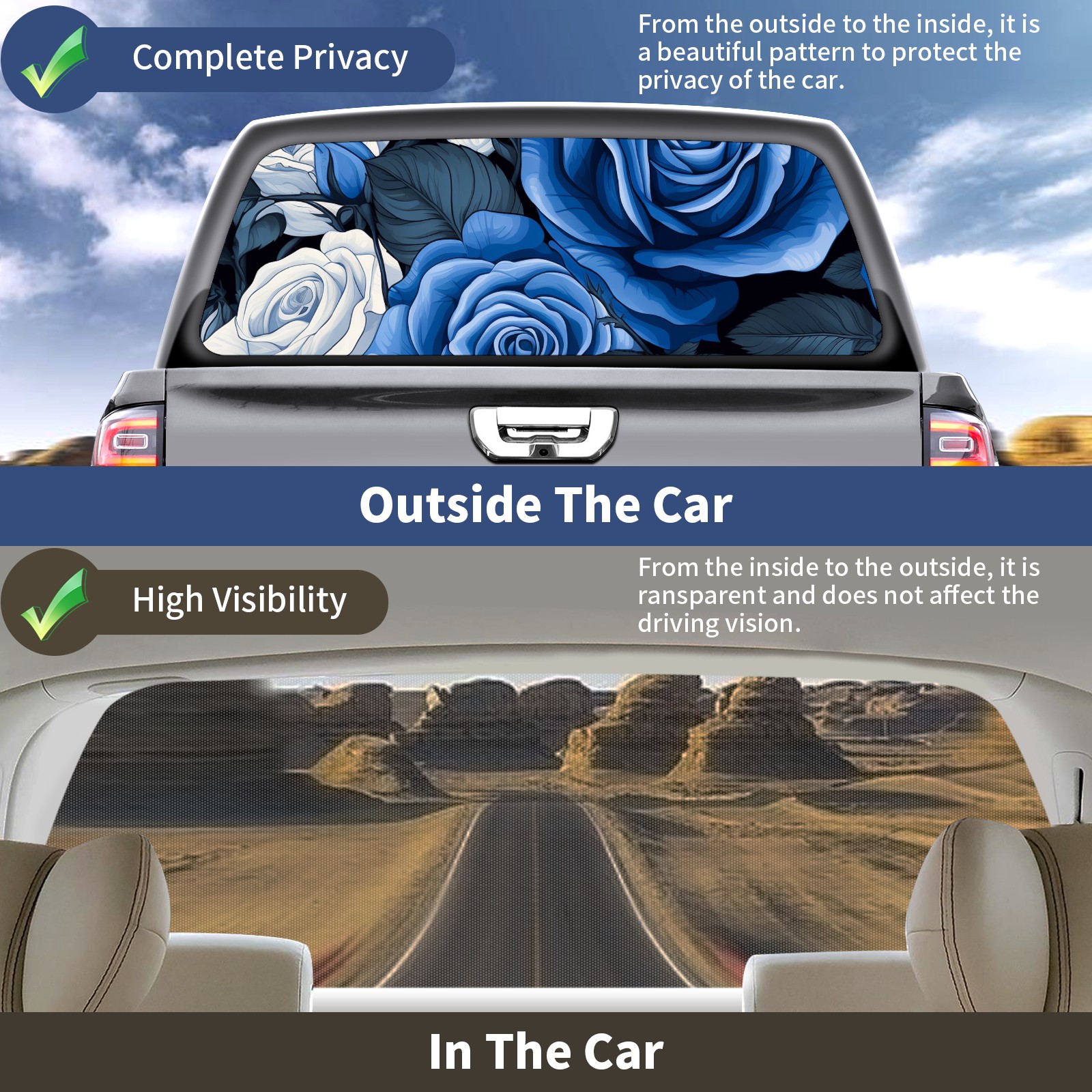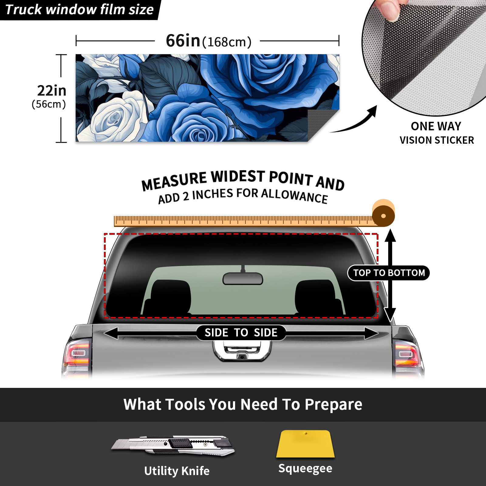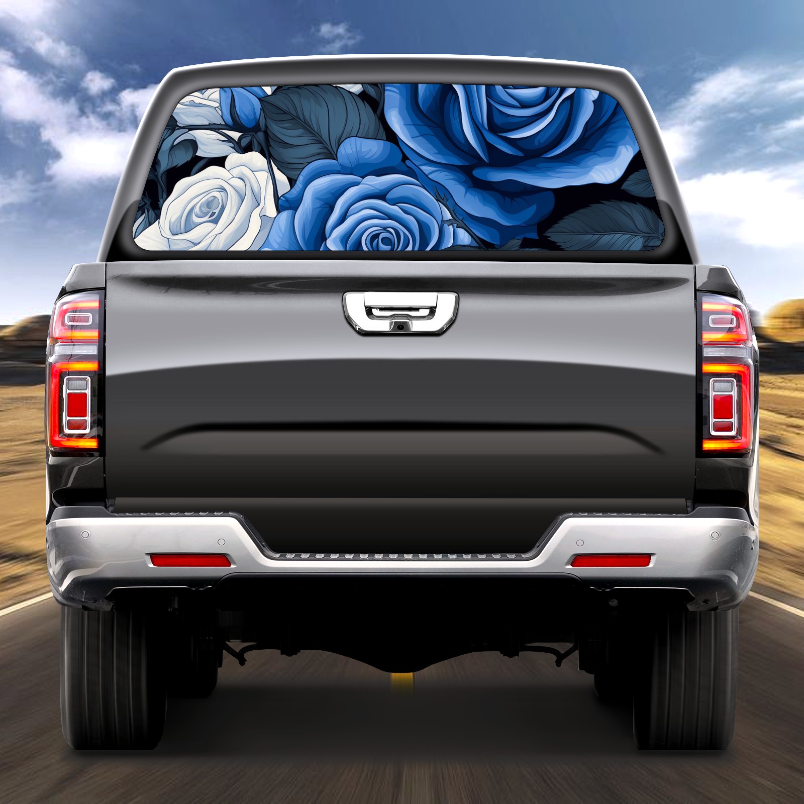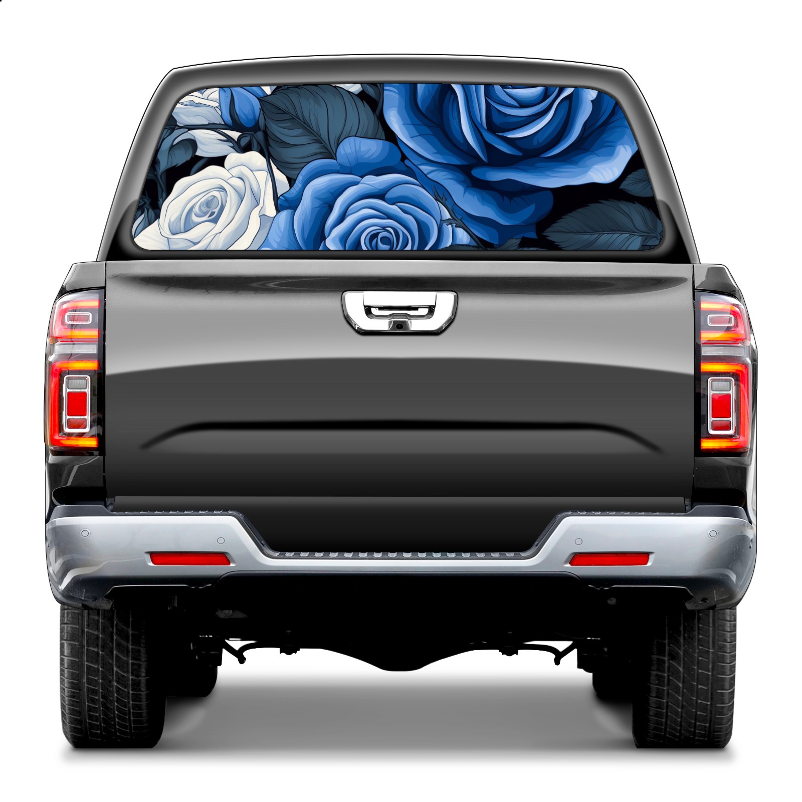Truck Rear Window Graphics Decals Pickup Trucks Back Window Sticker Full Window Film Decal One Way Visual Waterproof Car Rear Tint Blue Roses Flower (4)