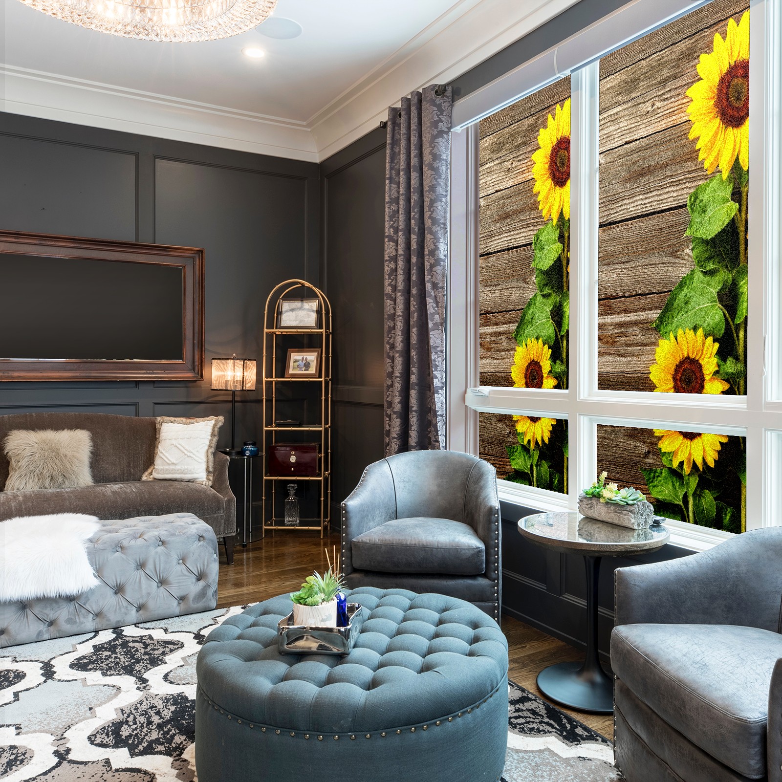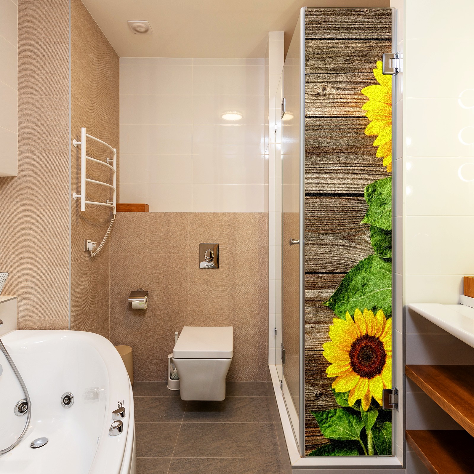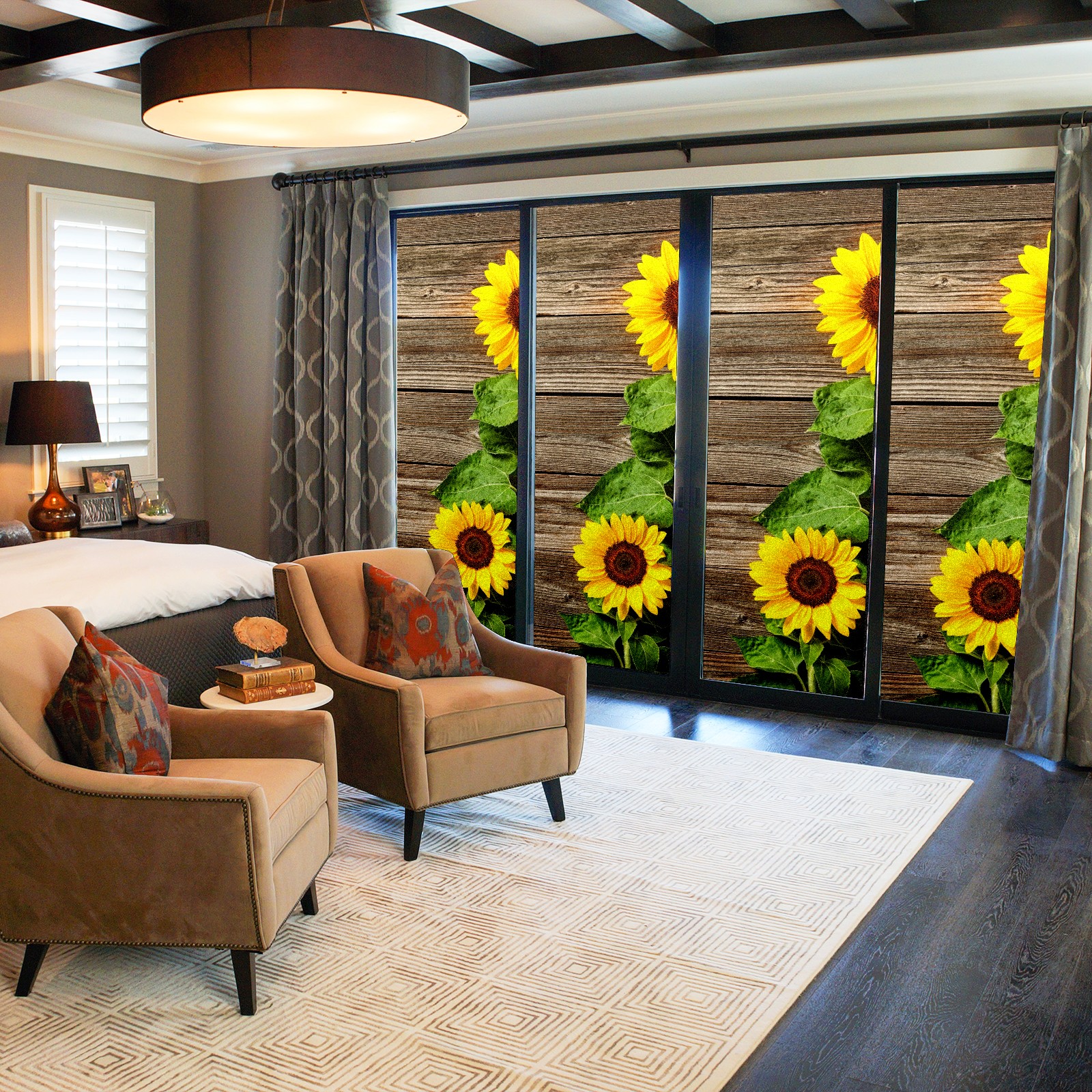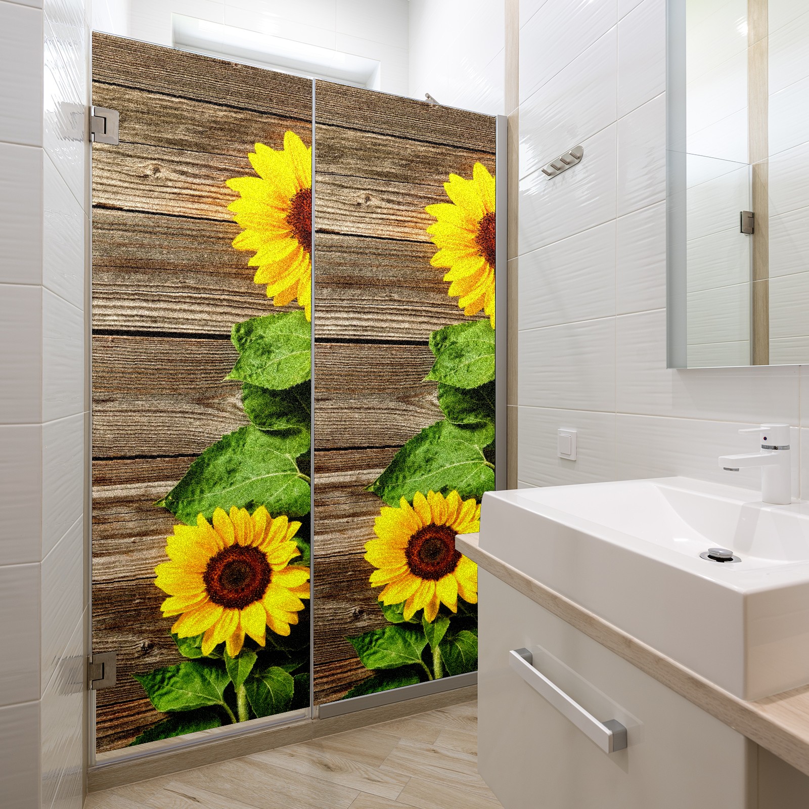 MSINMKOK Window Privacy Film Realistic Sunflowers Floral Wood Texture Decorative Frosted Glass Window Film for Glass Door Bathroom Window 17.7'' x 23.6'' Non-Adhesive Window Decals Stickers