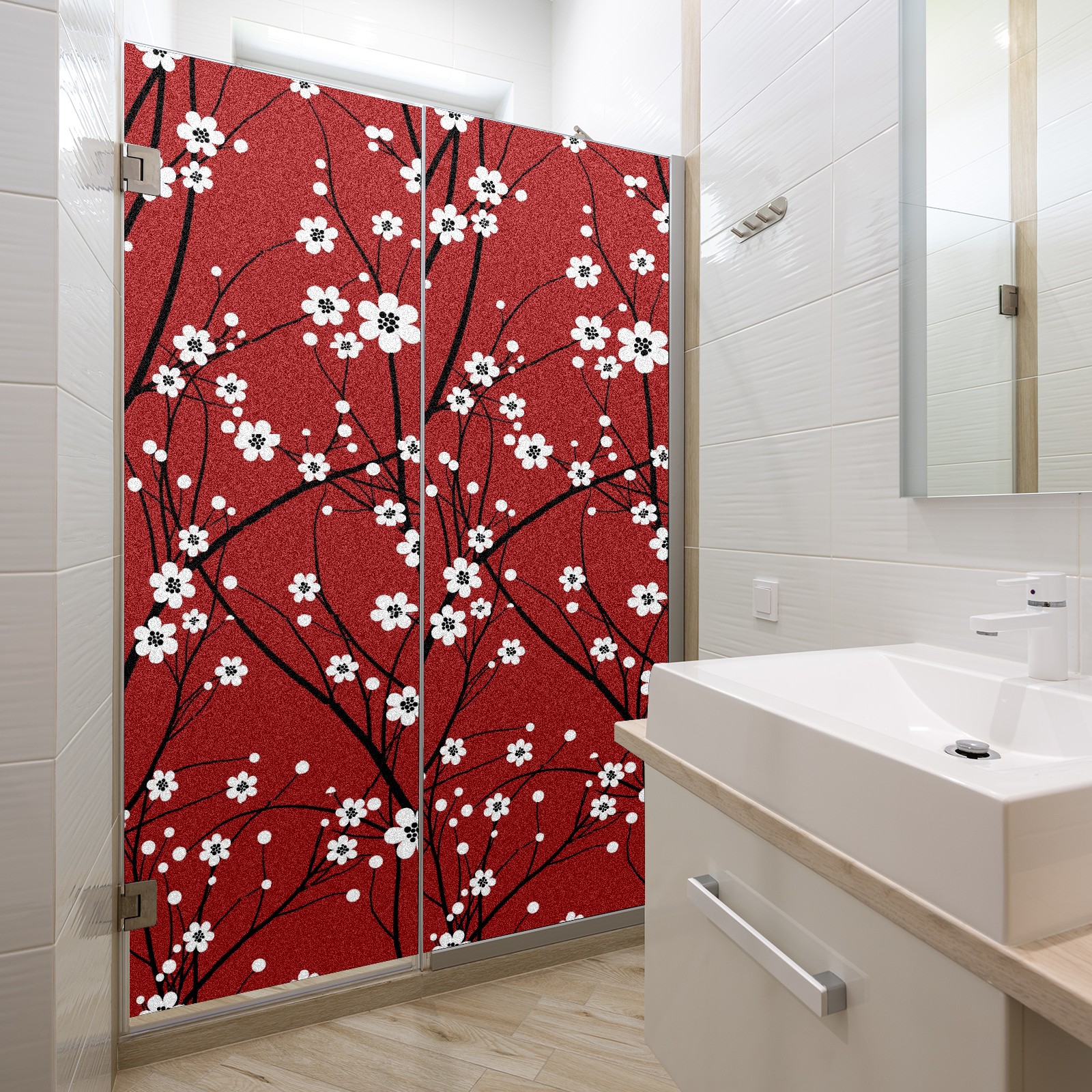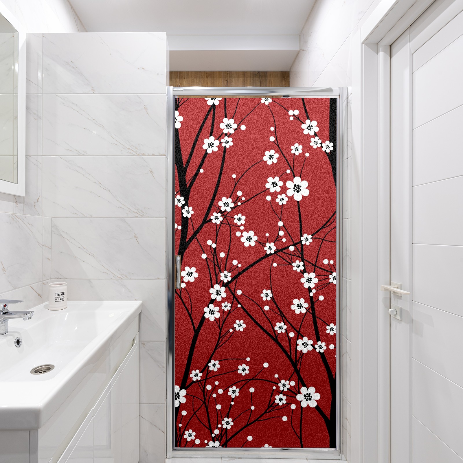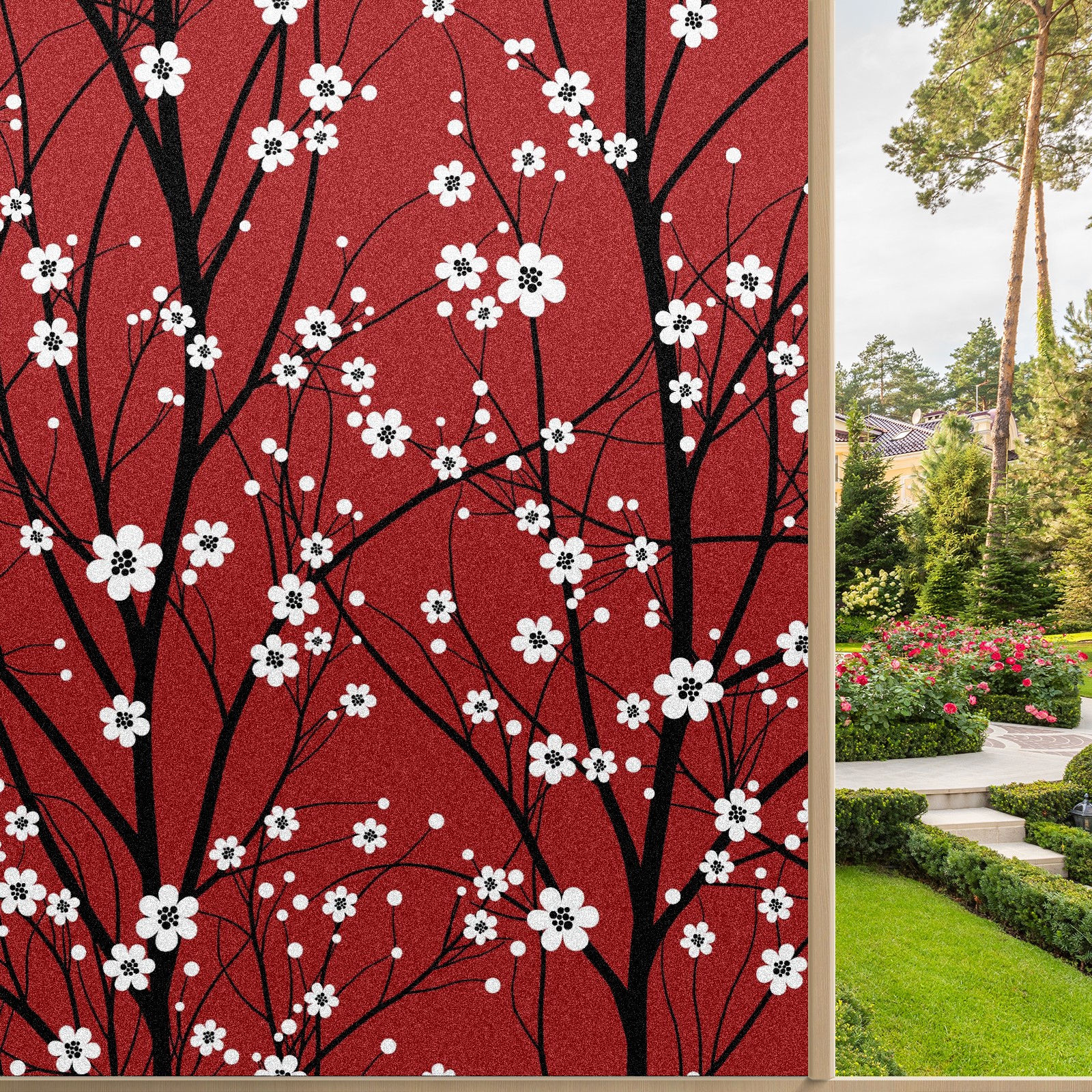 MSINMKOK Window Privacy Film Japanese Cherry Blossom Floral Decorative Frosted Glass Window Film for Glass Door Bathroom Window 17.7'' x 23.6'' Non-Adhesive Window Decals Stickers