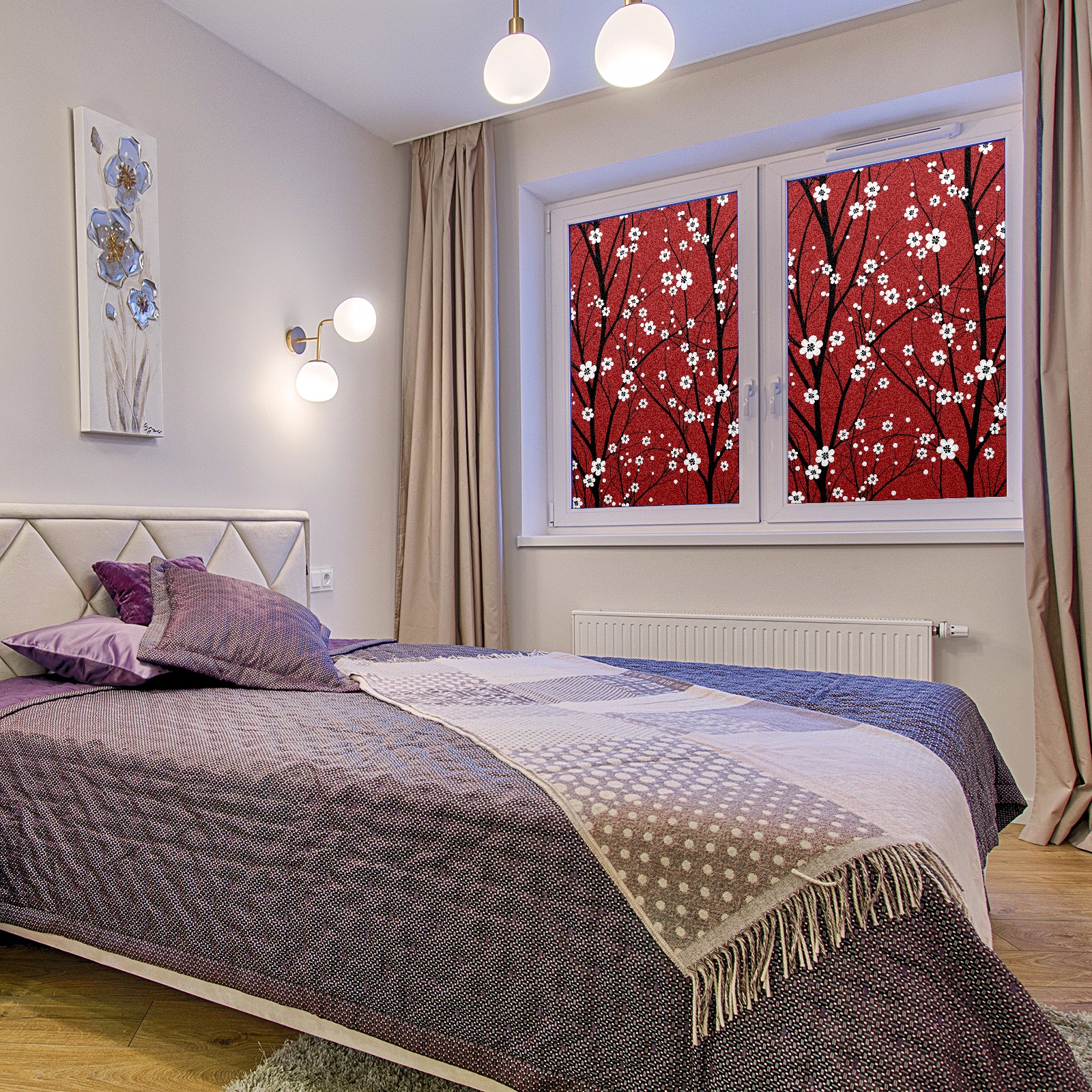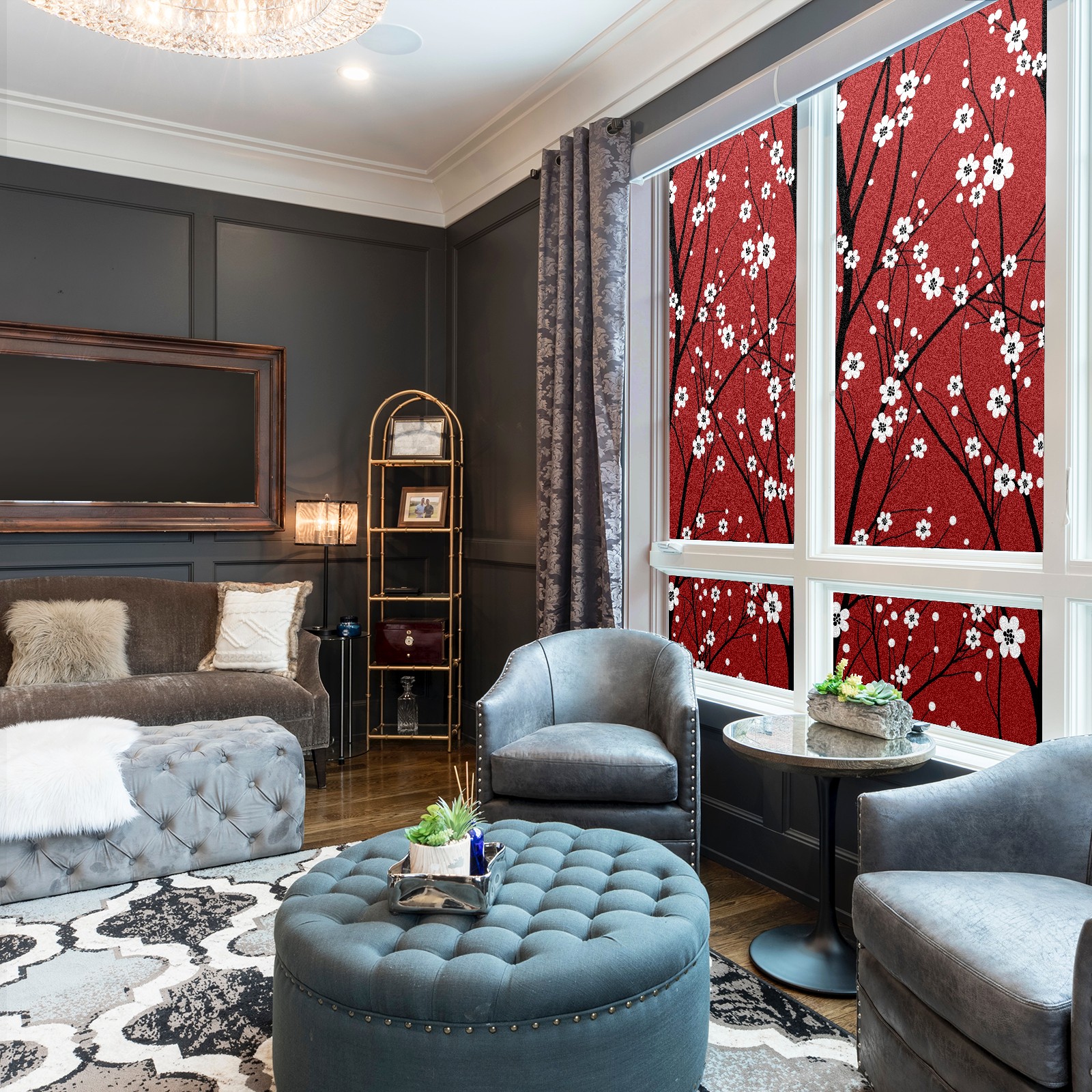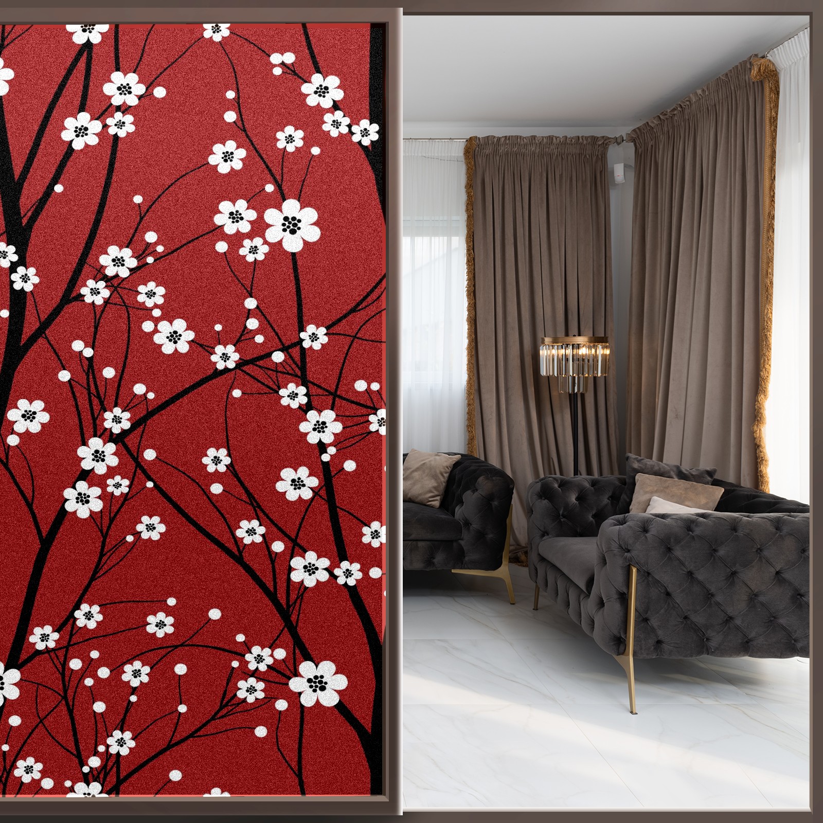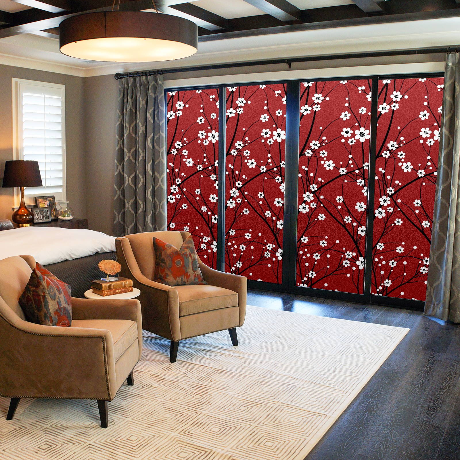 MSINMKOK Window Privacy Film Japanese Cherry Blossom Floral Decorative Frosted Glass Window Film for Glass Door Bathroom Window 17.7'' x 23.6'' Non-Adhesive Window Decals Stickers