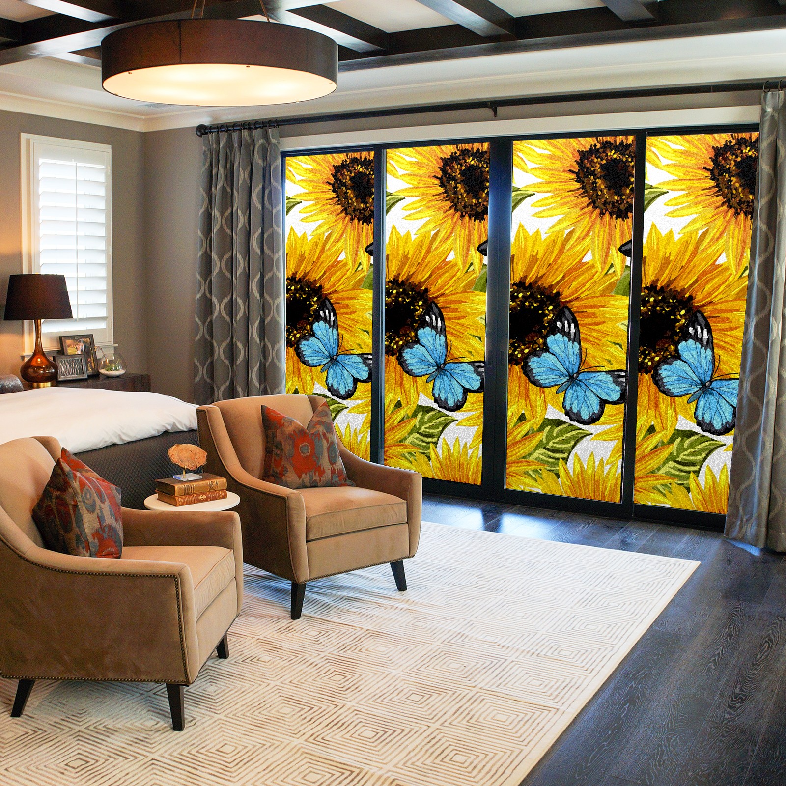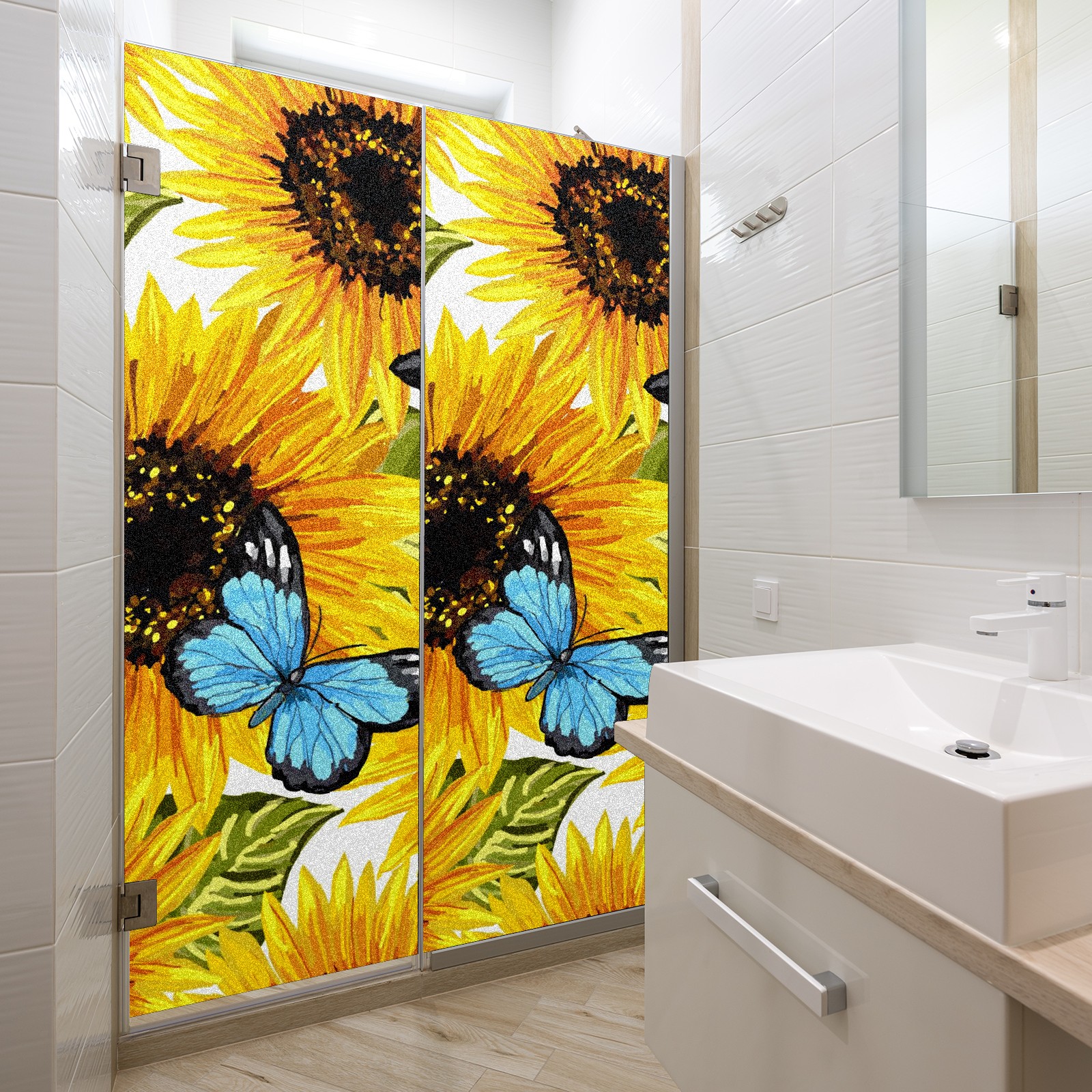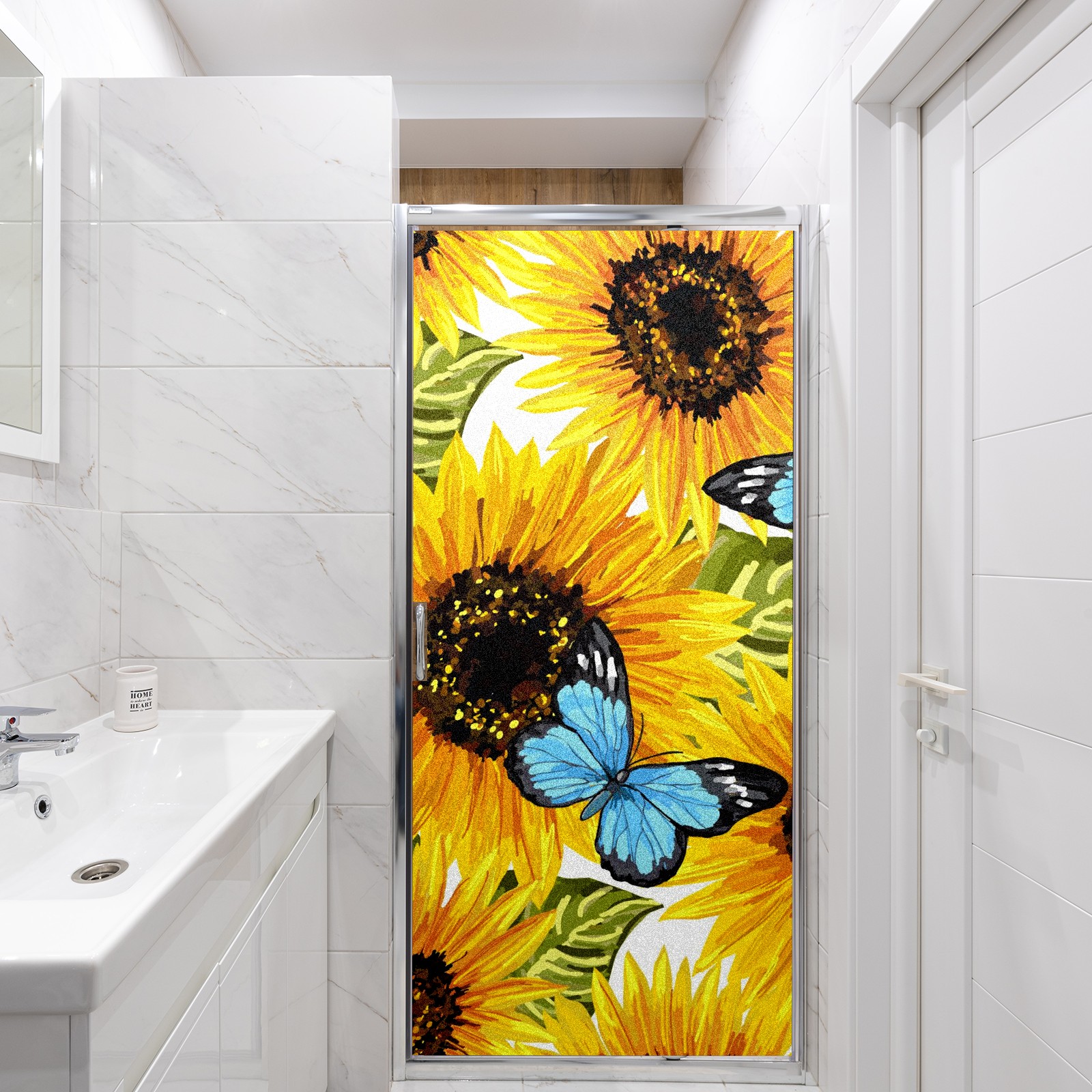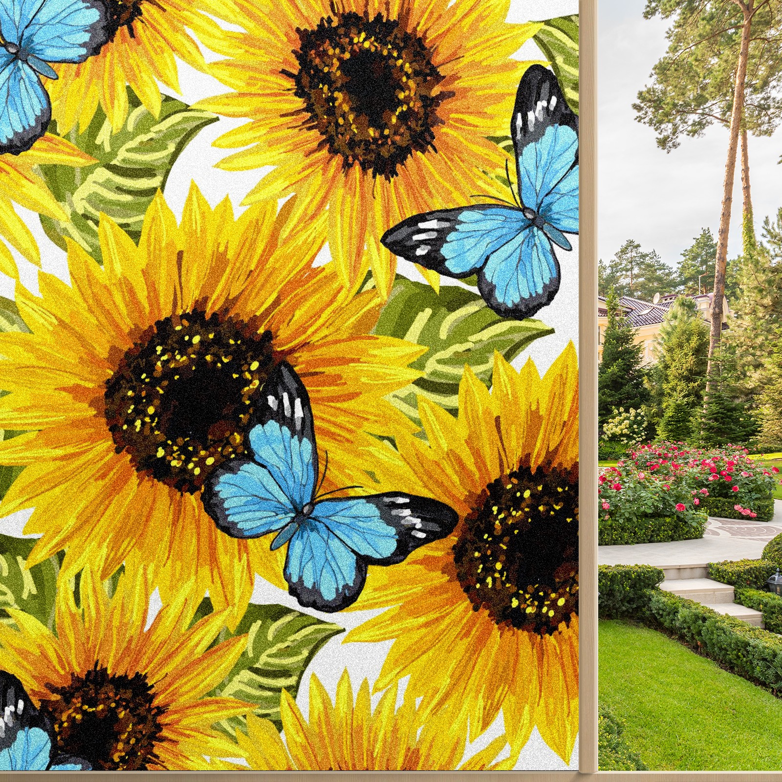 MSINMKOK Window Privacy Film Sunflower Butterfly Oil Painting Decorative Frosted Glass Window Film for Glass Door Bathroom Window 17.7'' x 23.6'' Non-Adhesive Window Decals Stickers